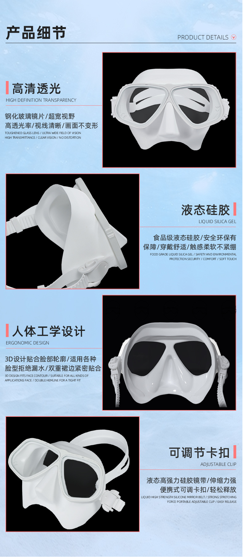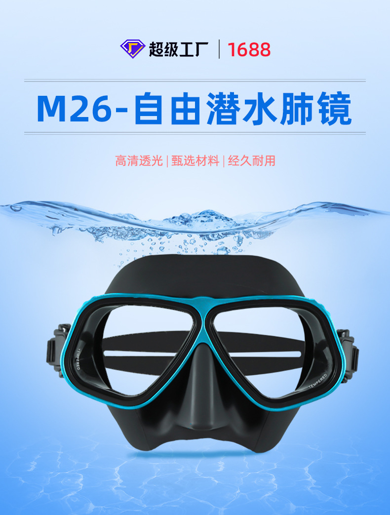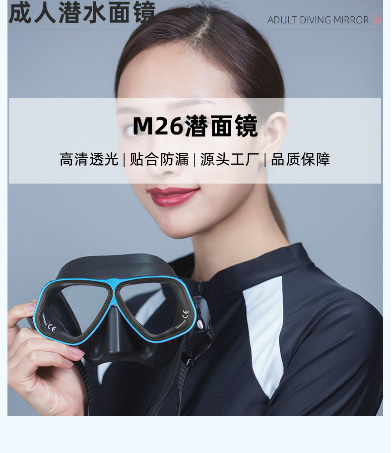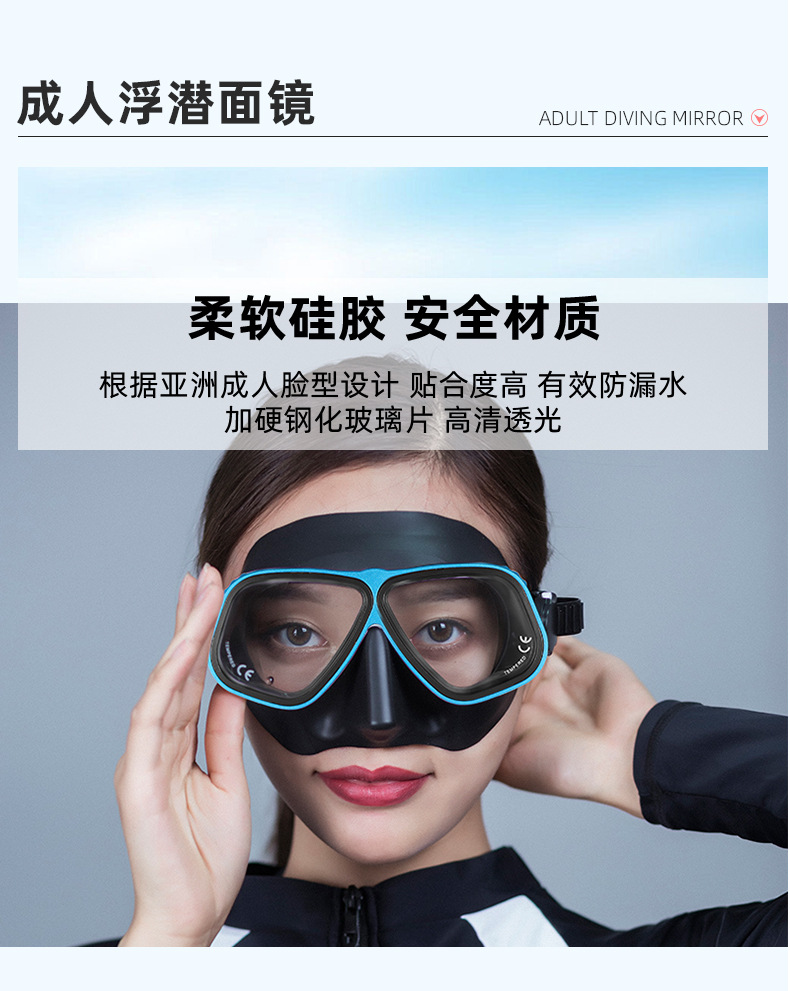 国洋自由潜水镜铝合金镜框 潜水面镜高清防雾低容积浮潜面镜近视
