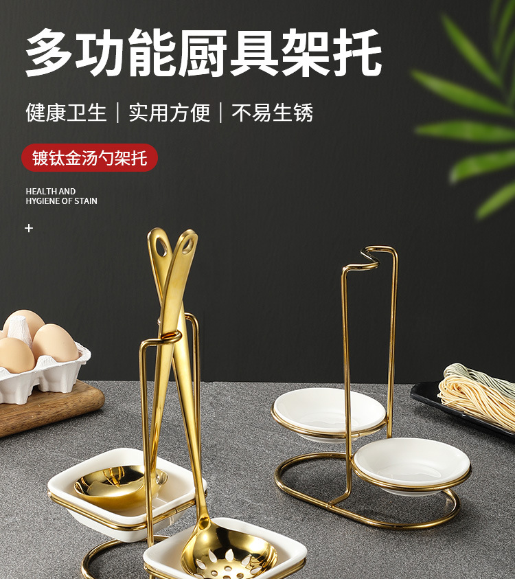 不锈钢镀钛金色公筷公勺架火锅汤勺漏勺架餐具置物架汤壳架汤勺架