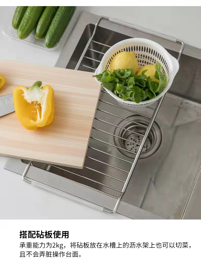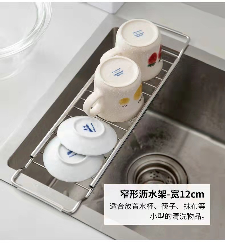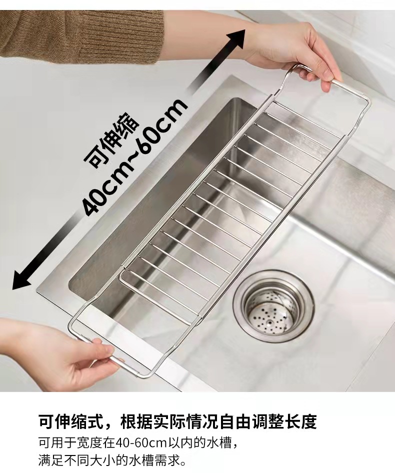 304不锈钢多功能水槽伸缩沥水架家用碗碟果蔬收纳置物架厨房用品
