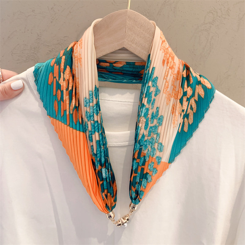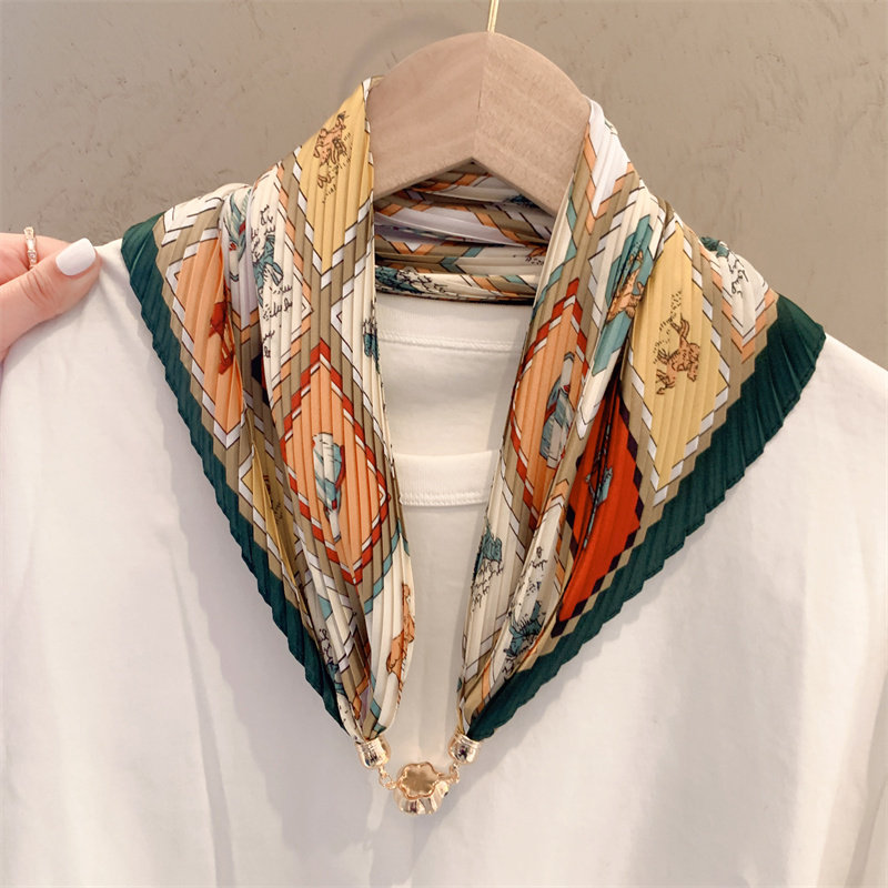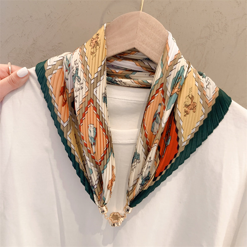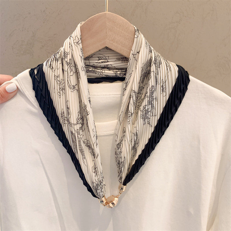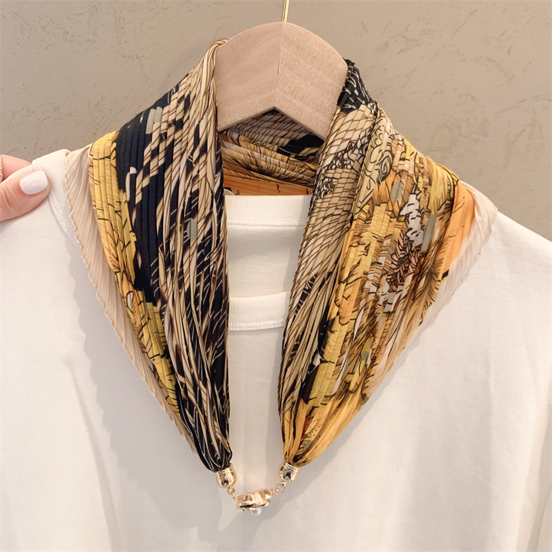 韩版新款磁扣珍珠小丝巾懒人女护颈装饰百搭项链领巾搭配T恤衬衫