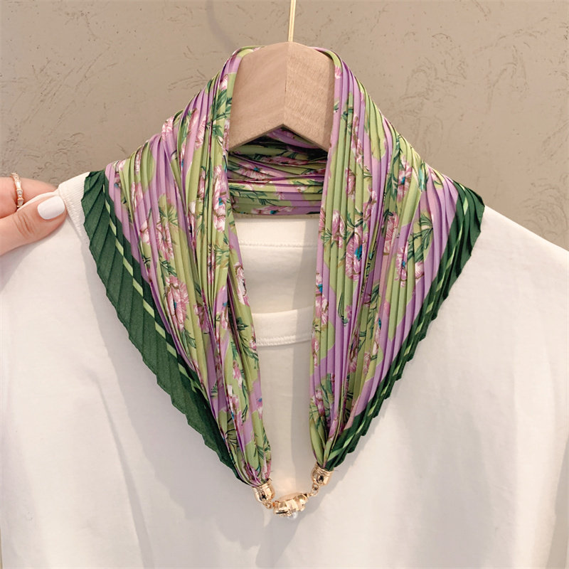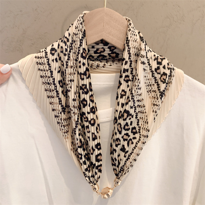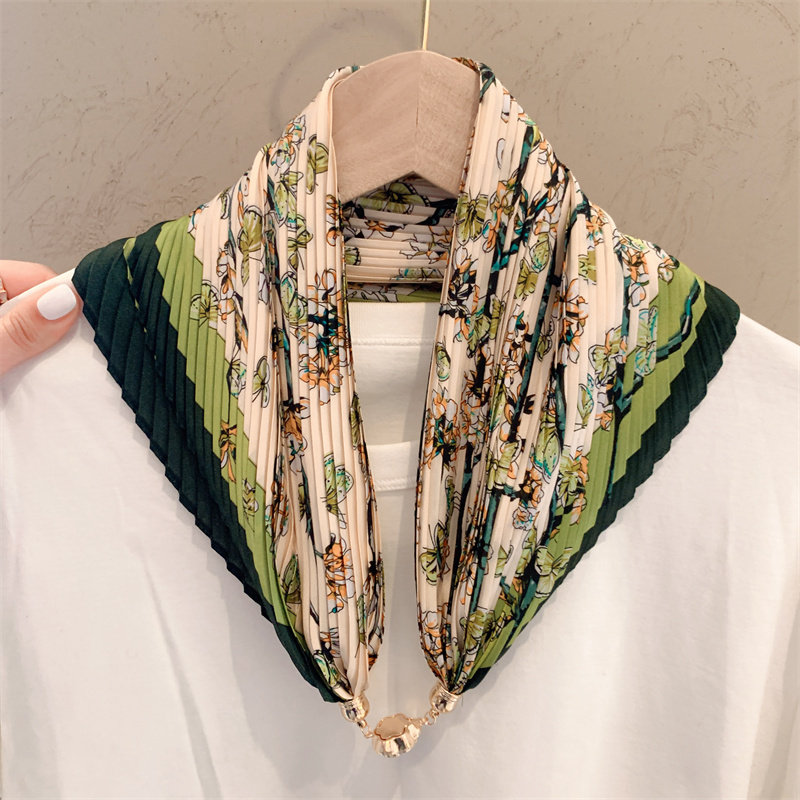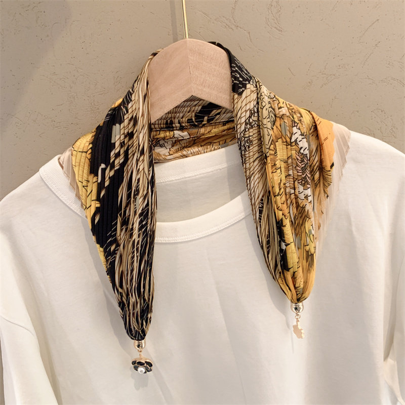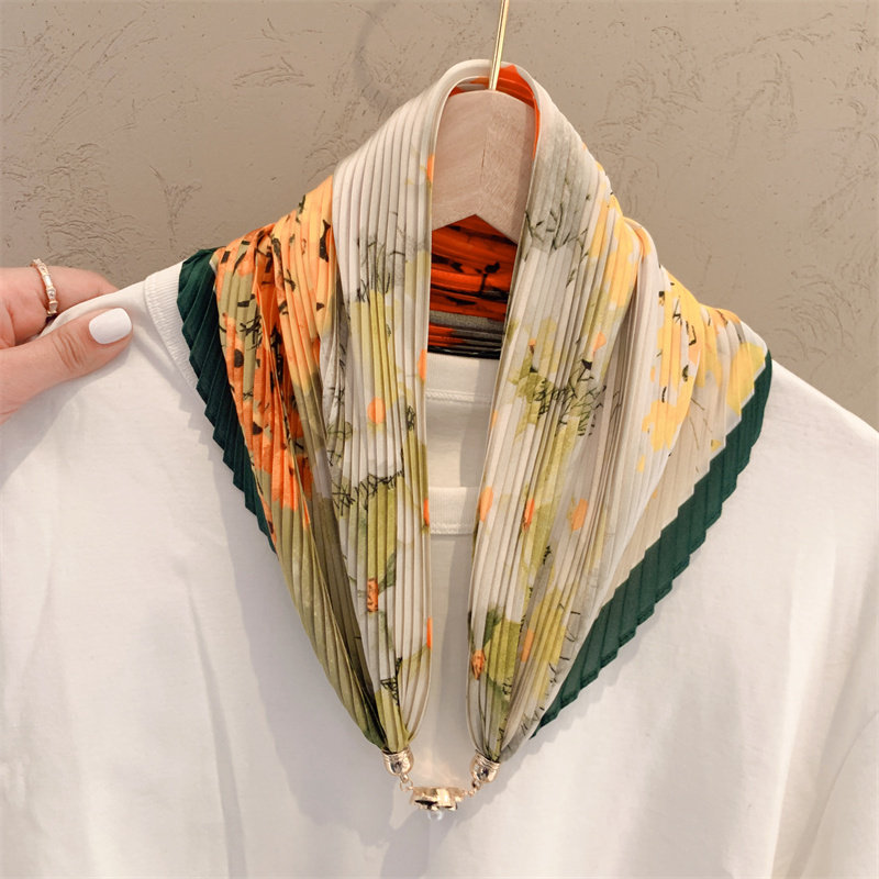 韩版新款磁扣珍珠小丝巾懒人女护颈装饰百搭项链领巾搭配T恤衬衫