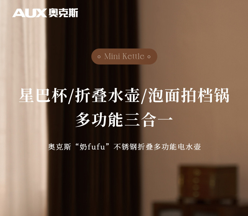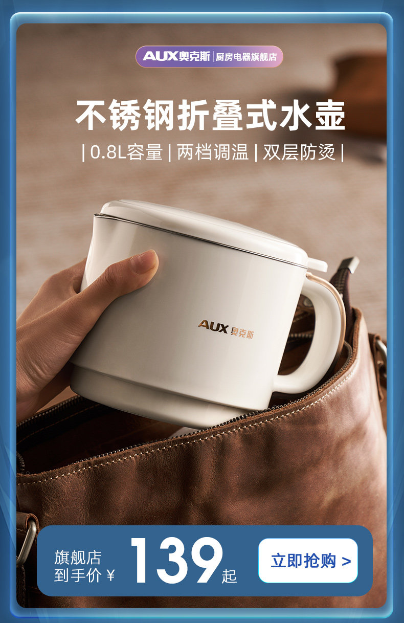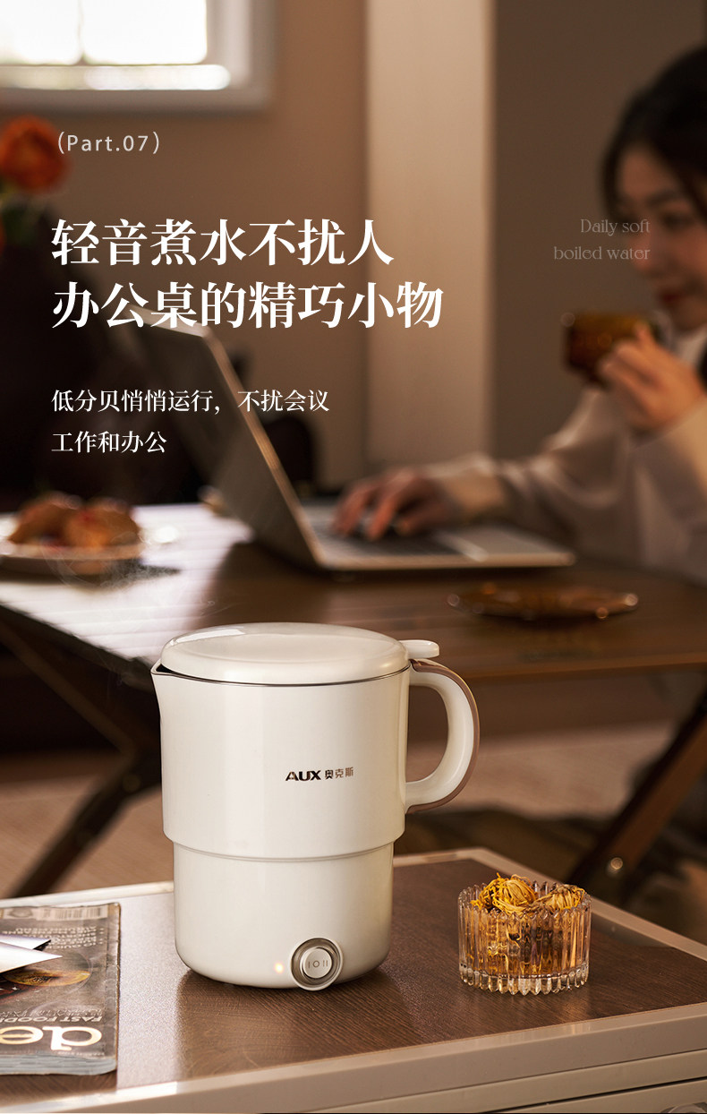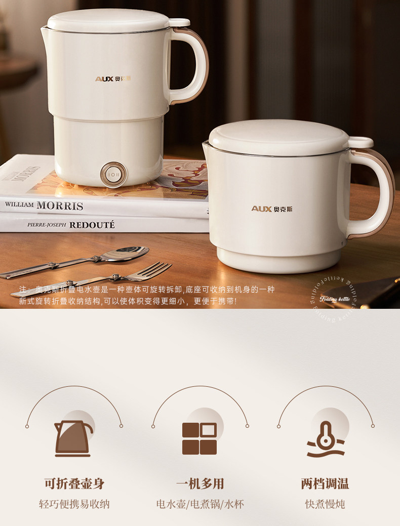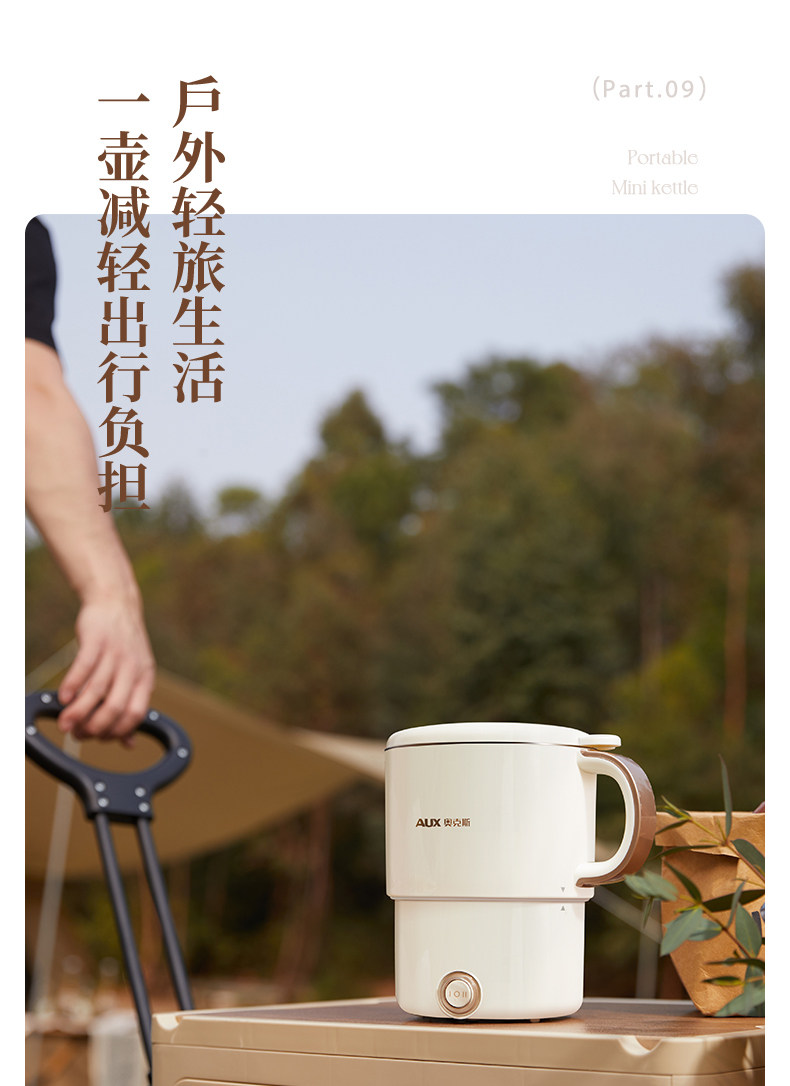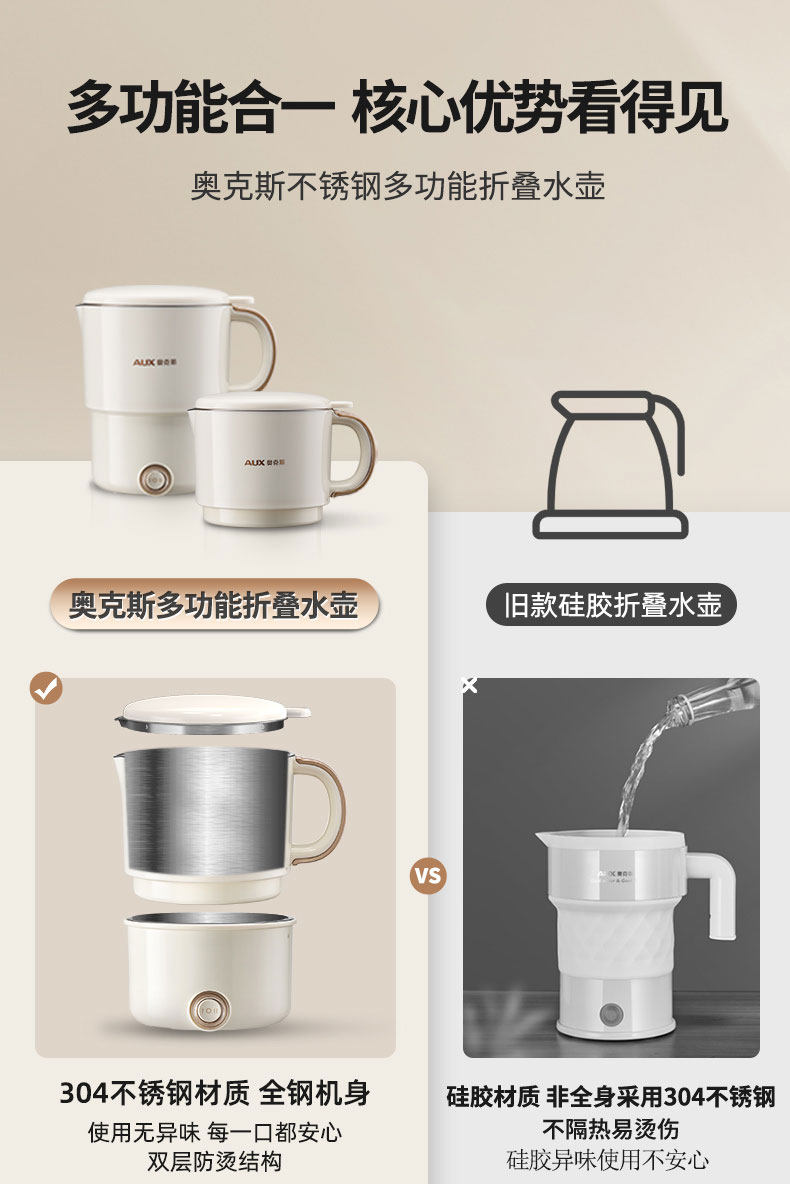 奥克斯全钢折叠水壶旅行出差便携式烧水壶不锈钢电热水杯迷你家用