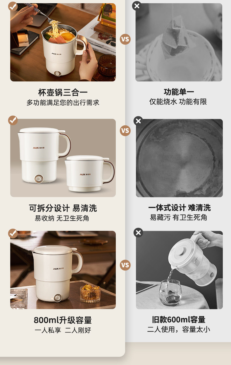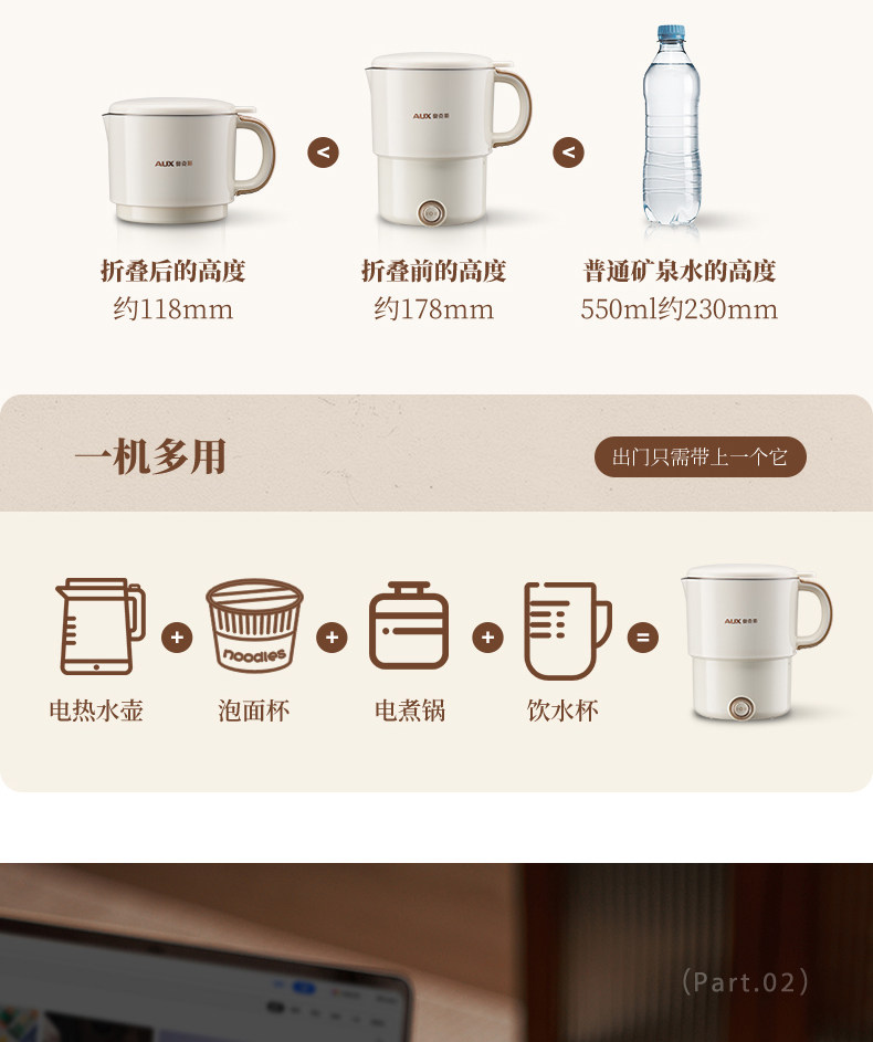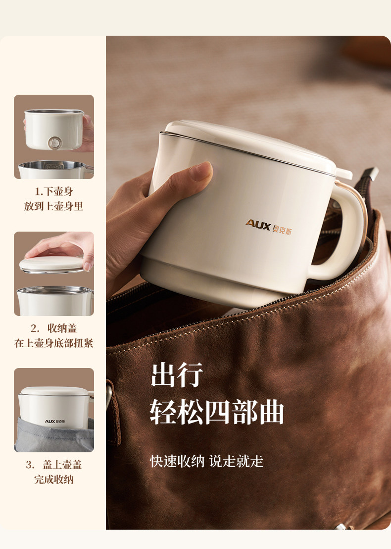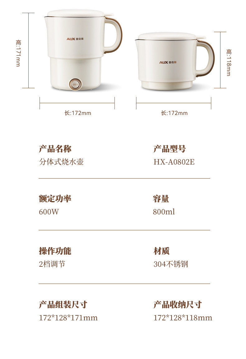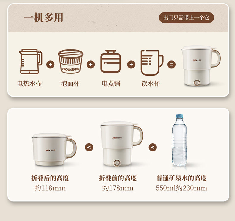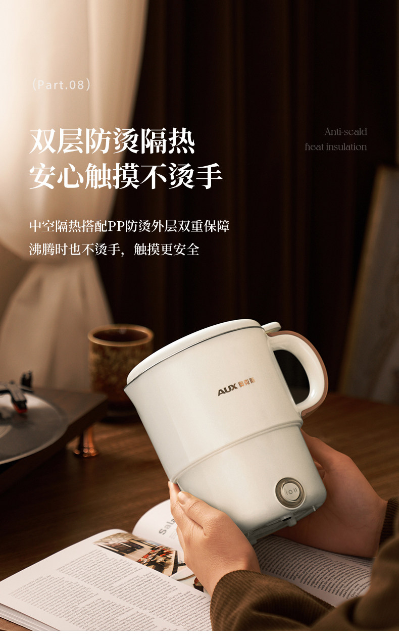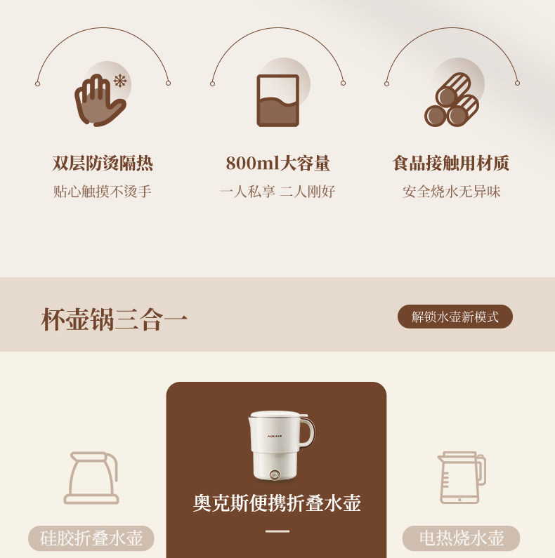 奥克斯全钢折叠水壶旅行出差便携式烧水壶不锈钢电热水杯迷你家用