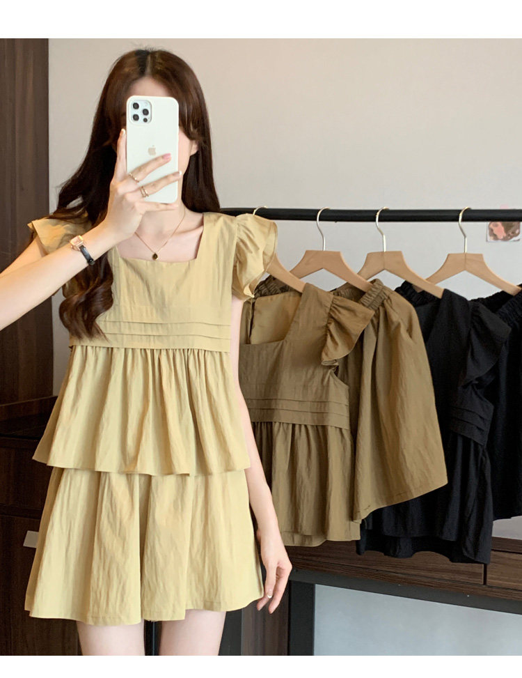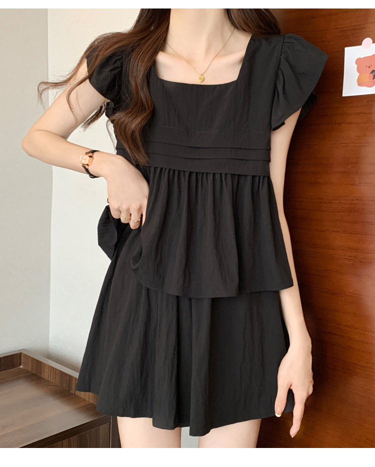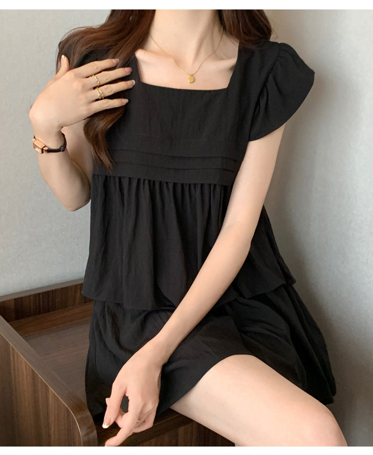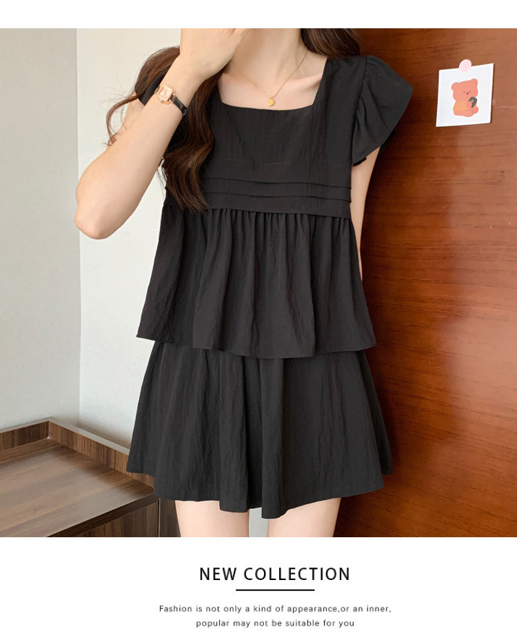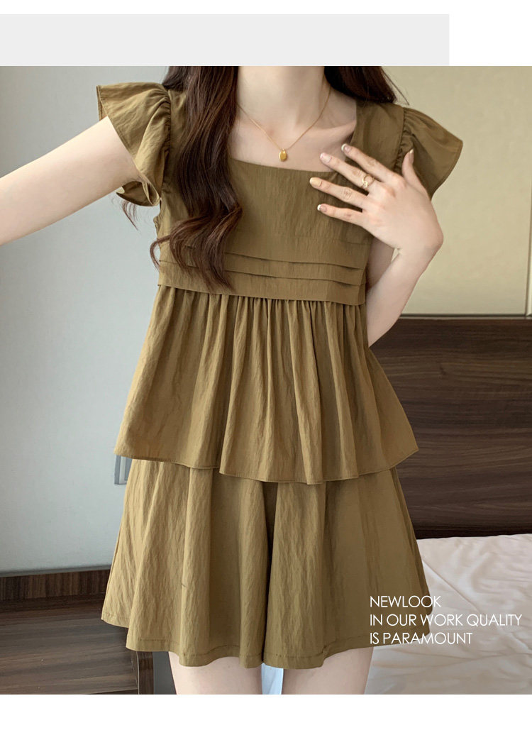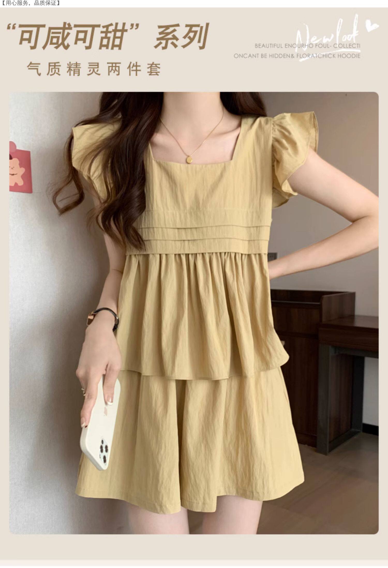 大码女装夏季微胖mm显瘦遮肉穿搭飞飞袖衬衣阔腿短裤休闲两件套装