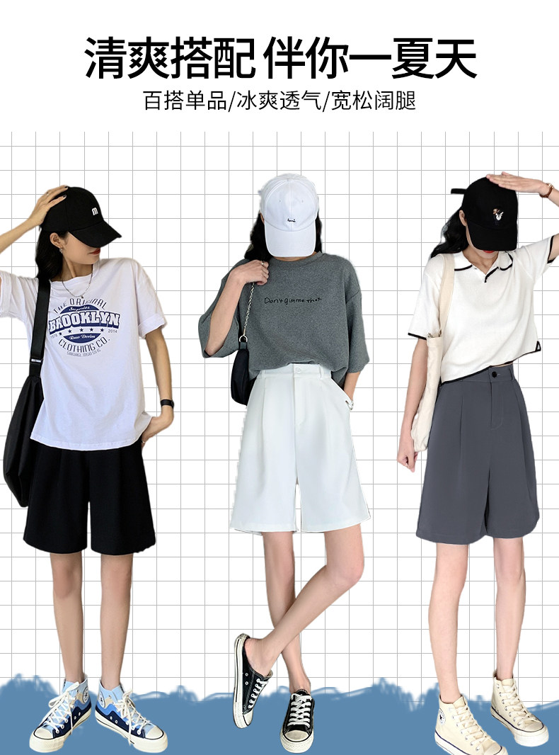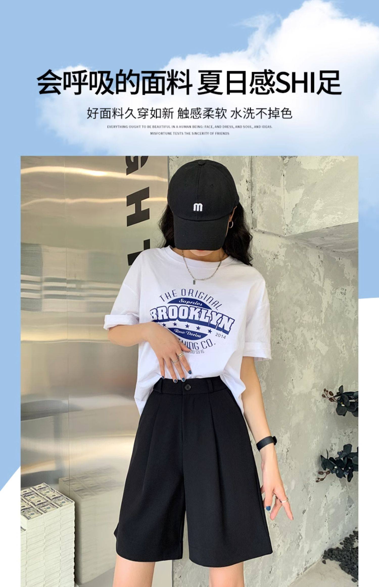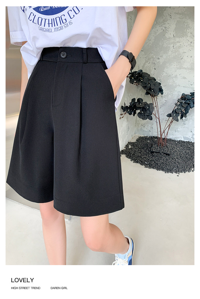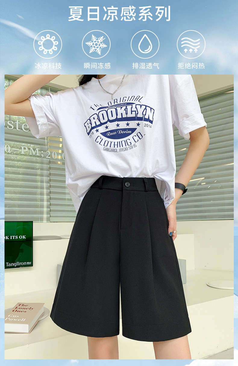 黑色西装短裤女夏季高腰显瘦宽松休闲小个子冰丝大码a字5五分中裤