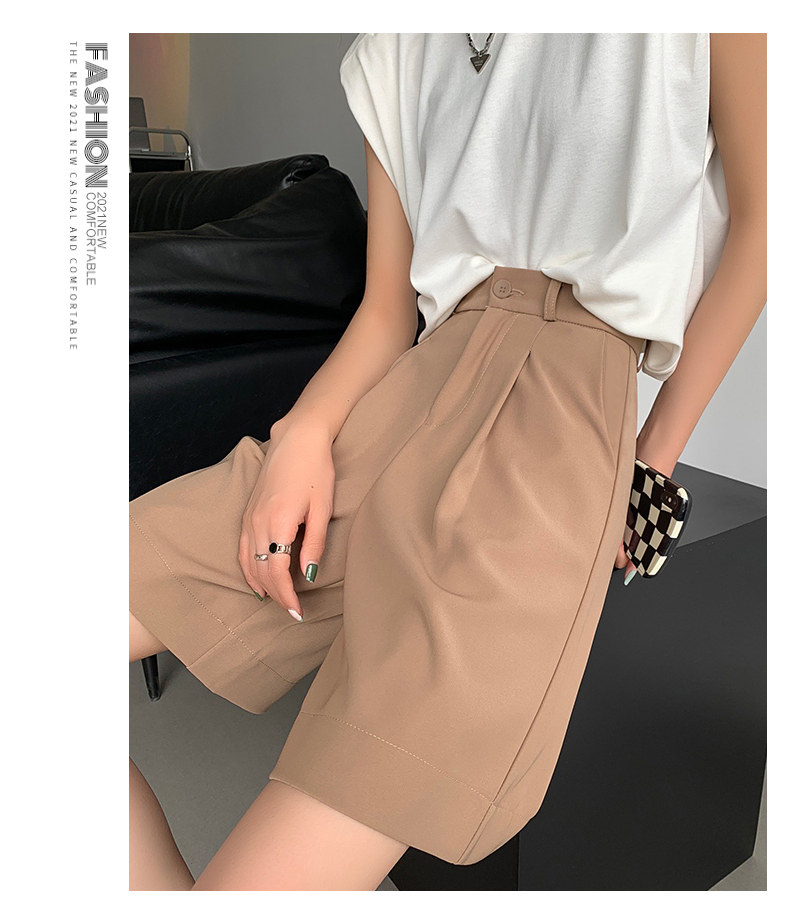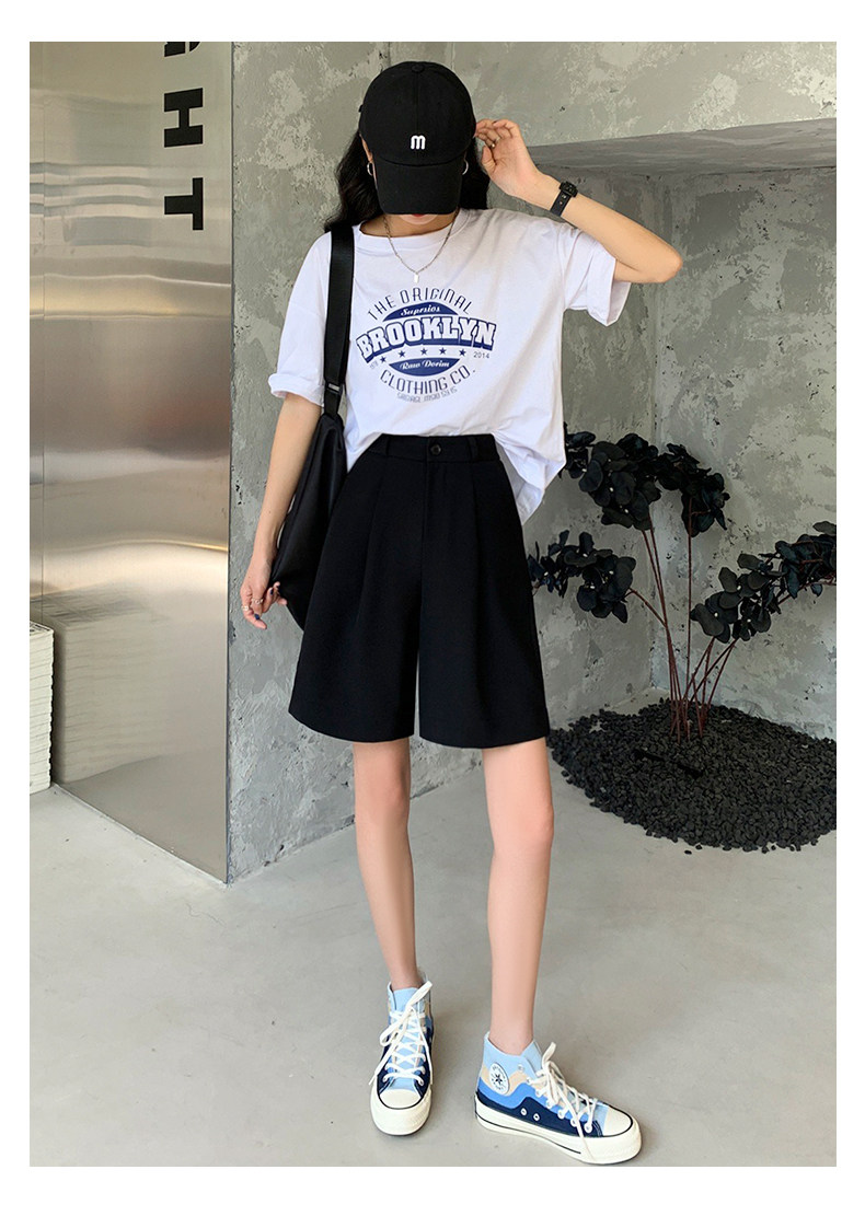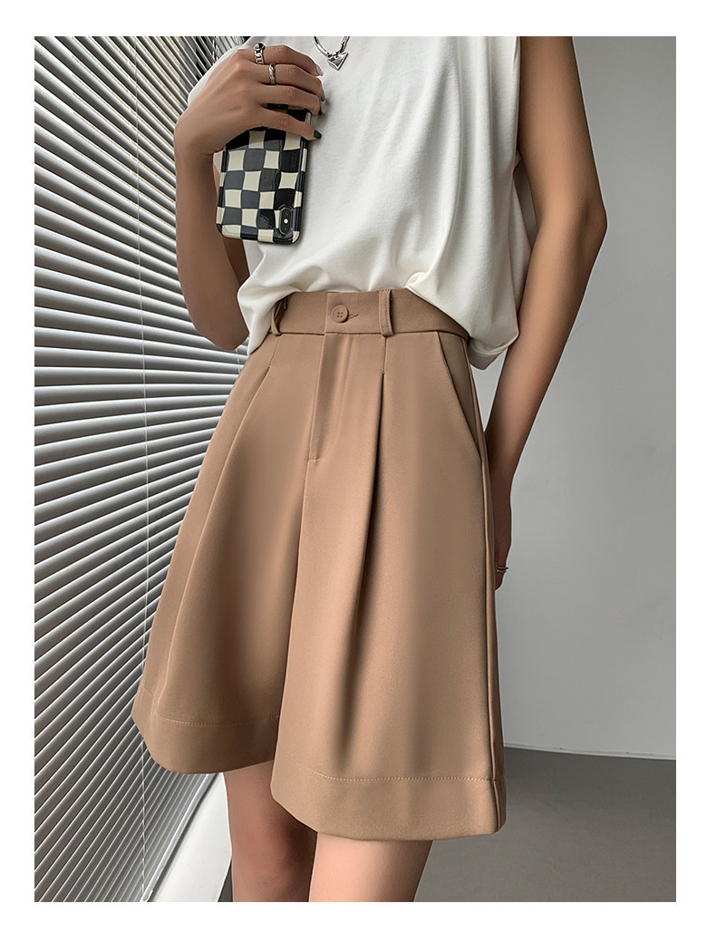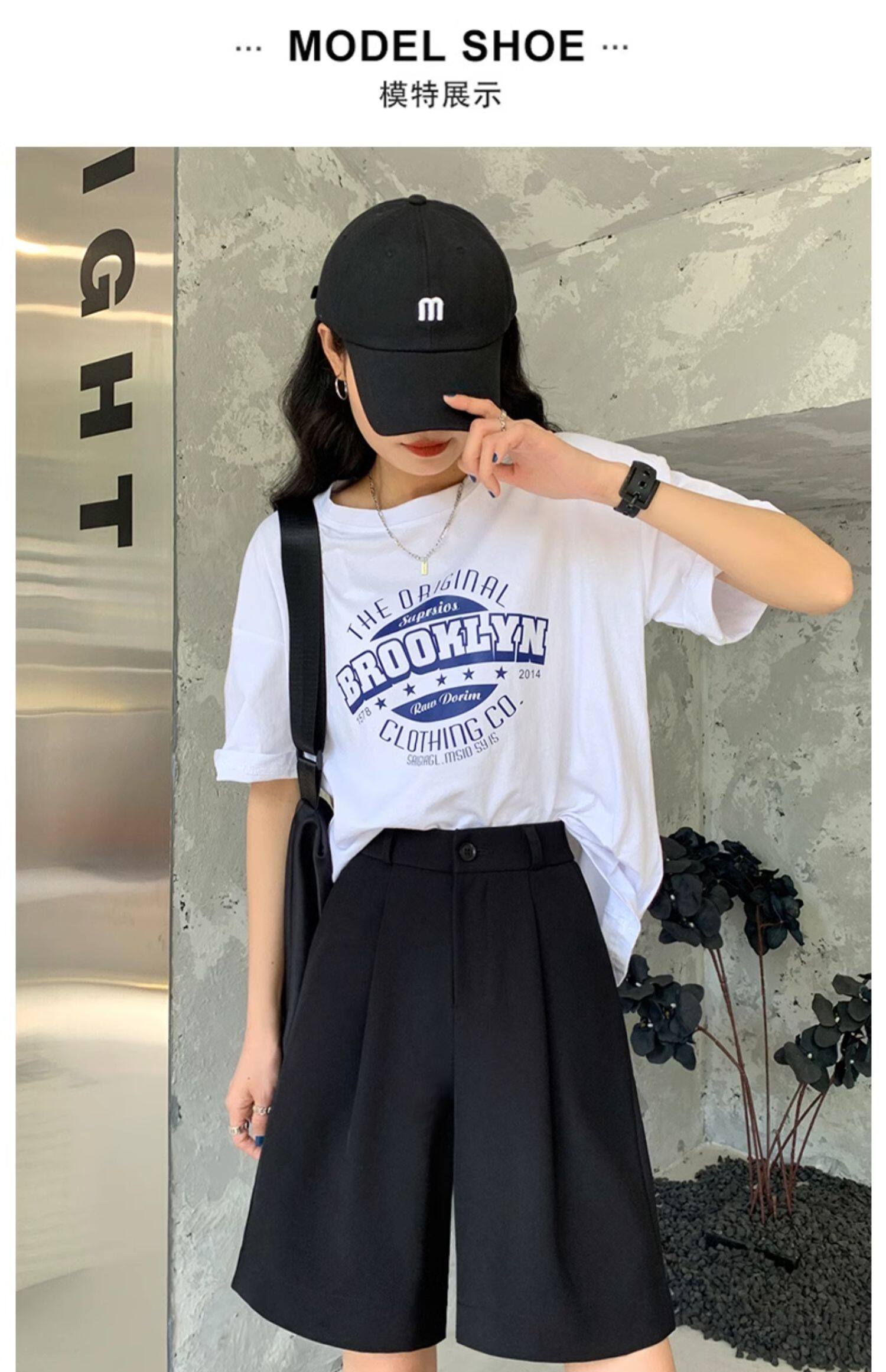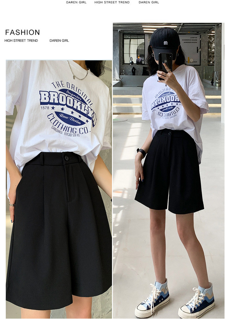 黑色西装短裤女夏季高腰显瘦宽松休闲小个子冰丝大码a字5五分中裤