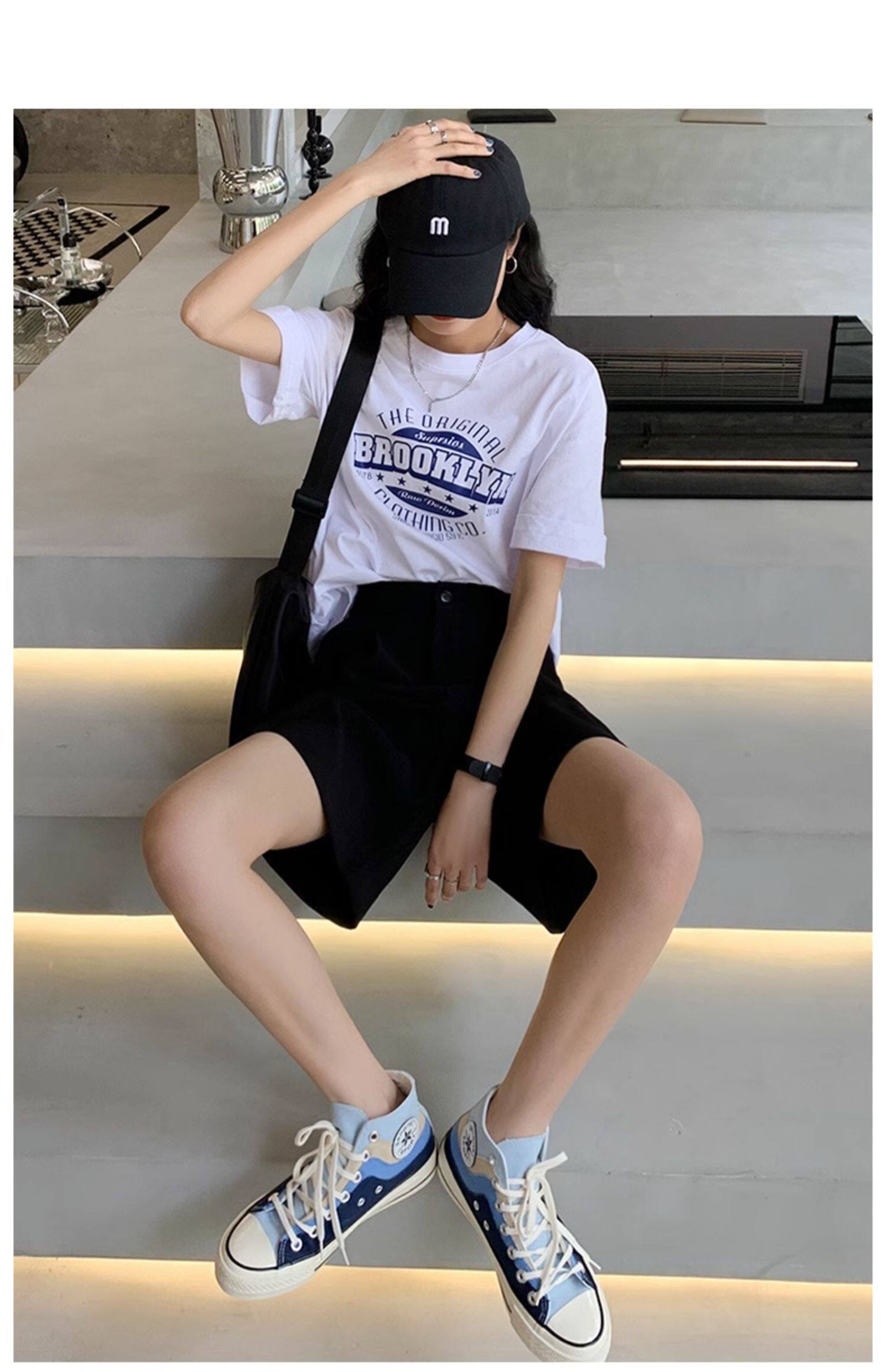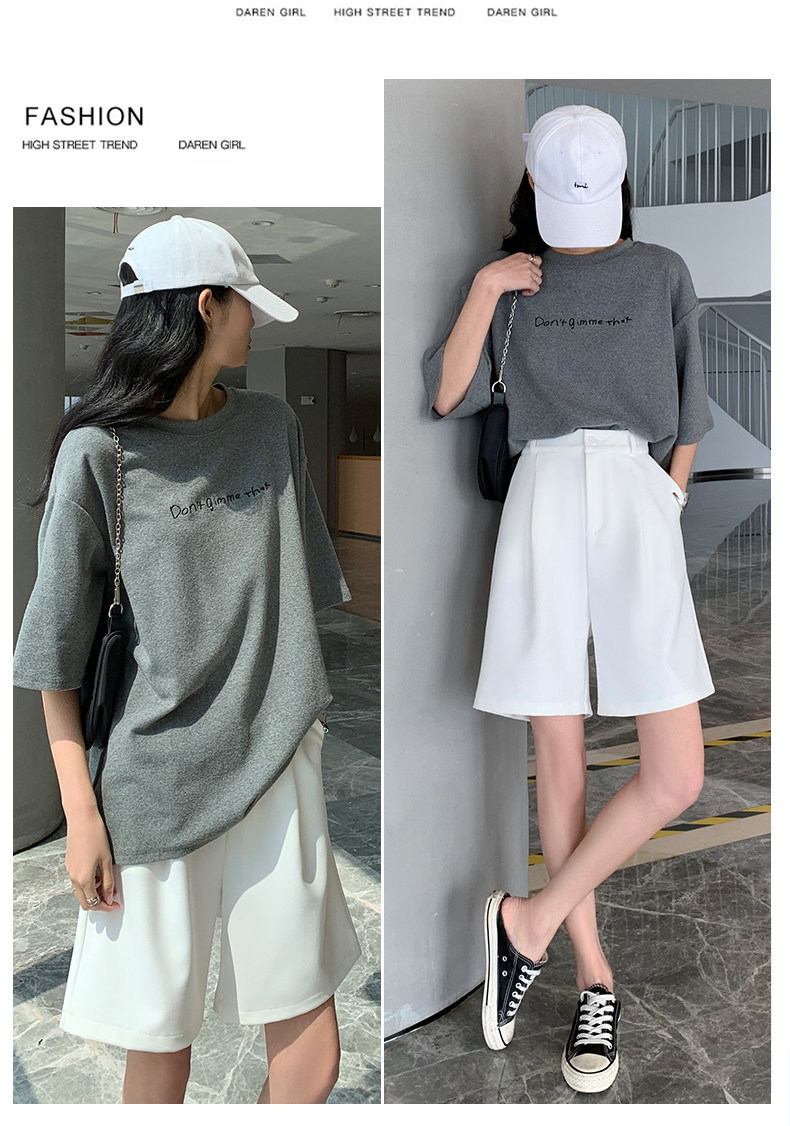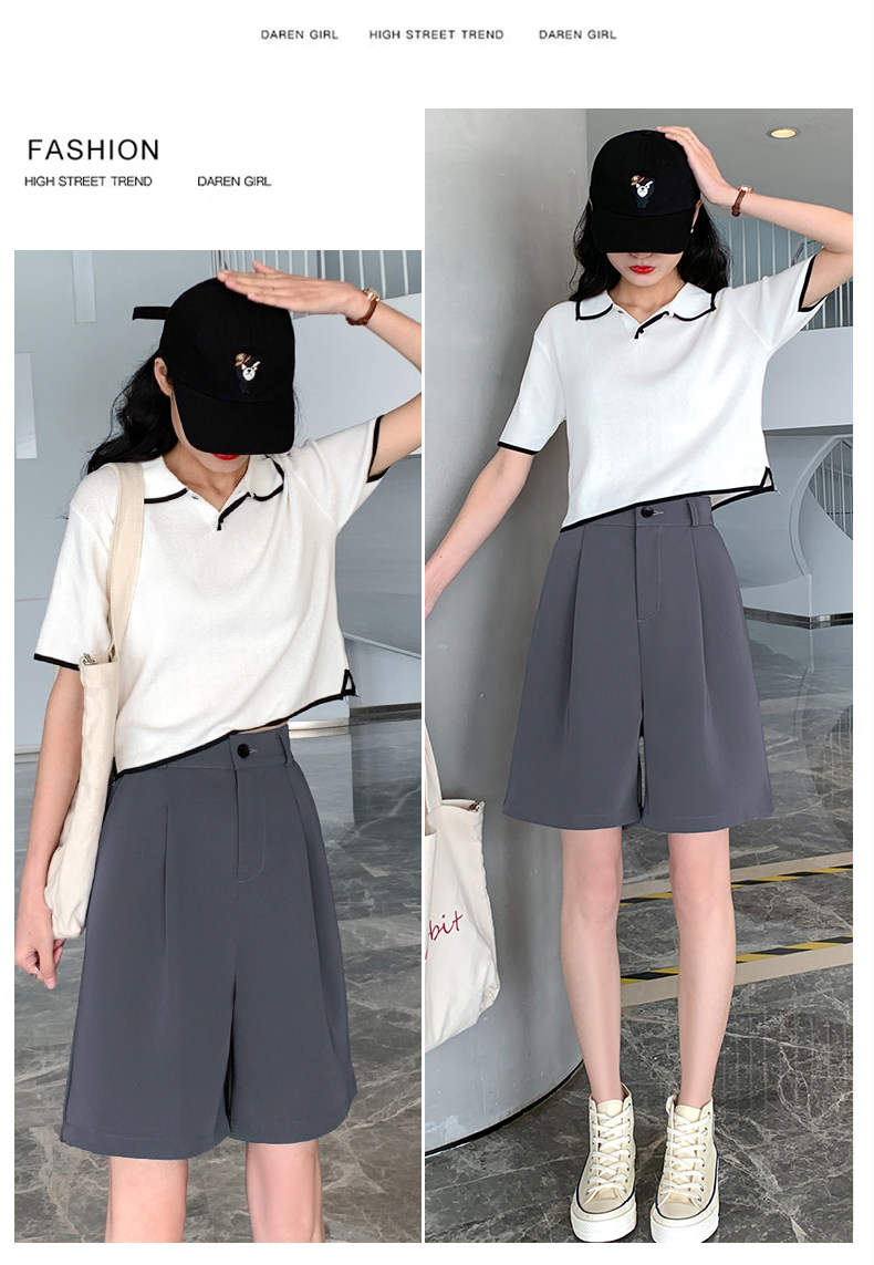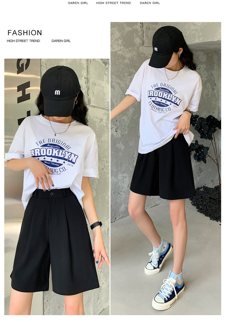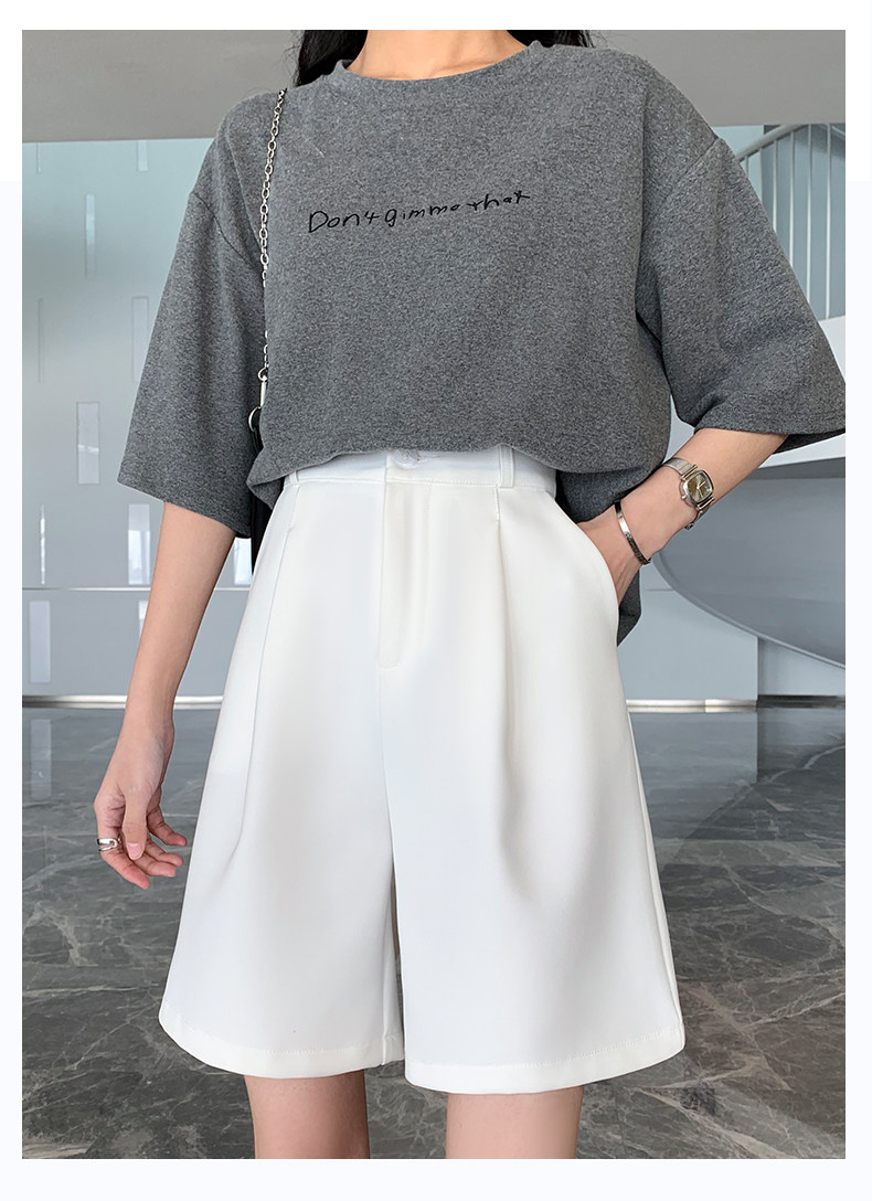 黑色西装短裤女夏季高腰显瘦宽松休闲小个子冰丝大码a字5五分中裤