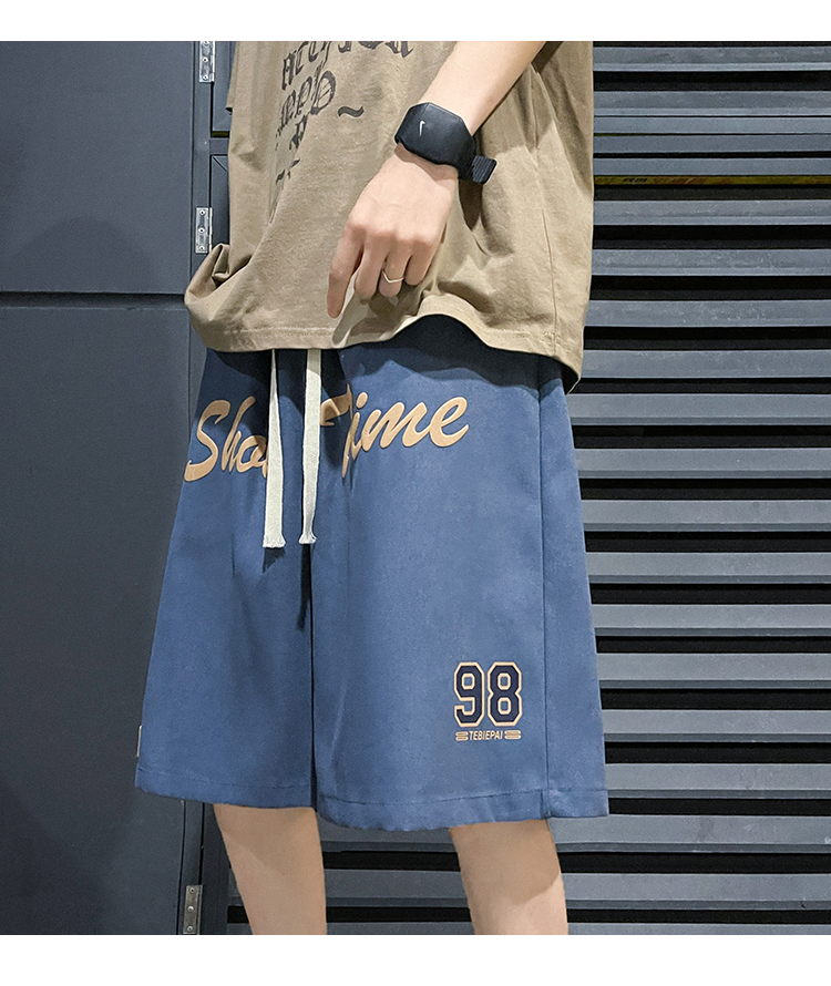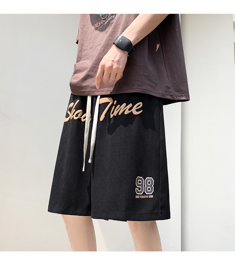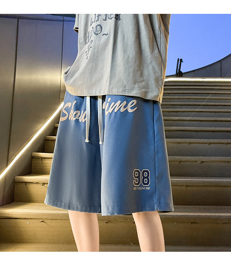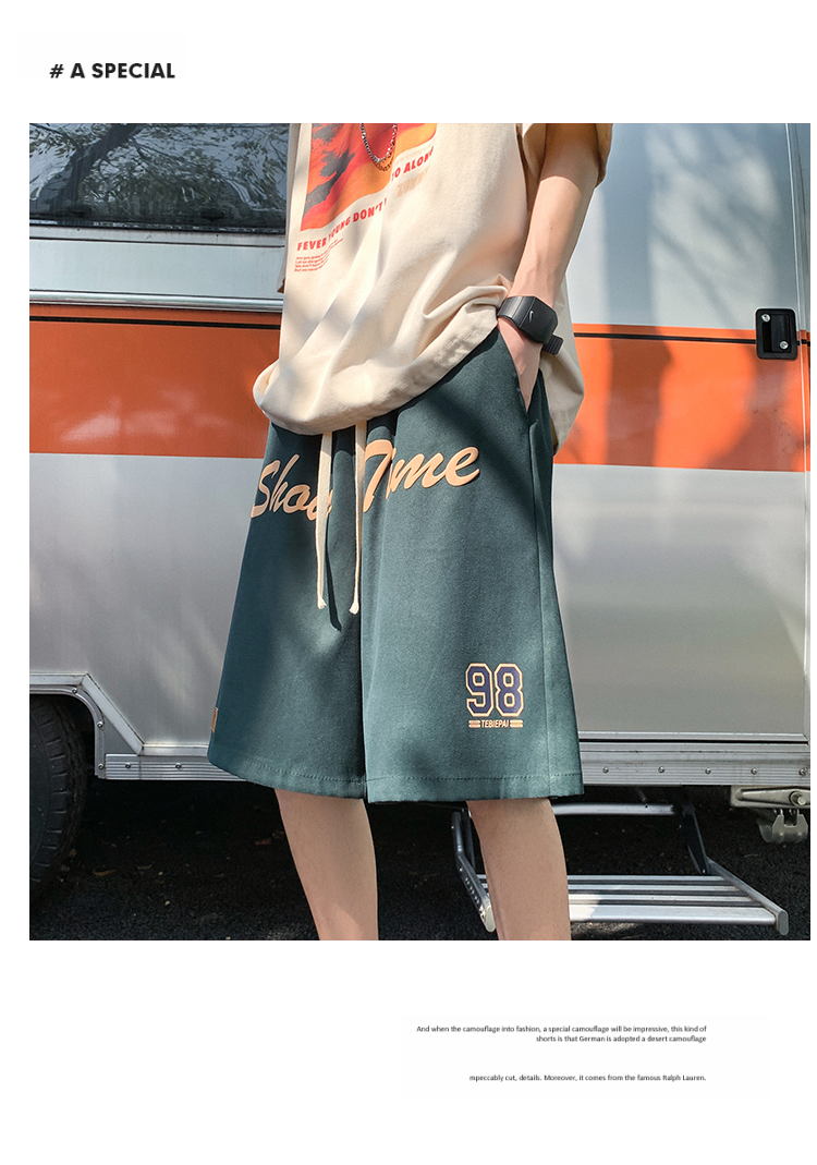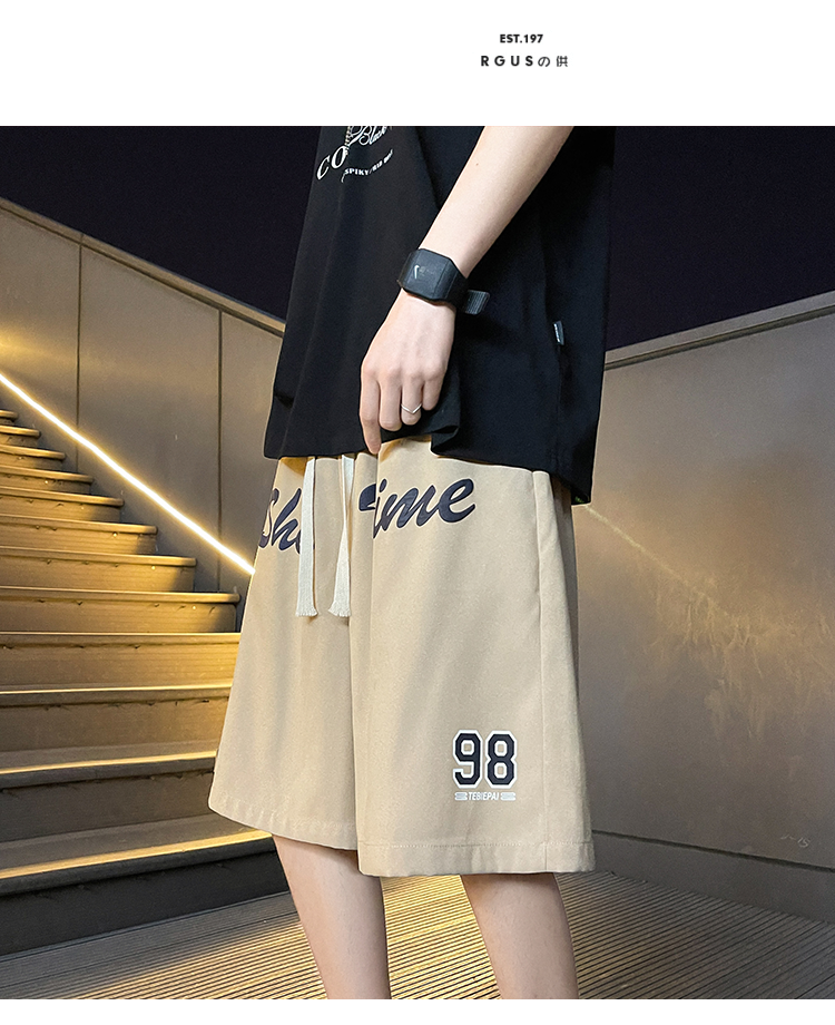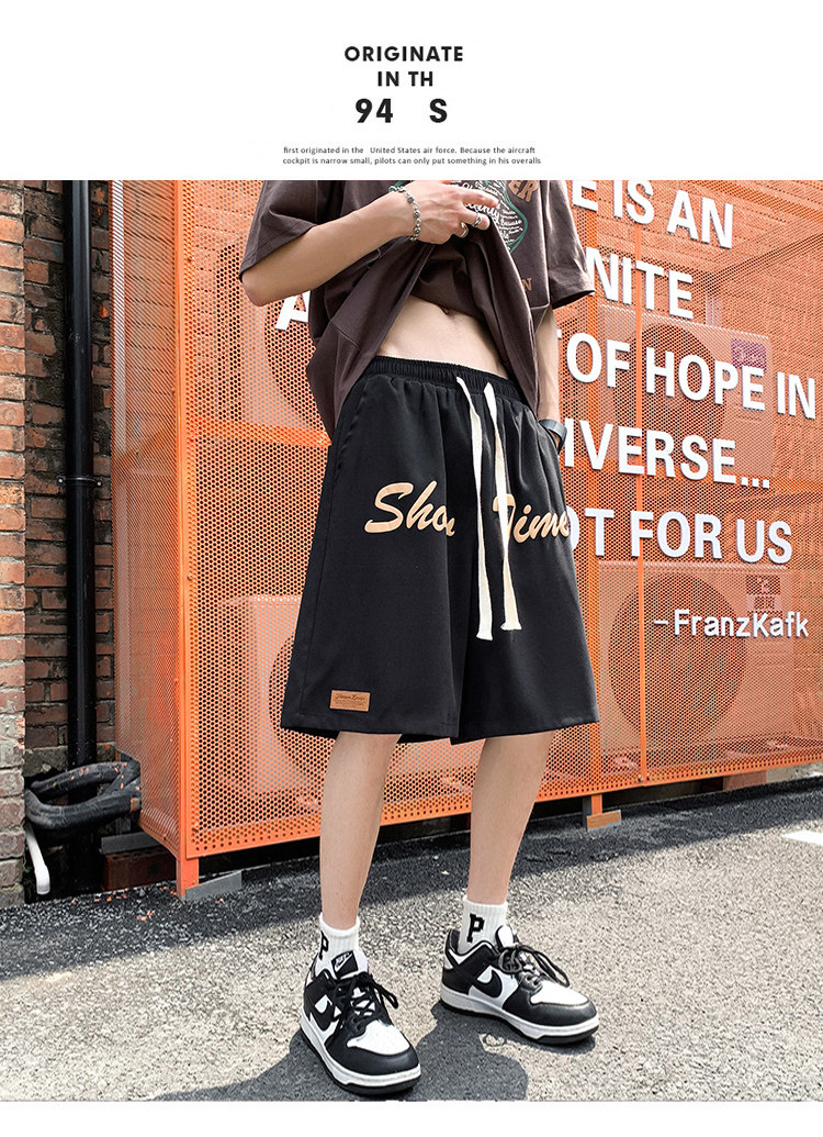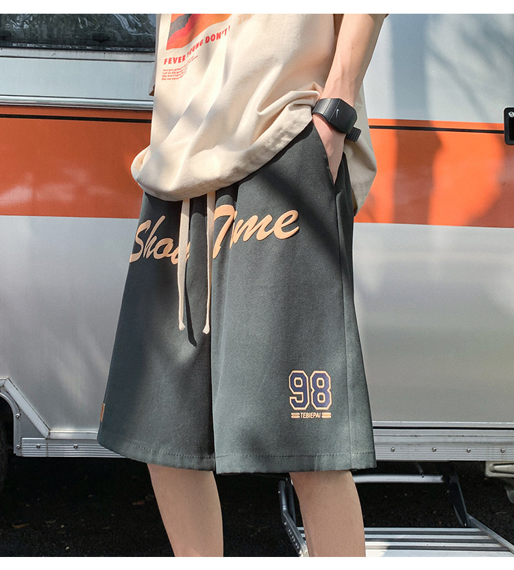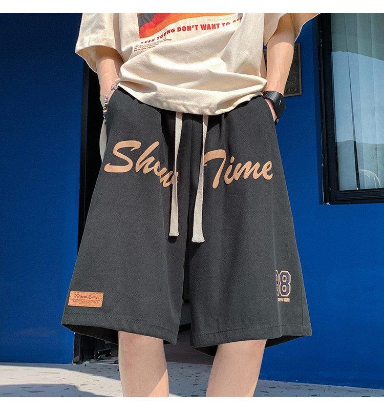 发泡印花运动短裤男夏季薄款美式复古高街ins潮牌宽松休闲五分裤5