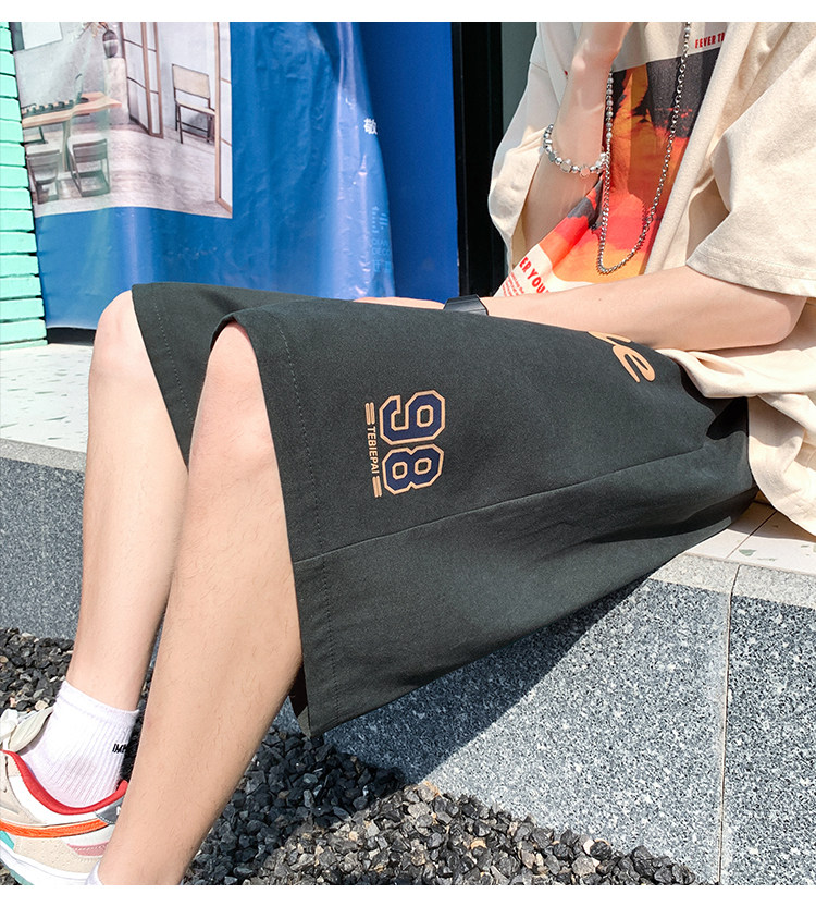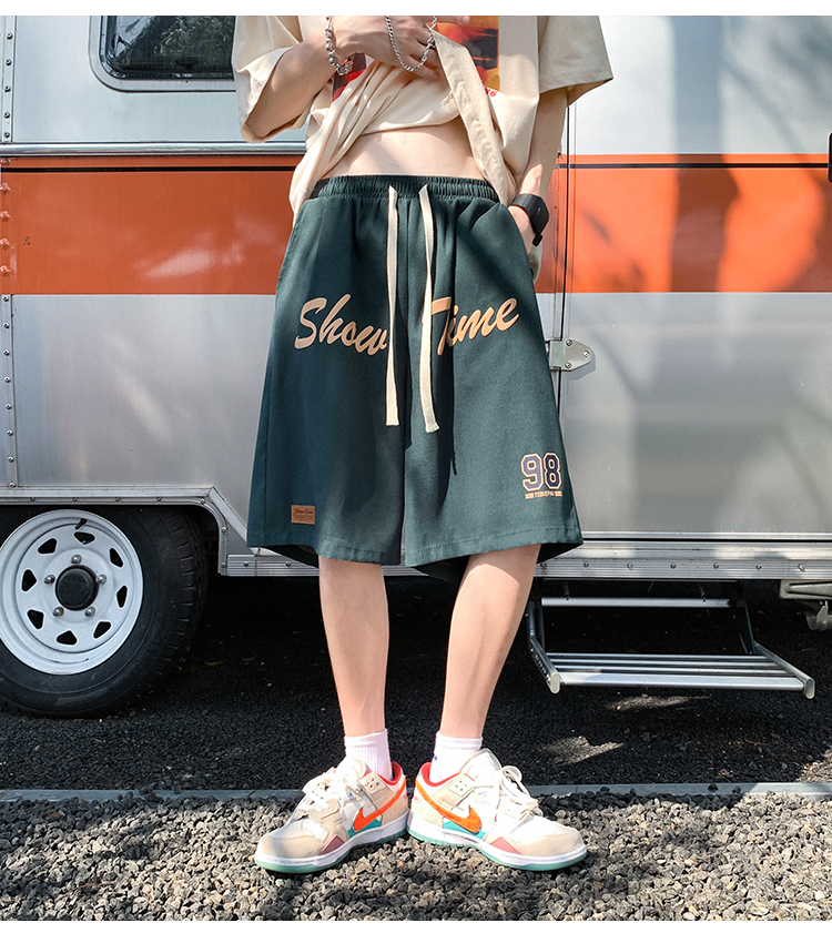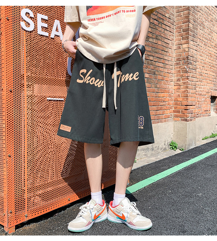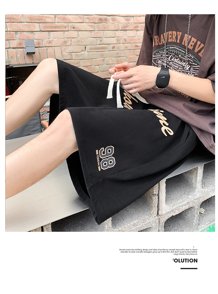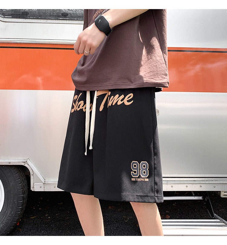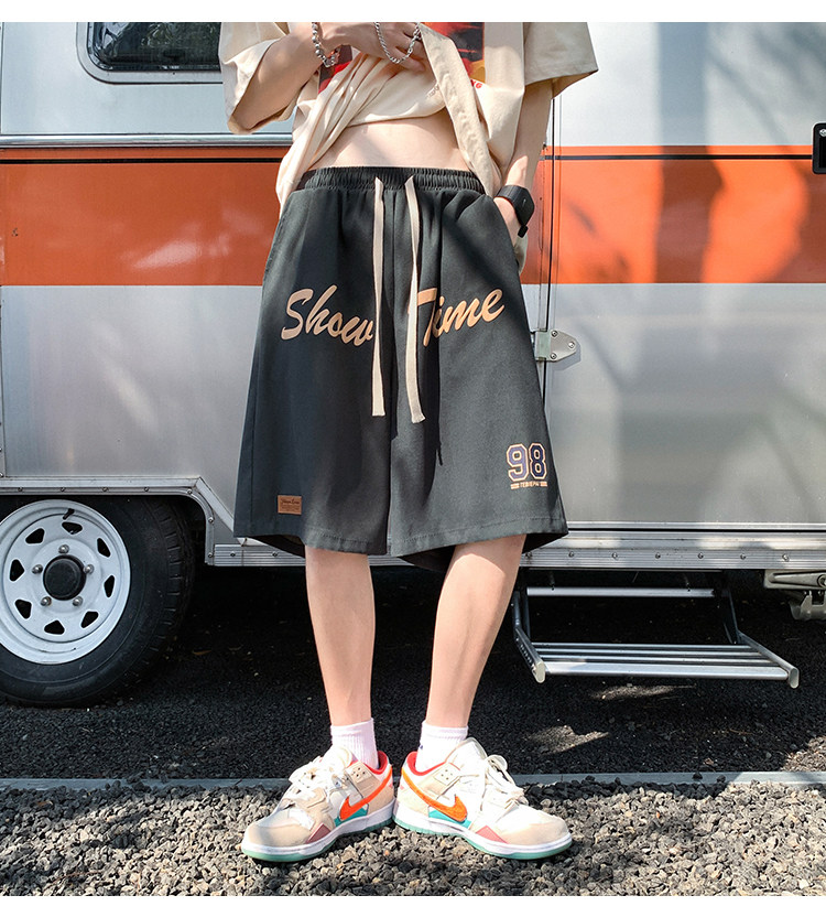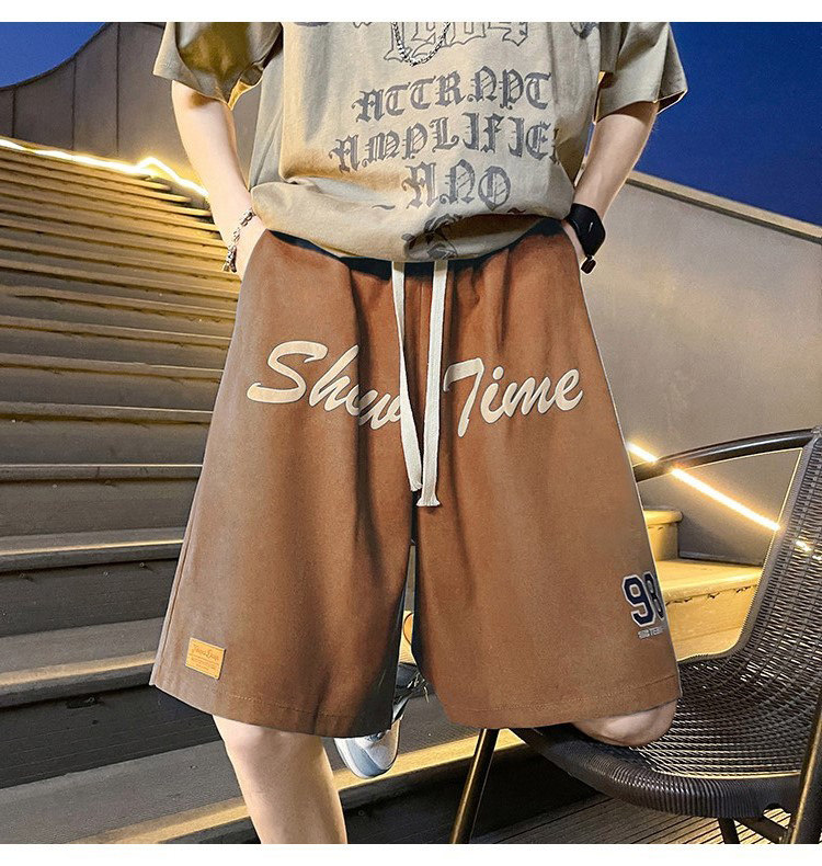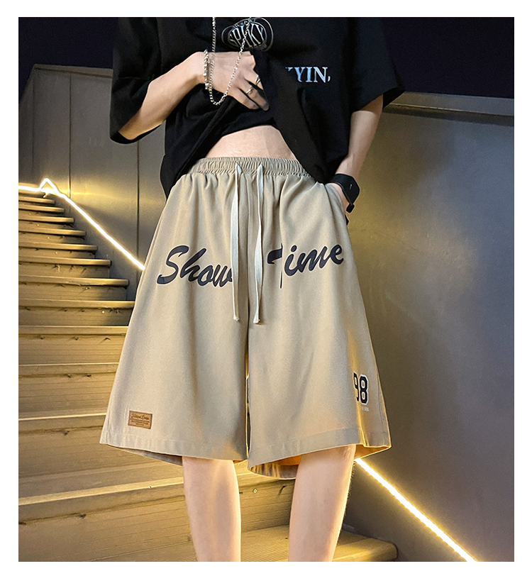发泡印花运动短裤男夏季薄款美式复古高街ins潮牌宽松休闲五分裤5