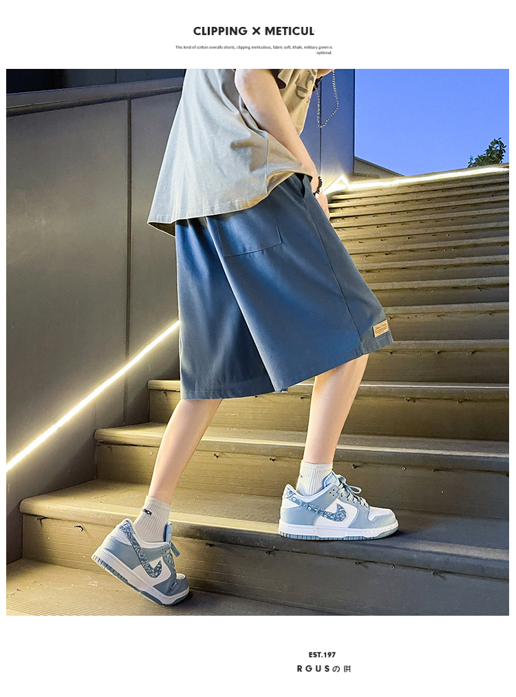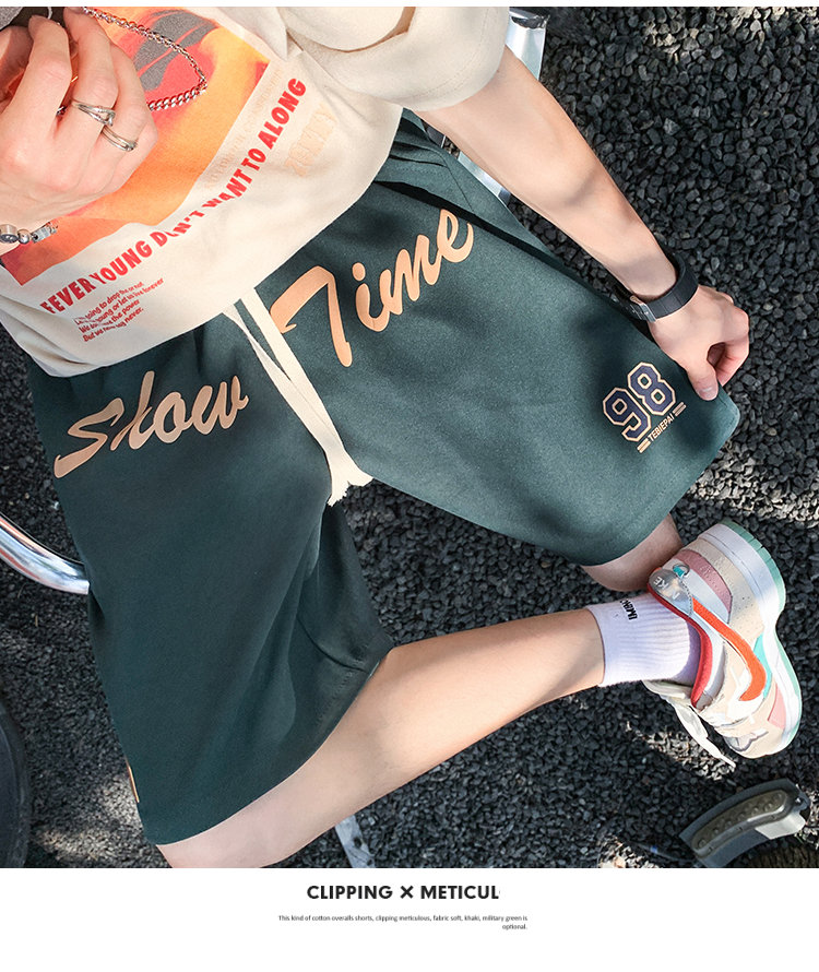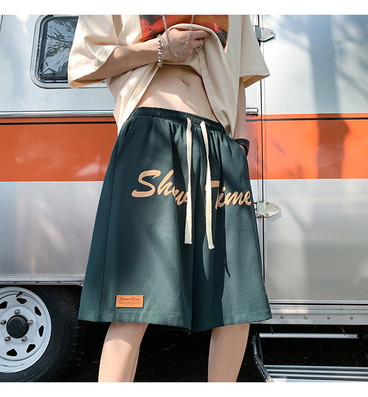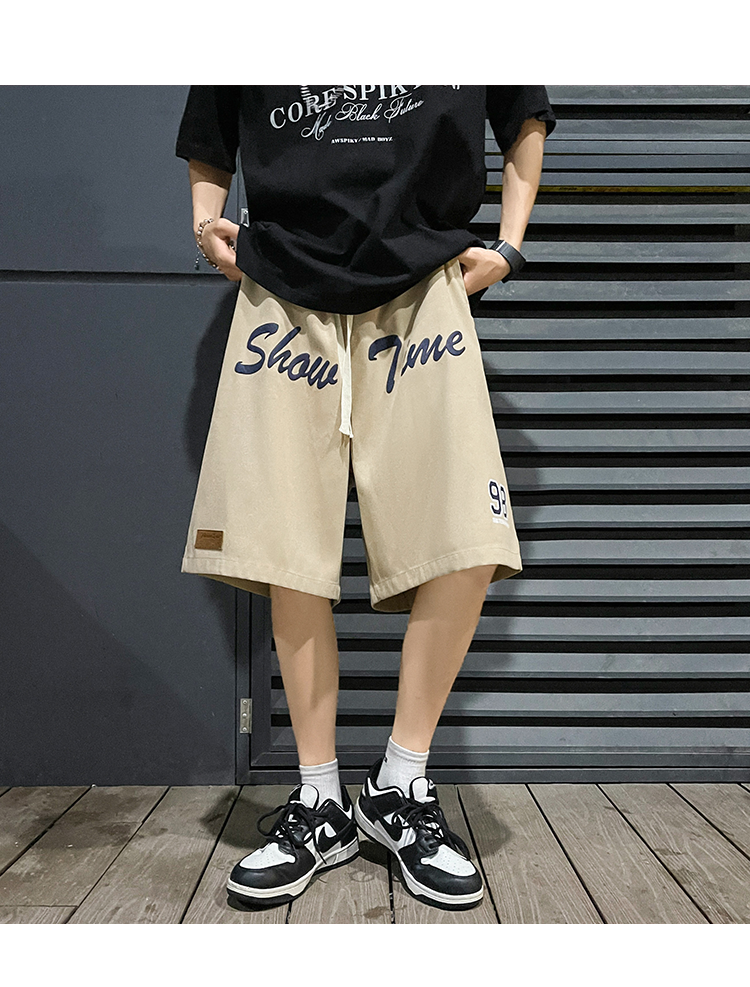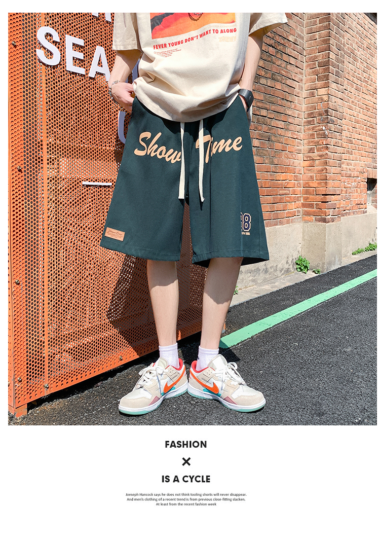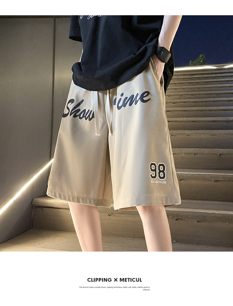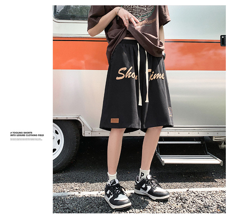 发泡印花运动短裤男夏季薄款美式复古高街ins潮牌宽松休闲五分裤5