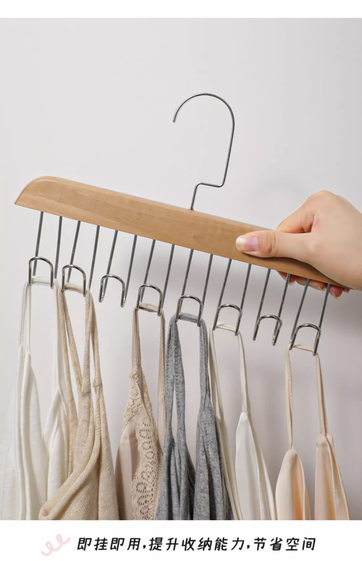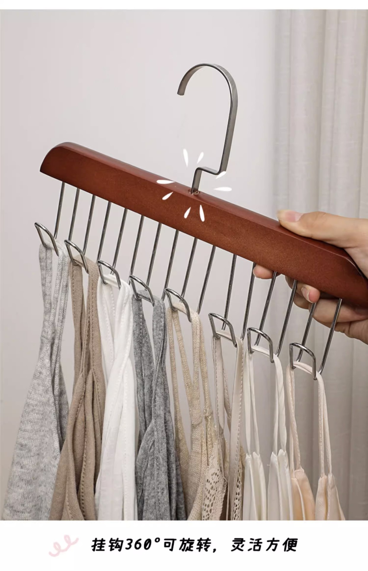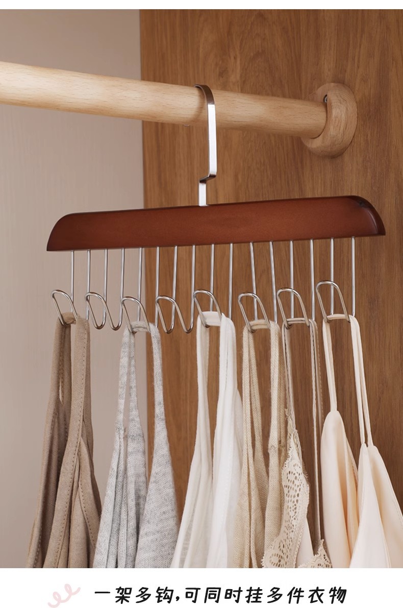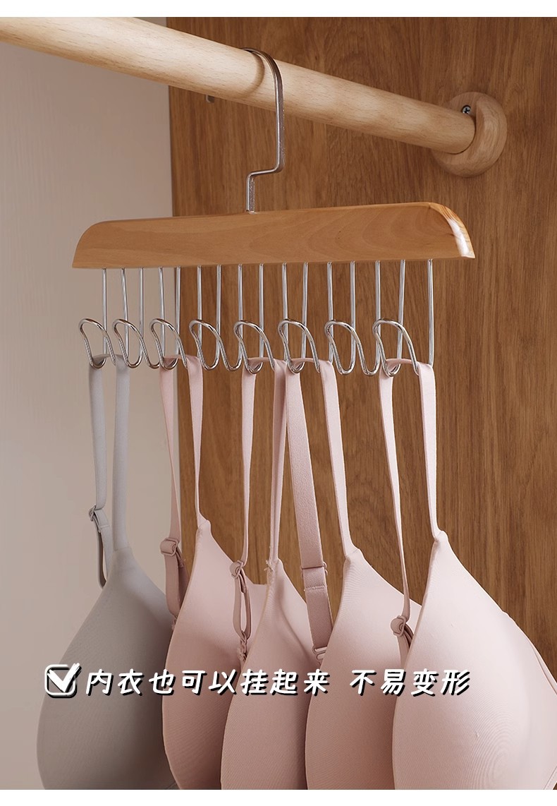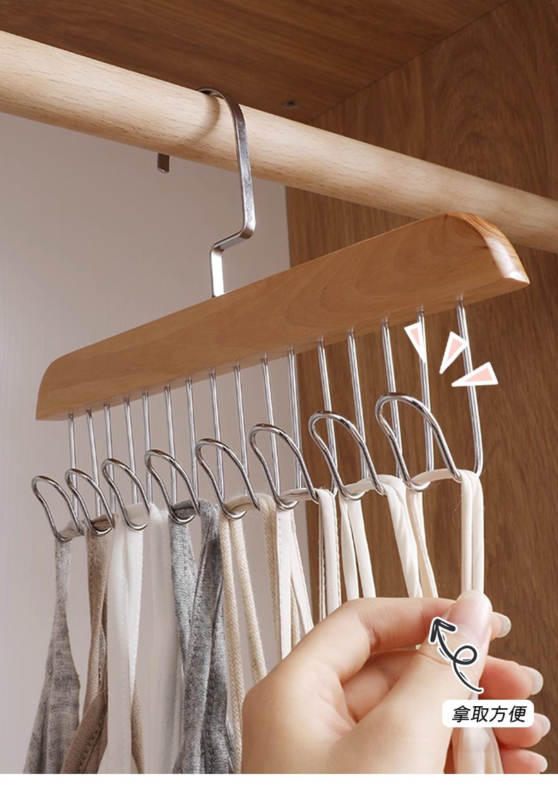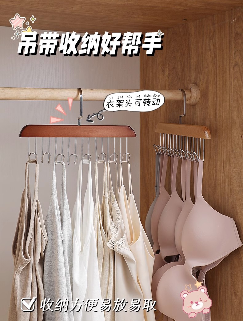 木质吊带衣架内衣背心收纳神器学生挂钩内衣架 阳台晾衣架晒衣架