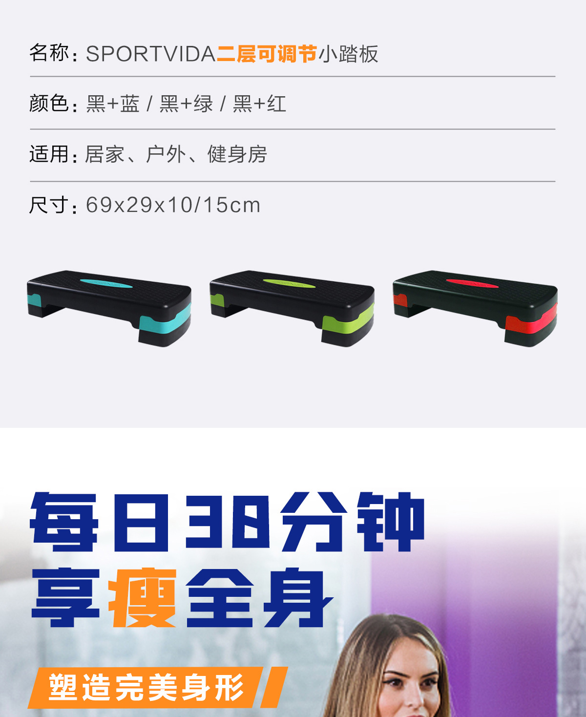 塑料有氧健身小踏板 跳操儿童健身踏板 韵律踏板 可调节双层踏板