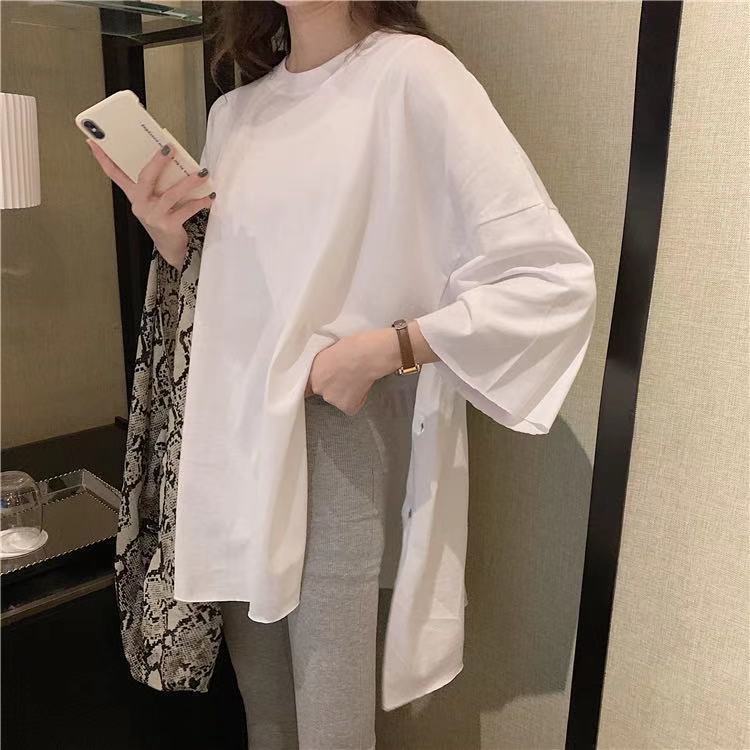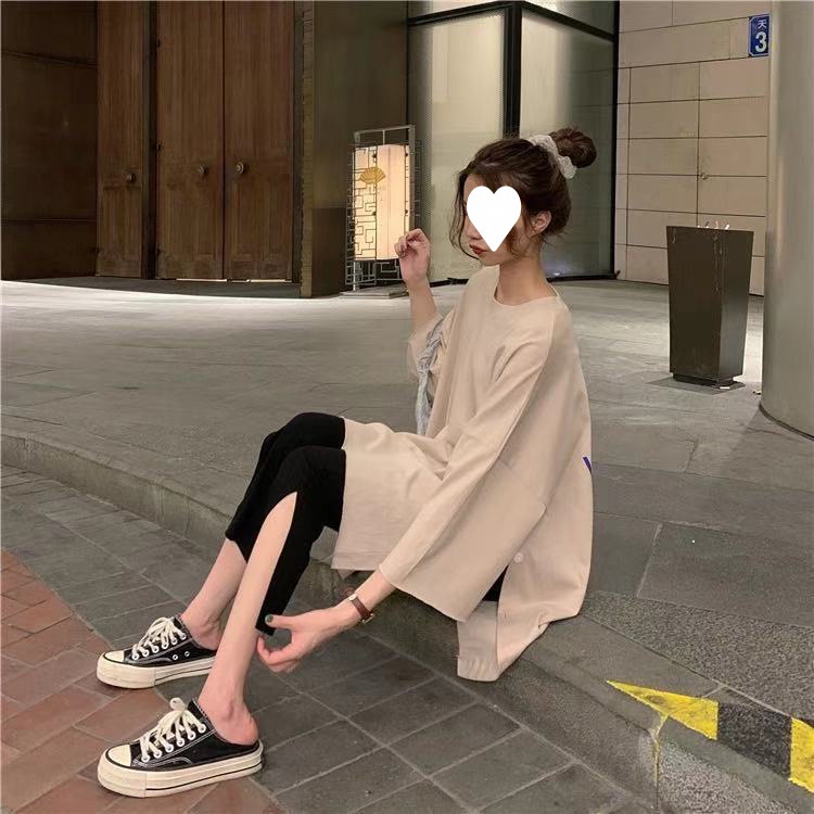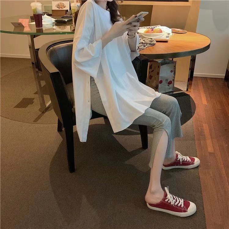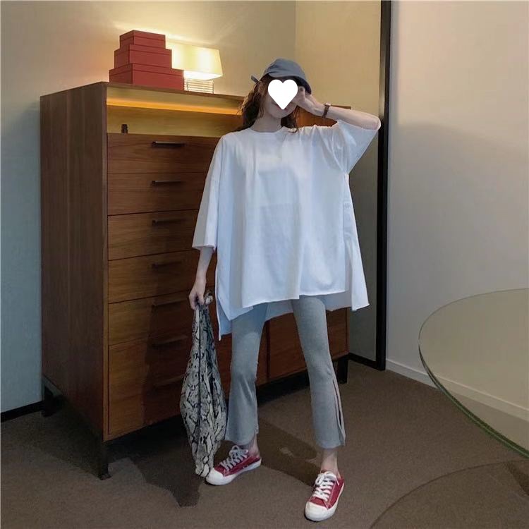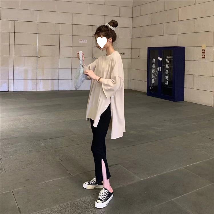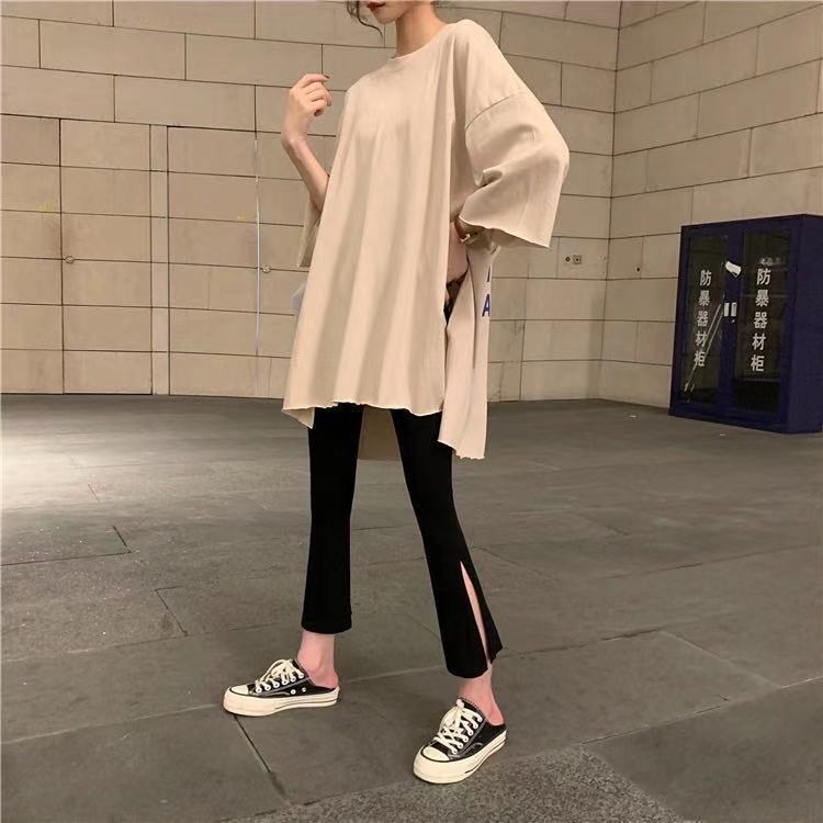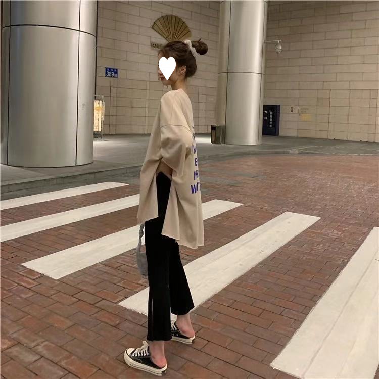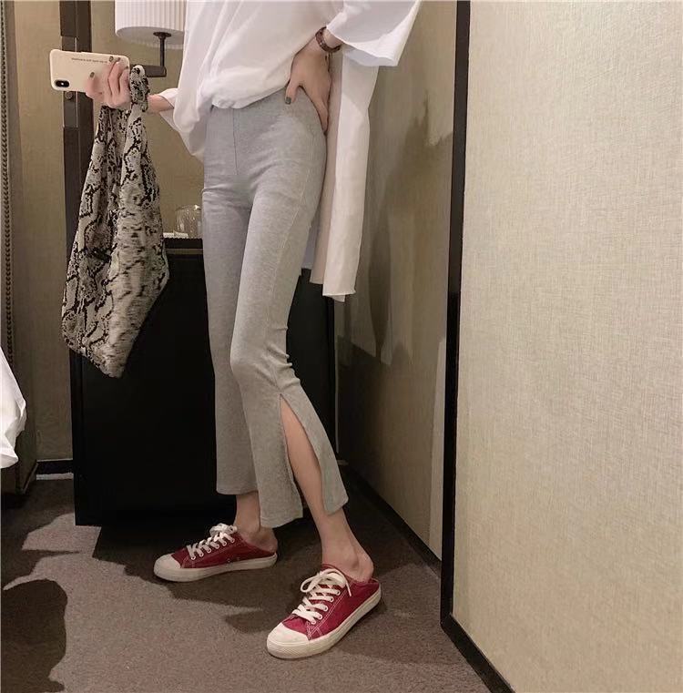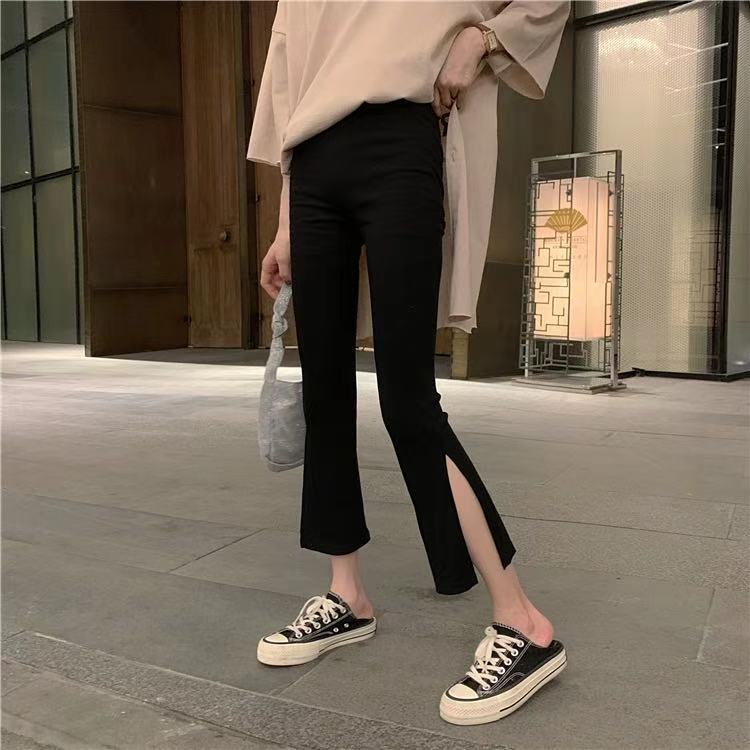 黑色裤子春夏装2021年新款女开叉七分裤休闲高腰显瘦垂感微喇叭裤