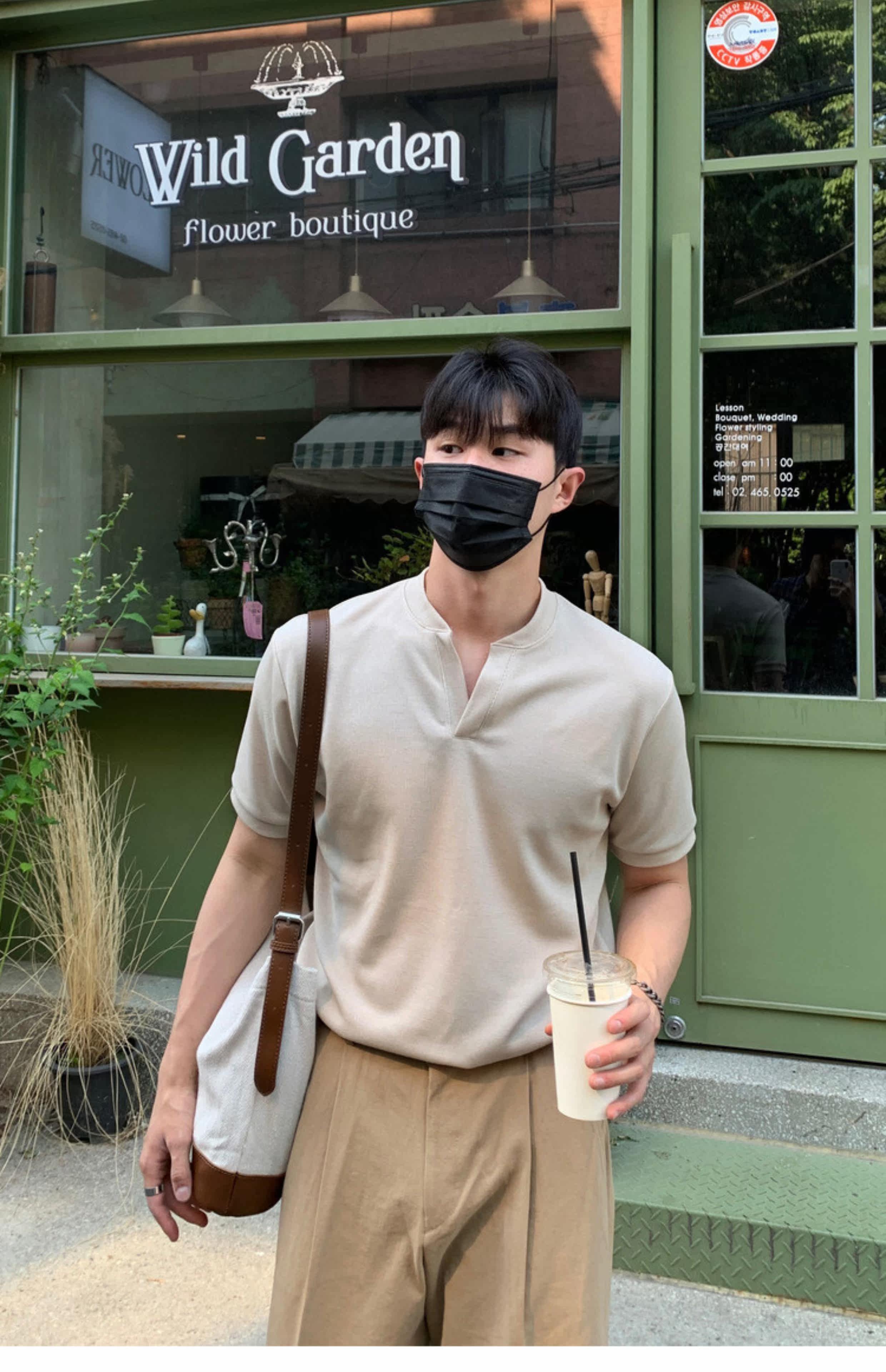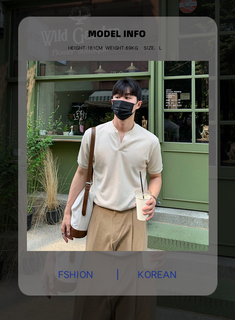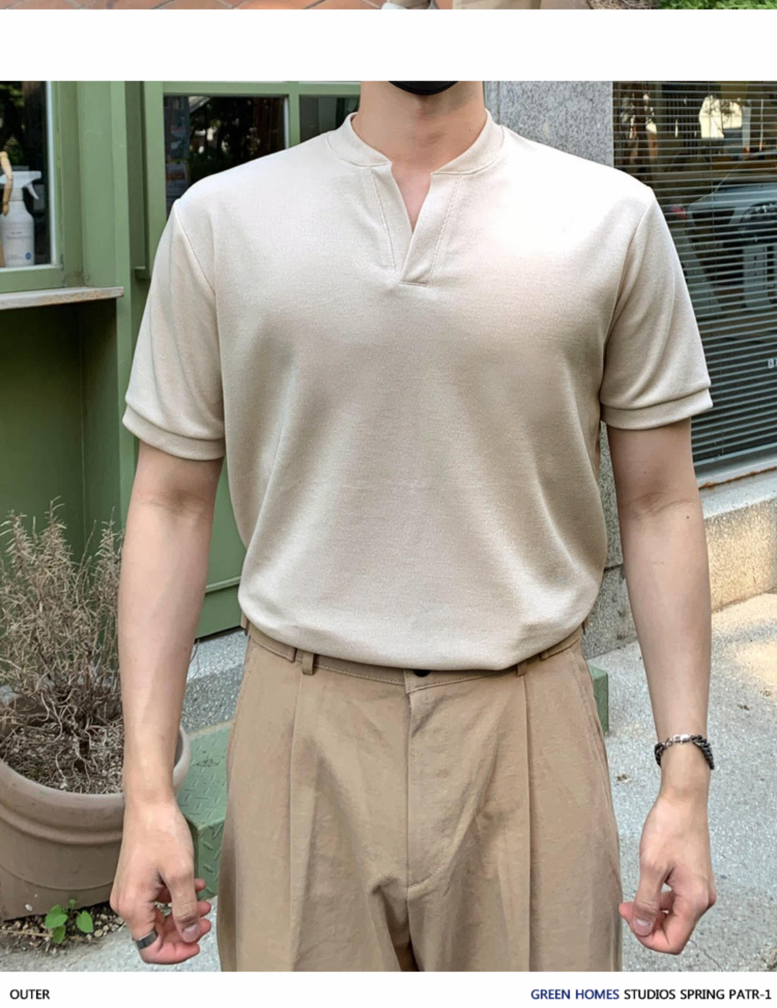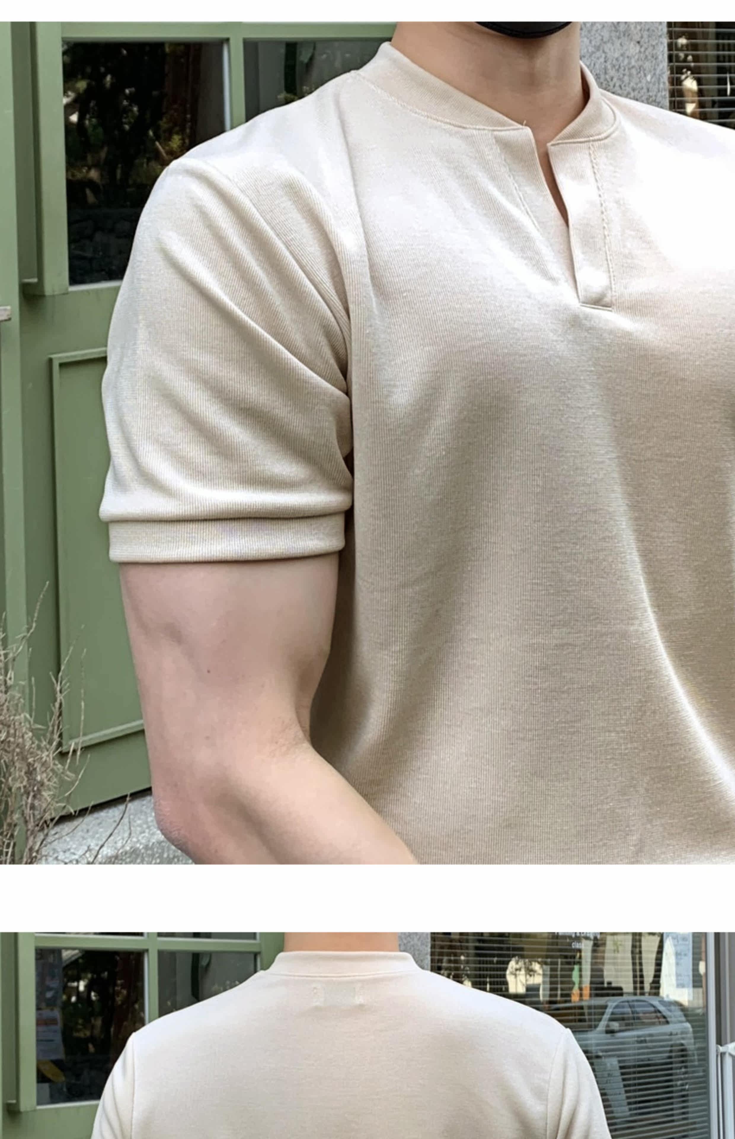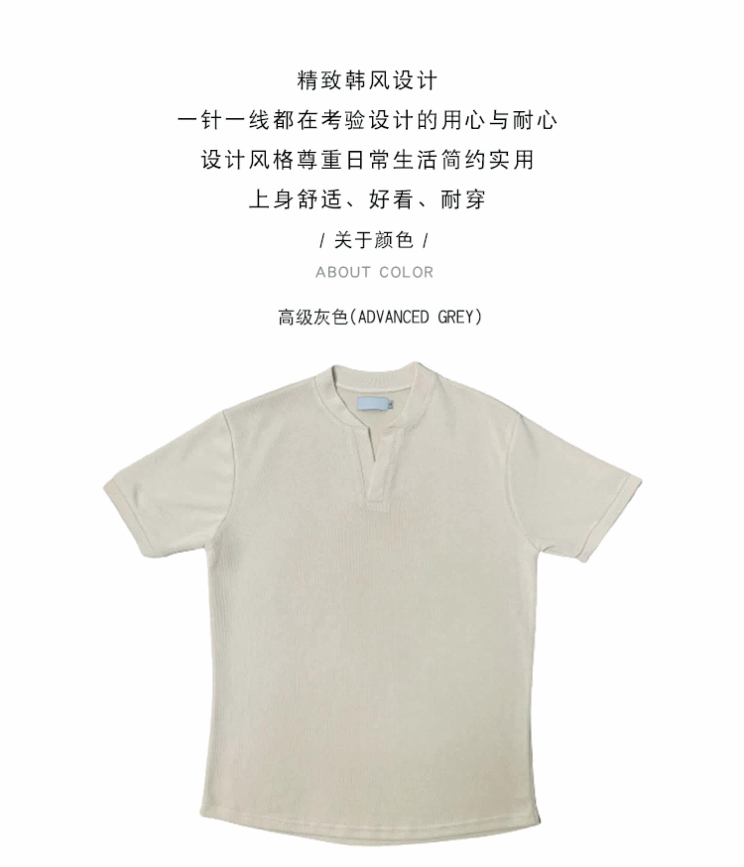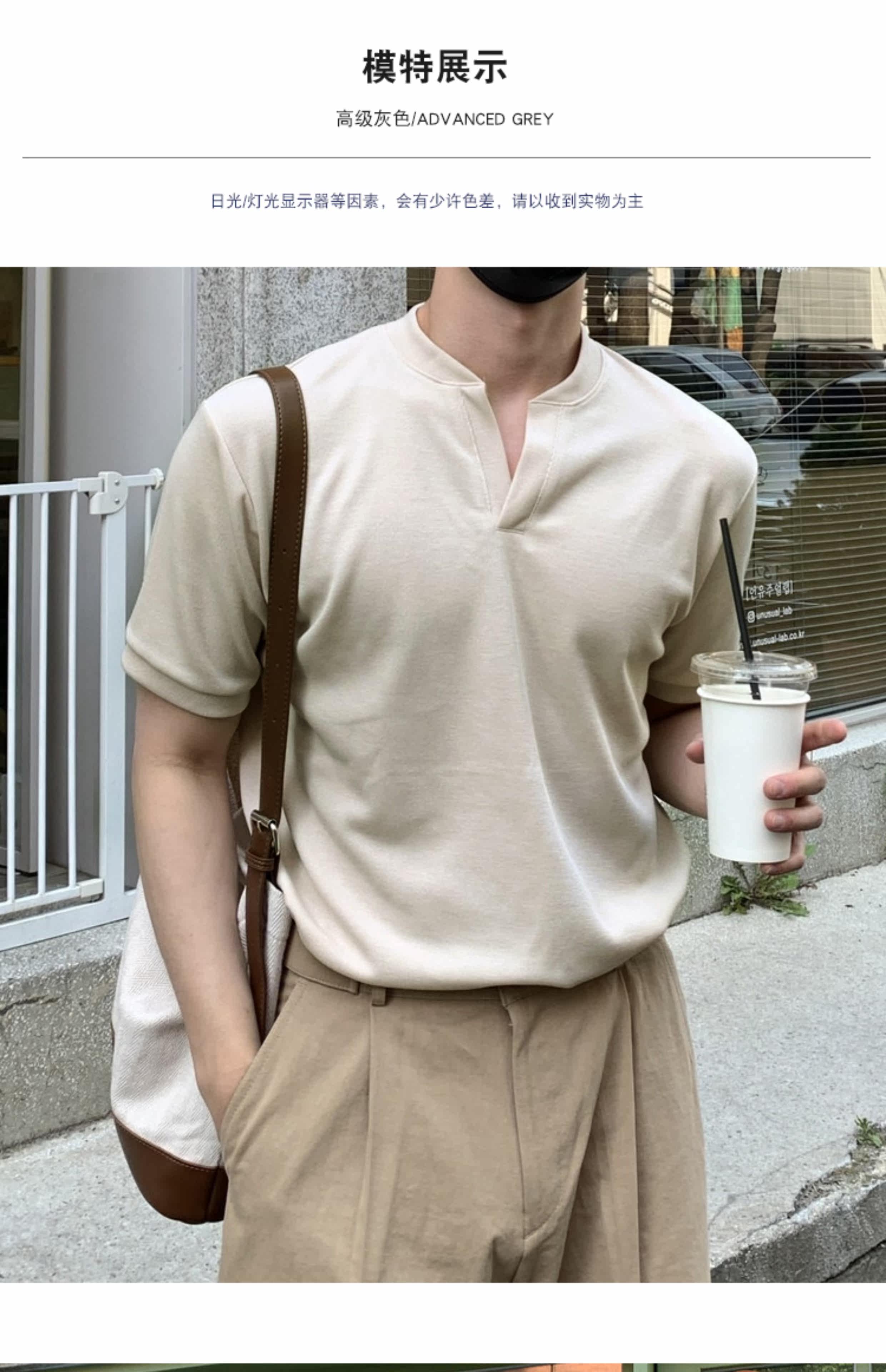 碧舍新款韩版针织衫V领纯棉夏季短袖上衣透气潮流简约半袖体恤男