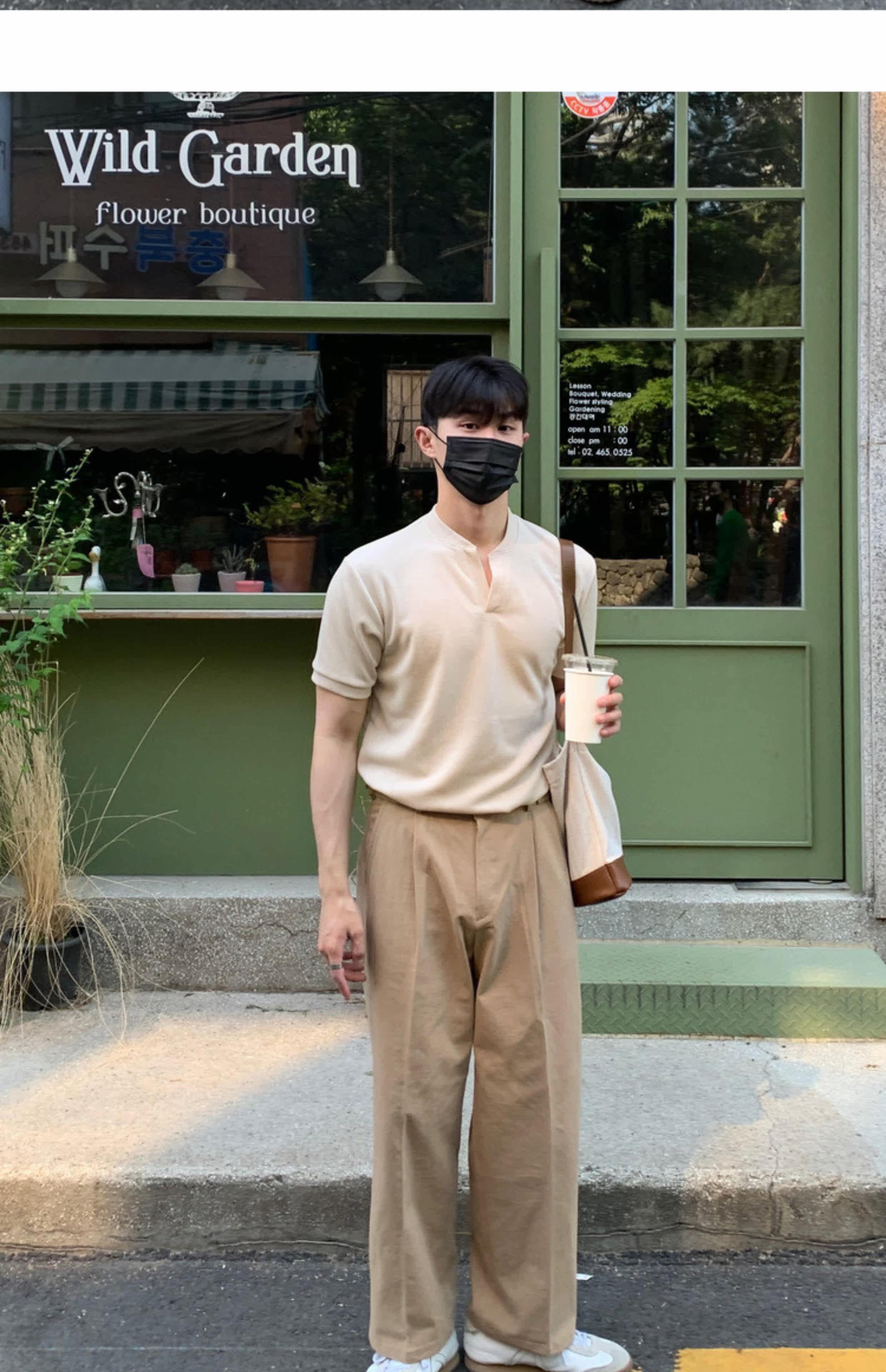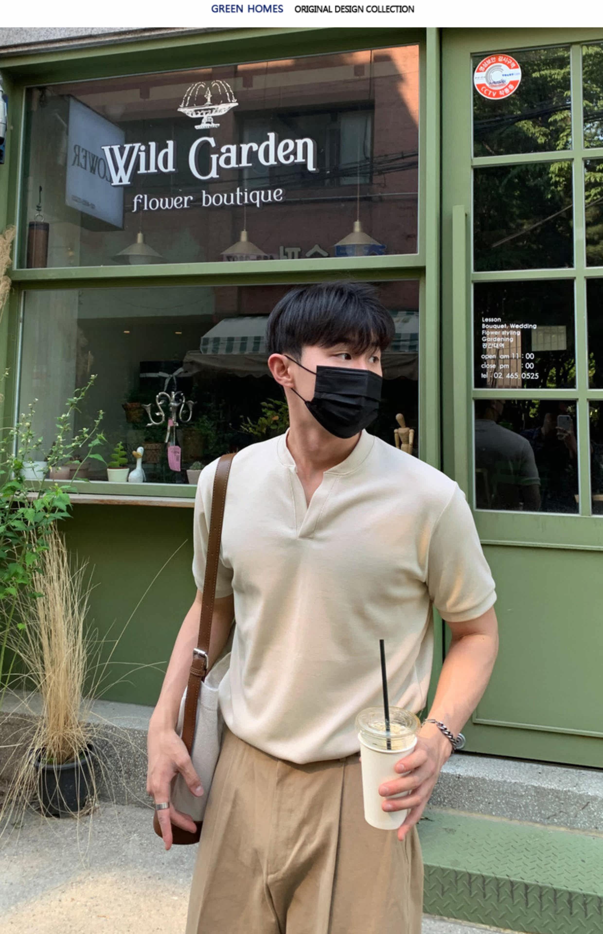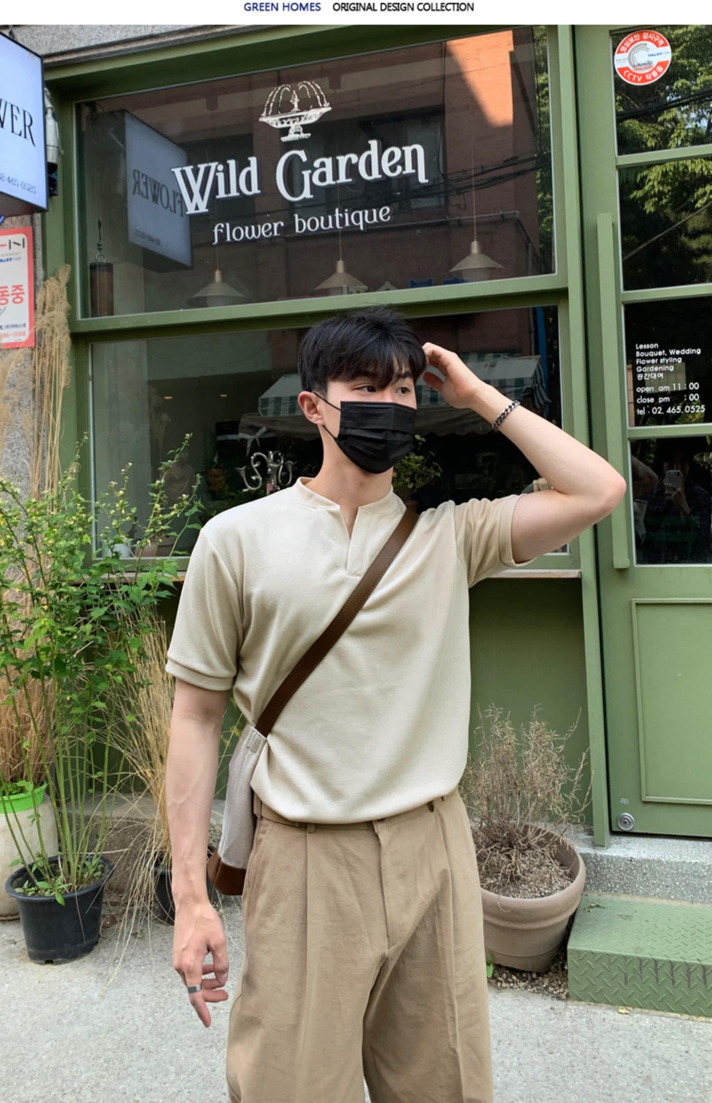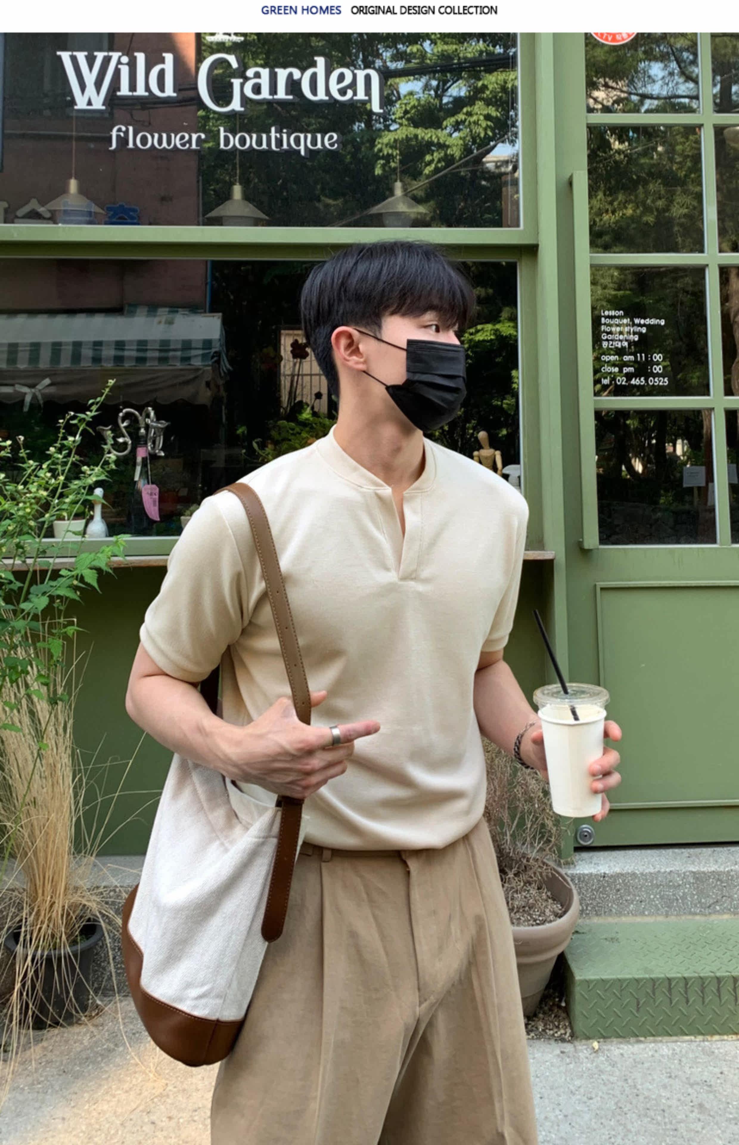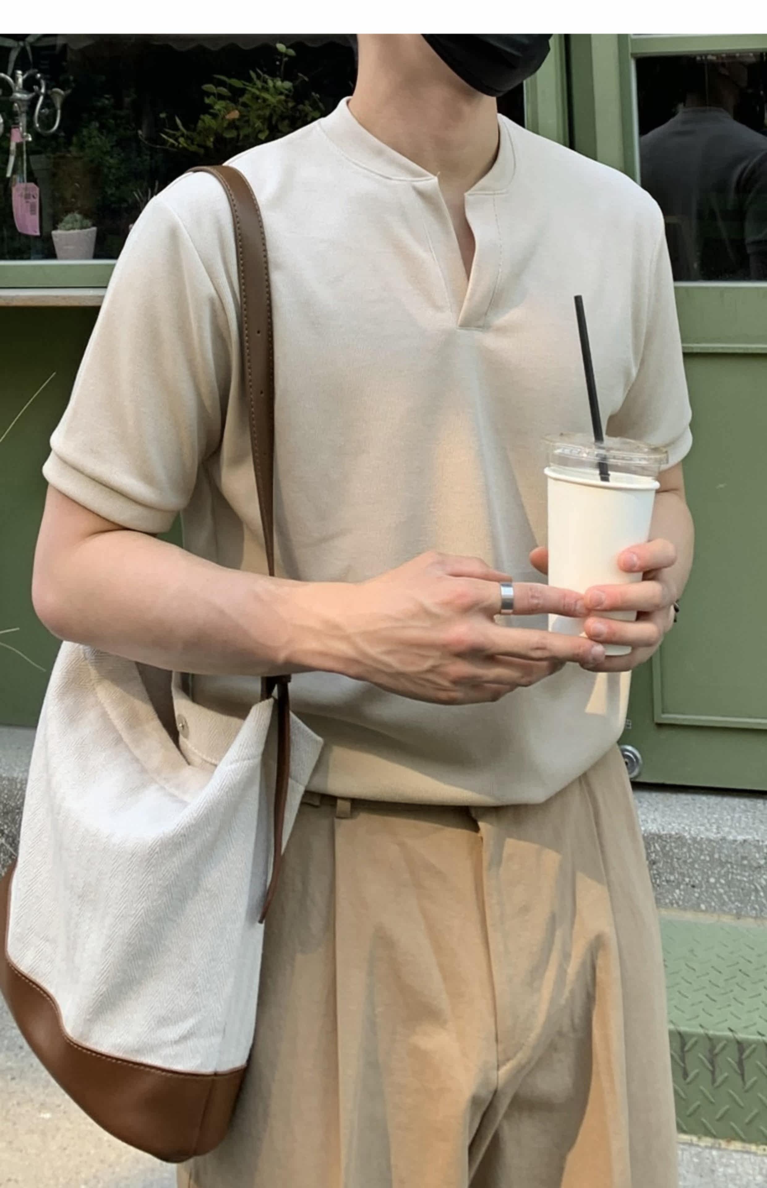碧舍新款韩版针织衫V领纯棉夏季短袖上衣透气潮流简约半袖体恤男