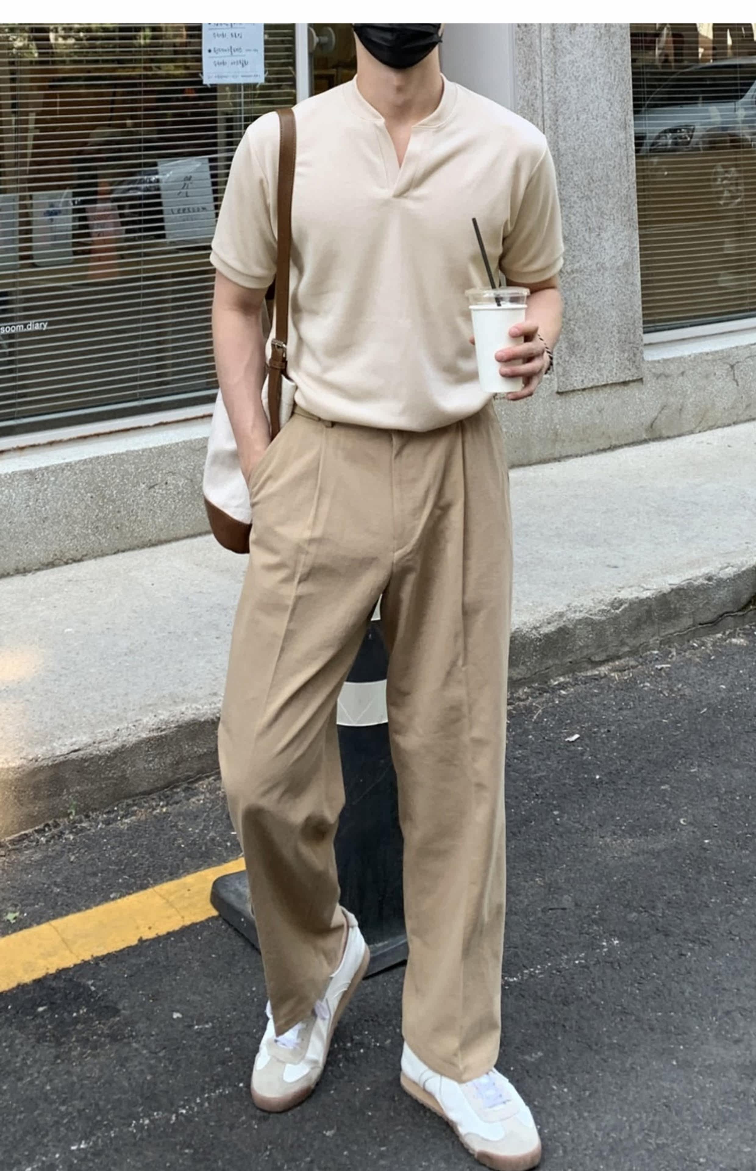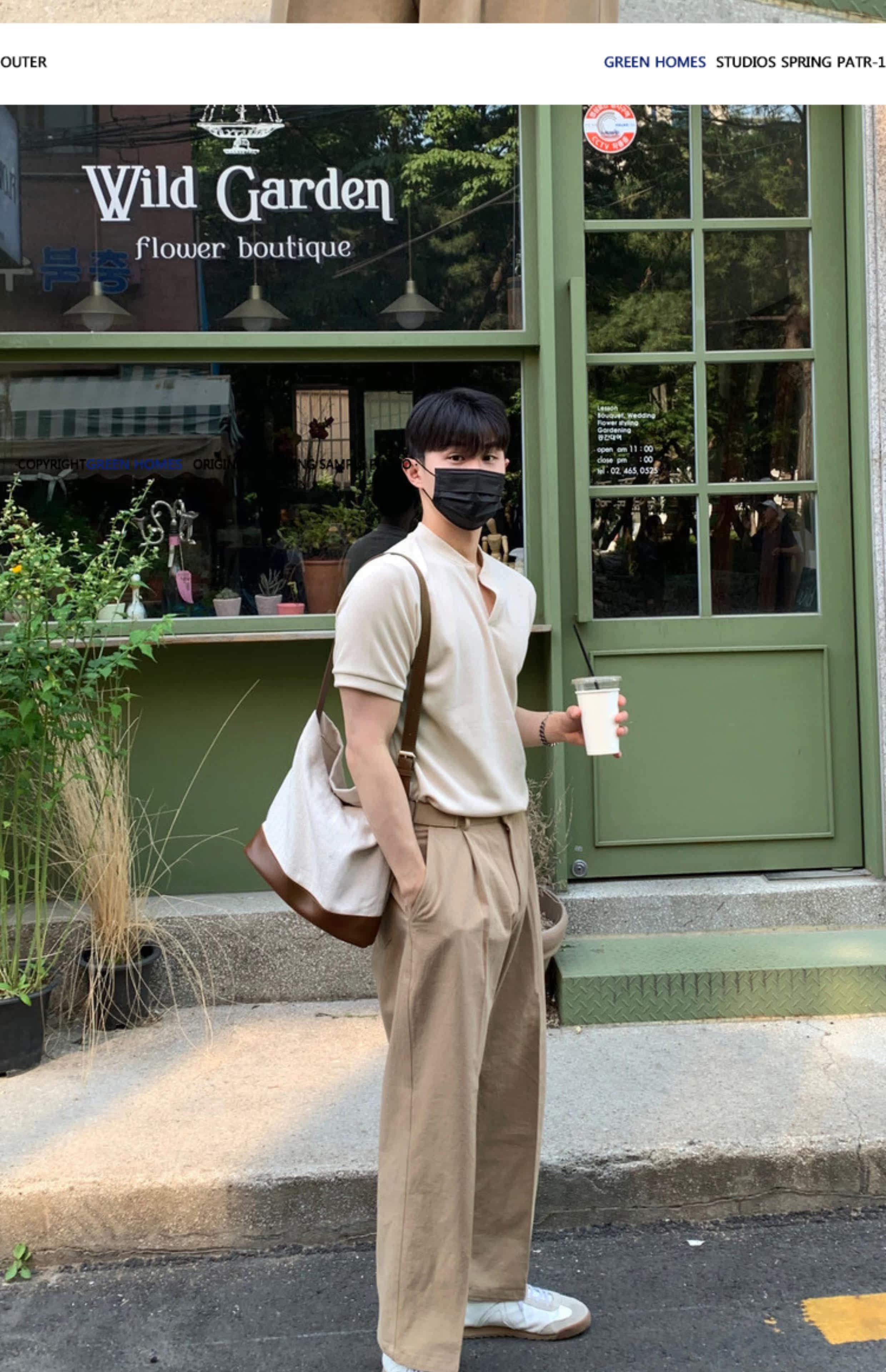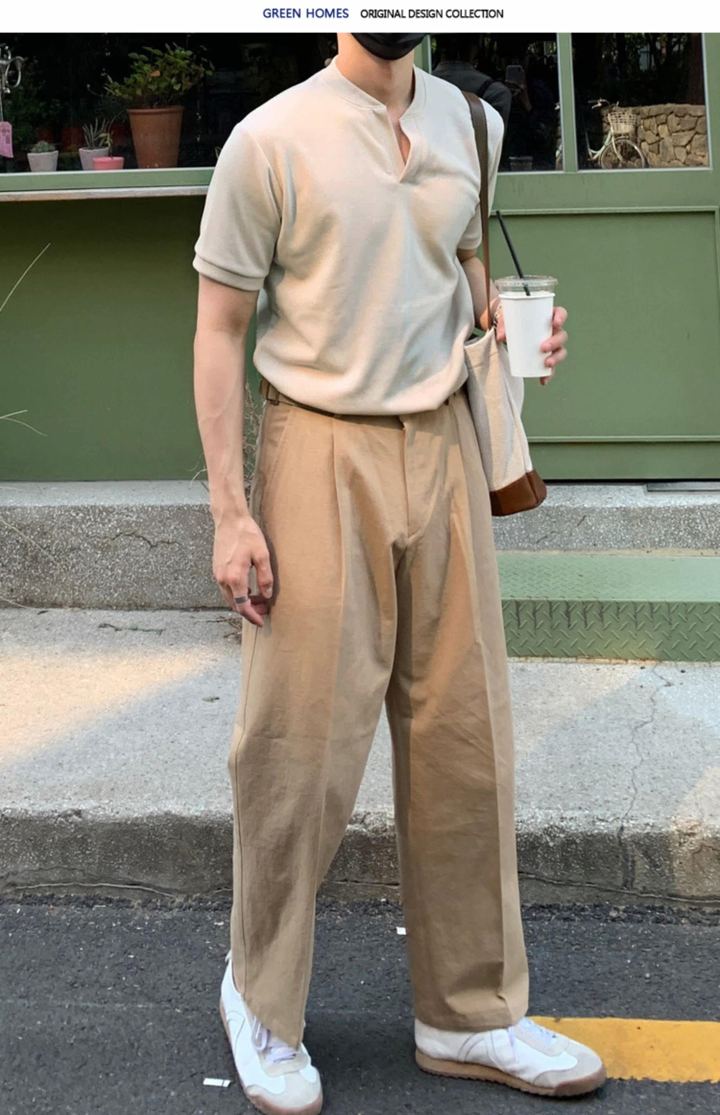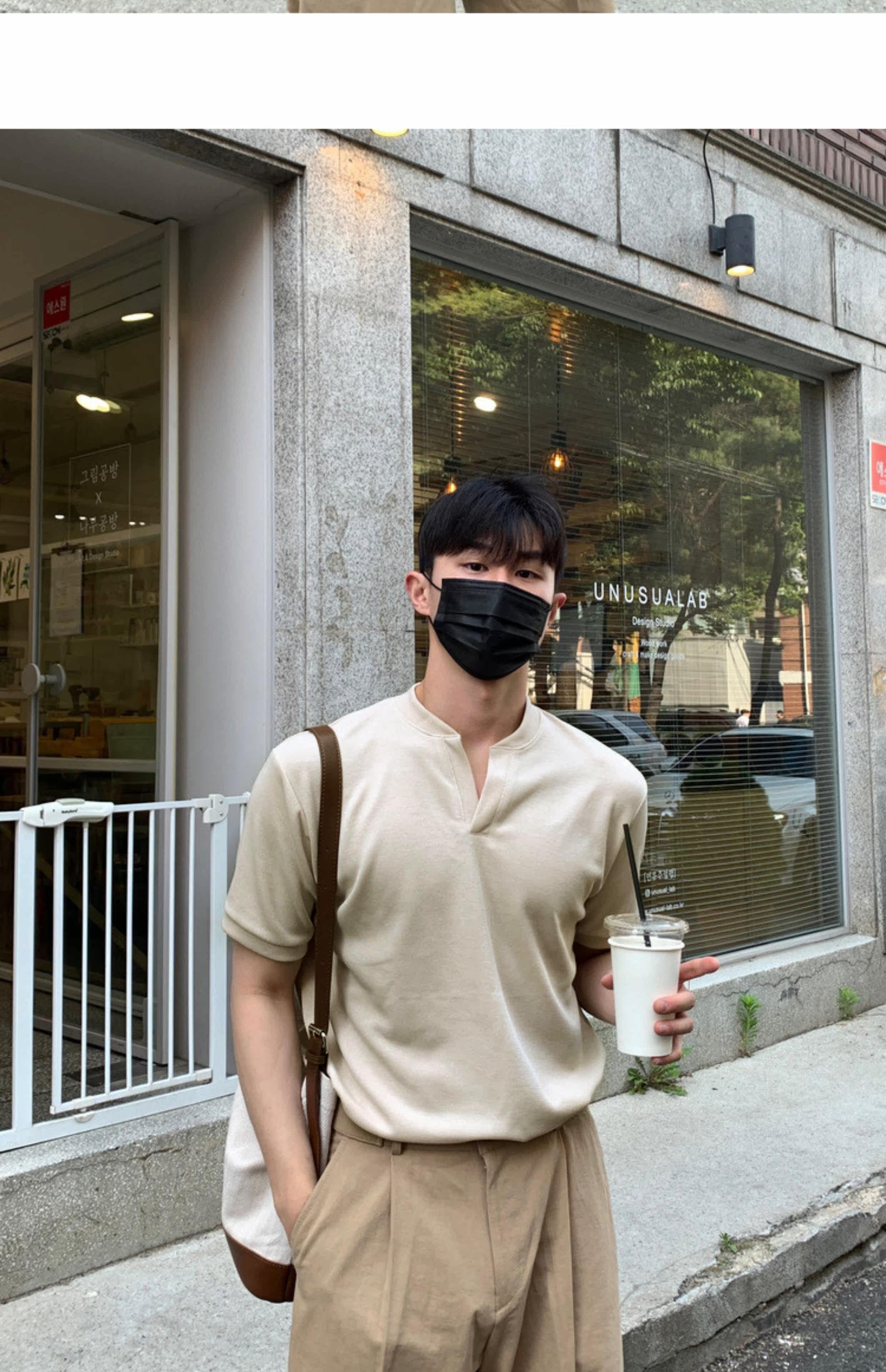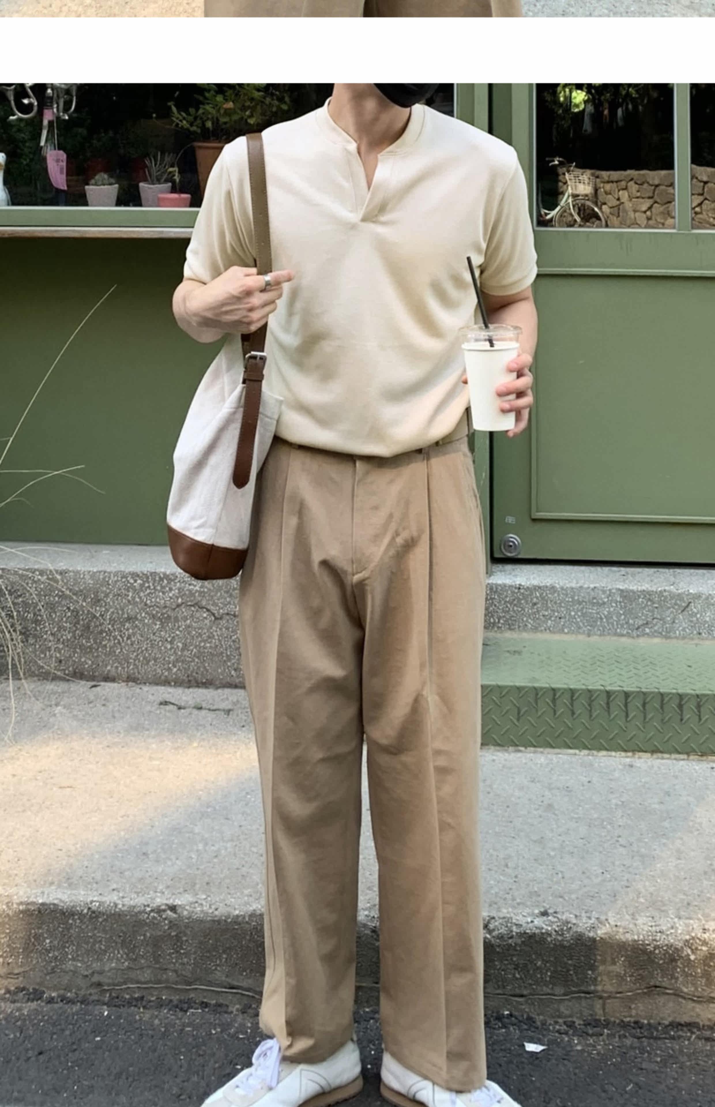 碧舍新款韩版针织衫V领纯棉夏季短袖上衣透气潮流简约半袖体恤男