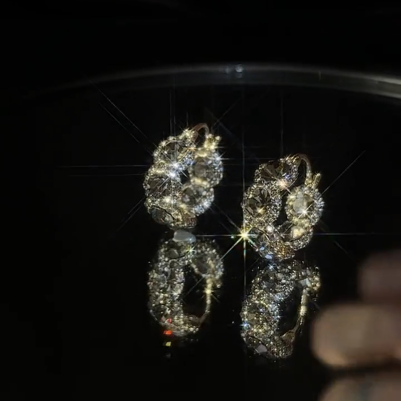 复古轻奢黑钻耳扣热卖款百搭精致满钻耳环小众设计气质高级感耳饰