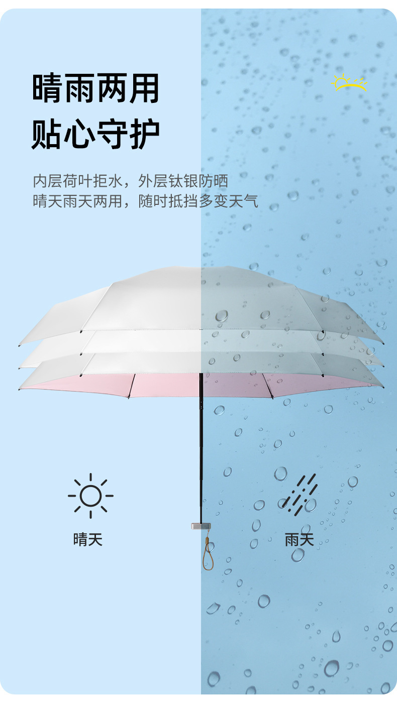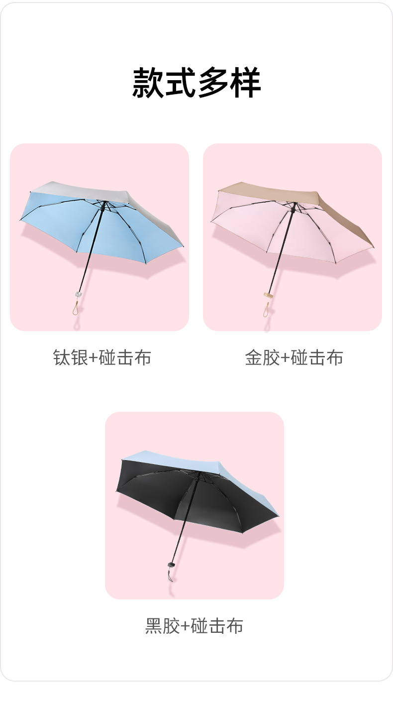 14cm小金伞扁六折太阳伞女防晒遮阳伞金胶晴雨伞太阳伞折叠伞批发