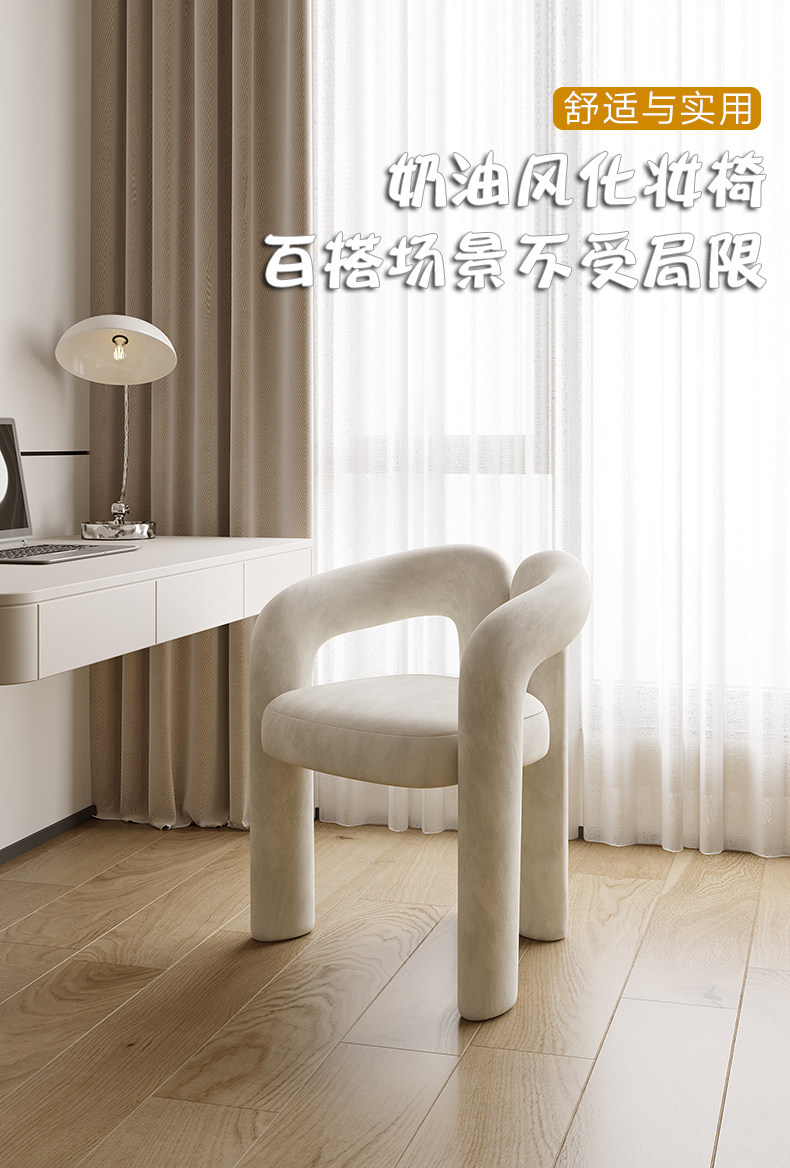 网红化妆椅子靠背设计师卧室奶油风梳妆台凳简约女生轻奢高级家用