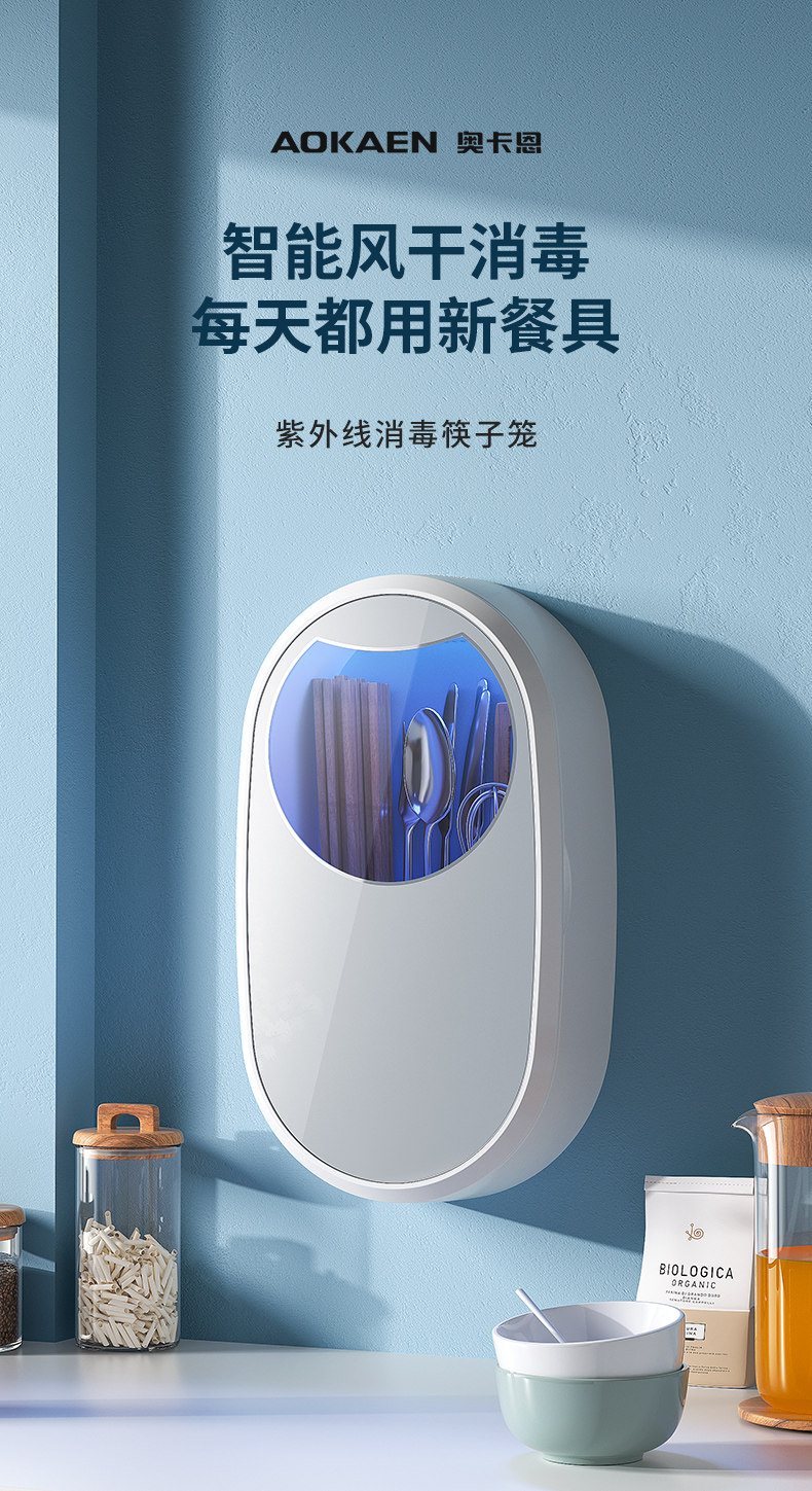 奥卡恩筷子消毒机厨房家用小型智能紫外线充电式消毒壁挂式快子筒
