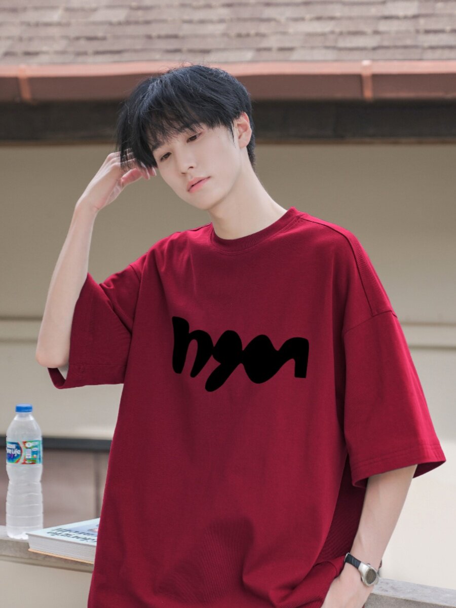 日系酒红色男生t恤短袖纯棉夏季少年感穿搭美式复古重磅情侣半袖