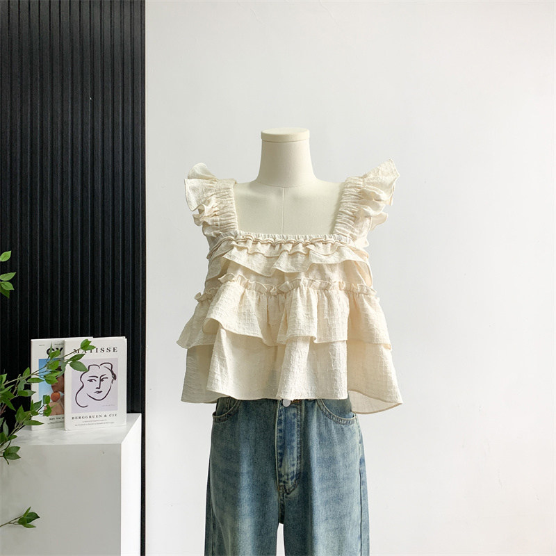 朵来美短款无袖木耳边吊带女2023年新款夏季独特别致上衣外穿背心