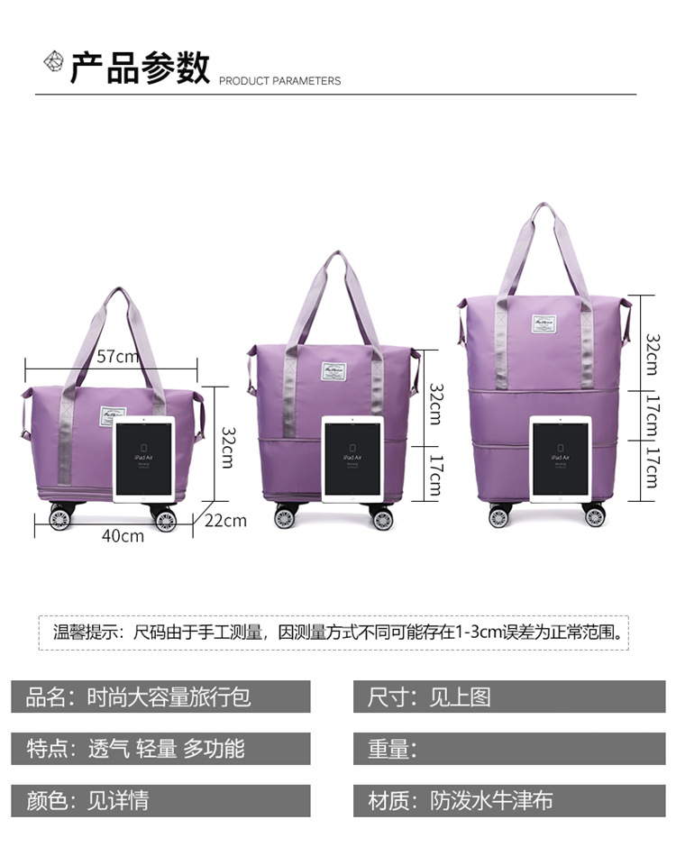新款带轮旅行包收纳大容量干湿分离扩展双层行李手提包超大待产包
