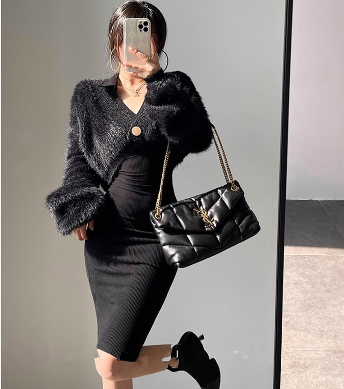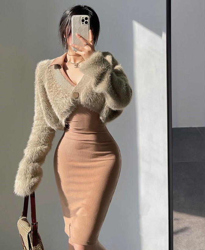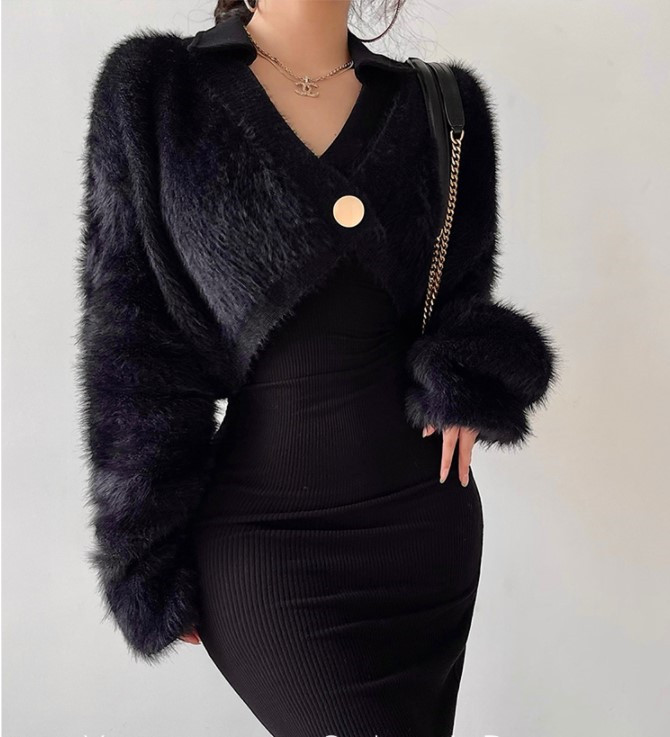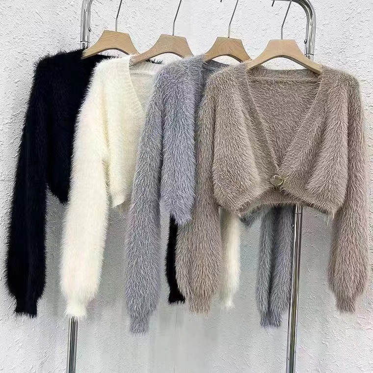 秋季新款韩版V领宽松女显瘦针织衫港风水貂毛百搭毛衣开衫
