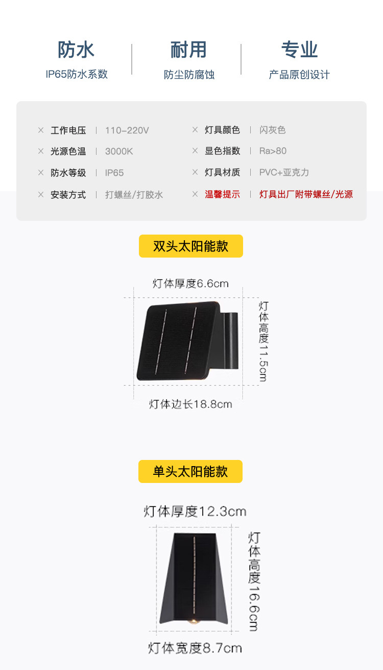 太阳能壁灯户外防水现代简约别墅花园阳台灯室外墙壁灯庭院洗墙灯