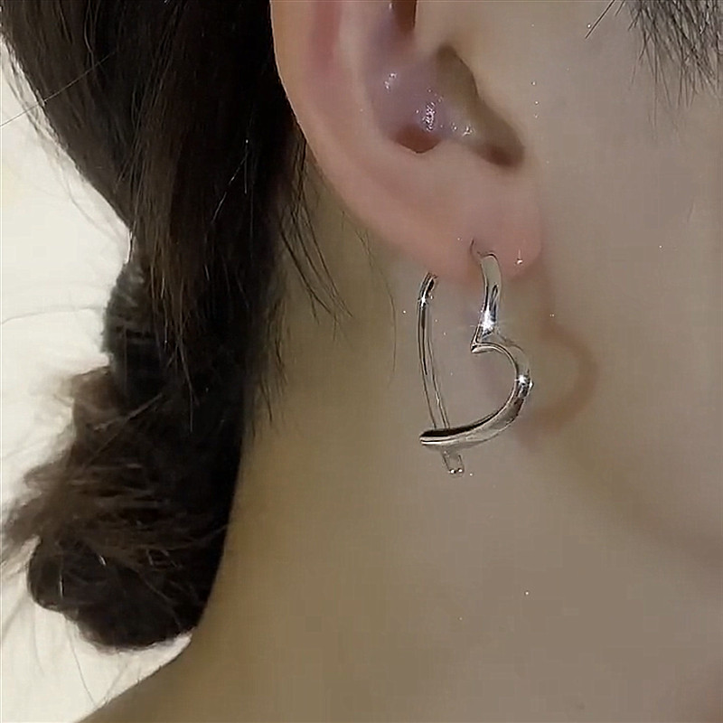 小众设计高级感交叉金属爱心耳环女纯银耳钉2023年新款潮时尚耳饰