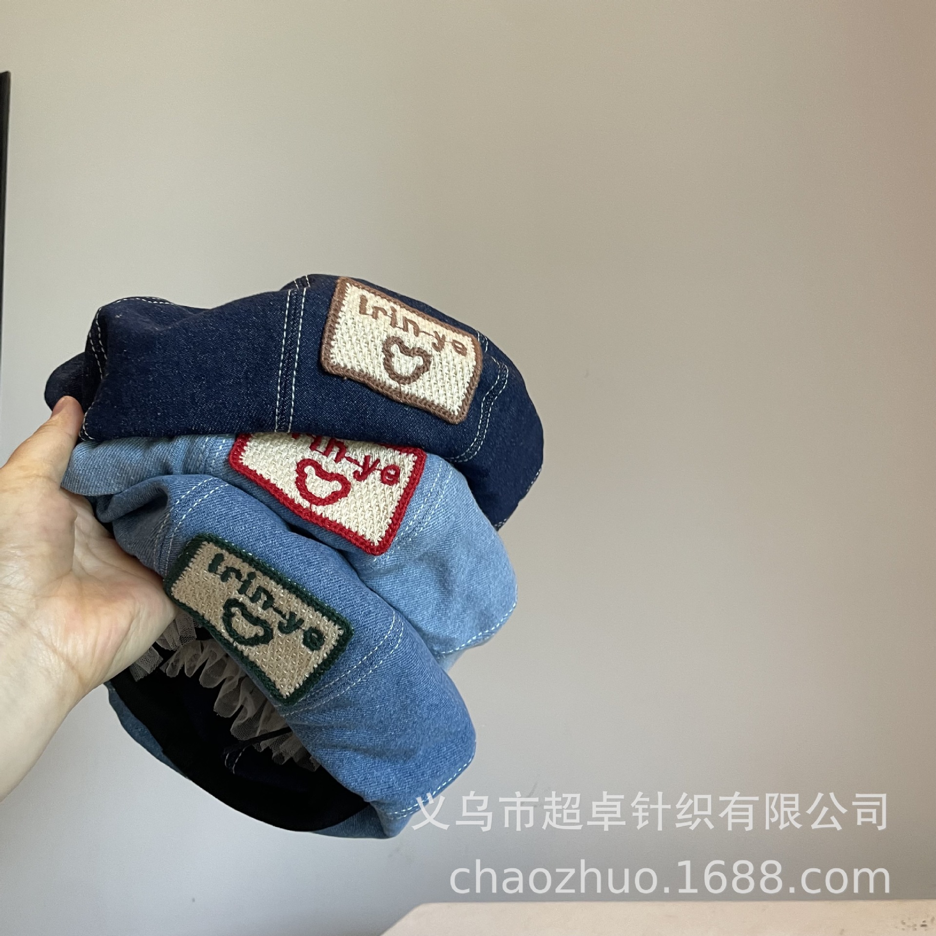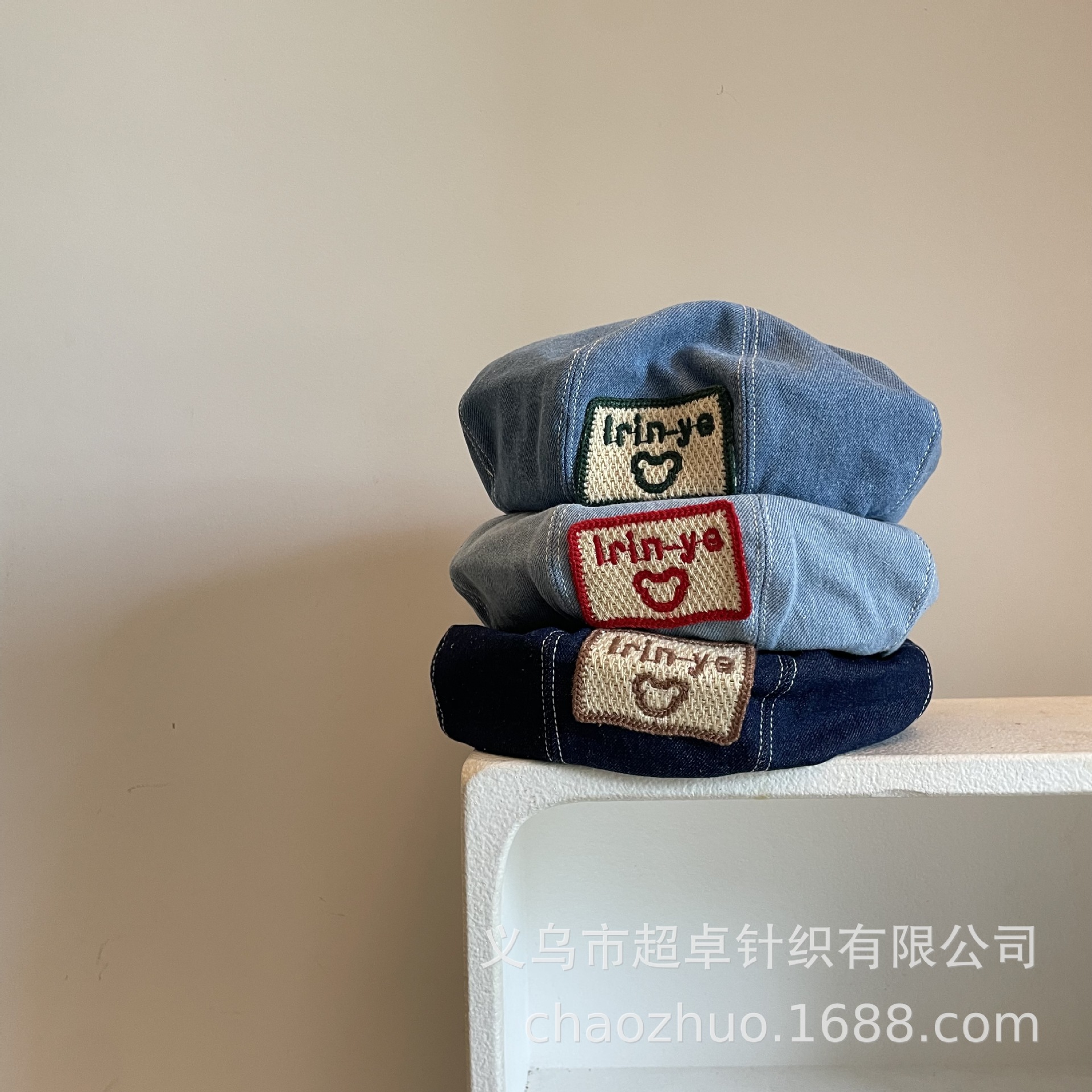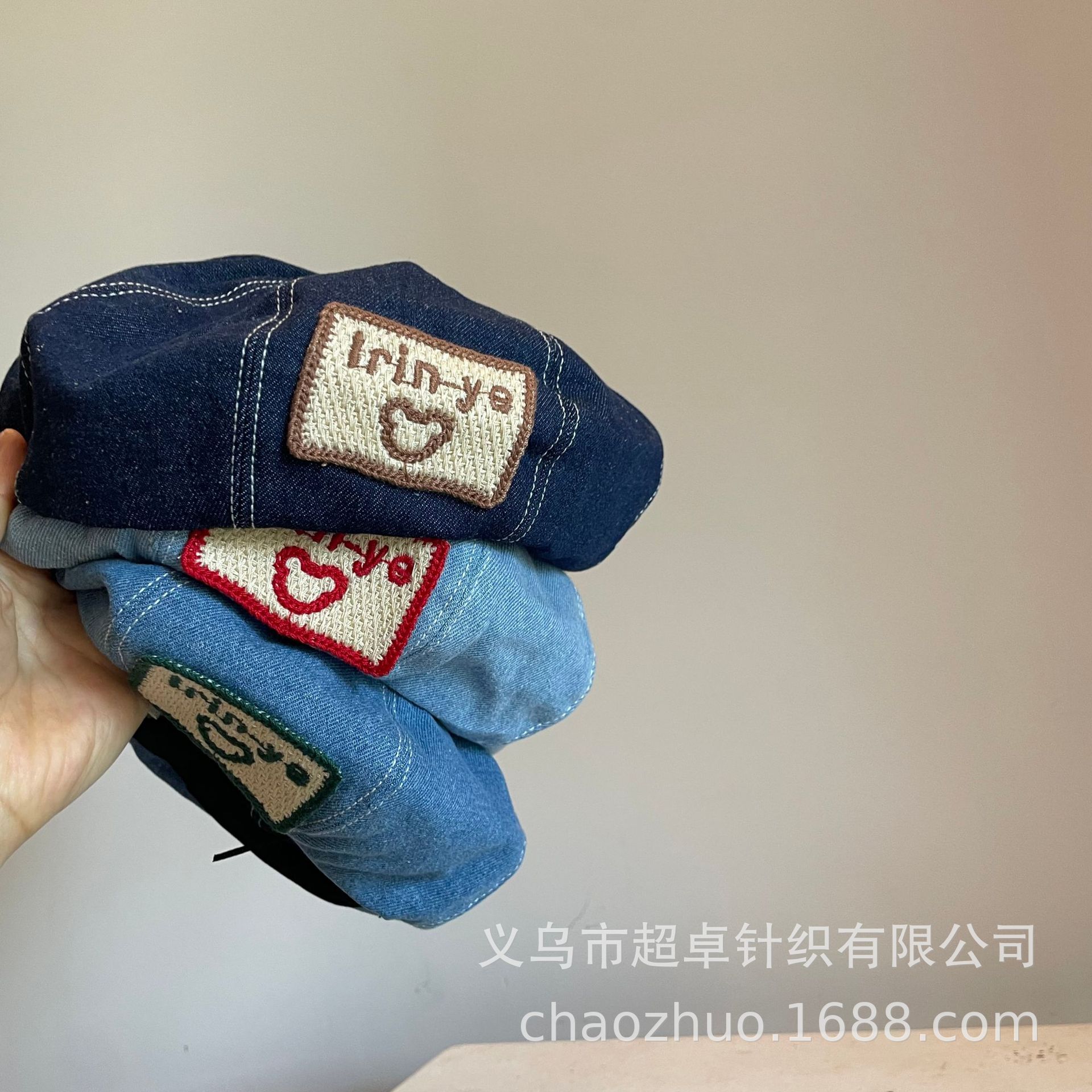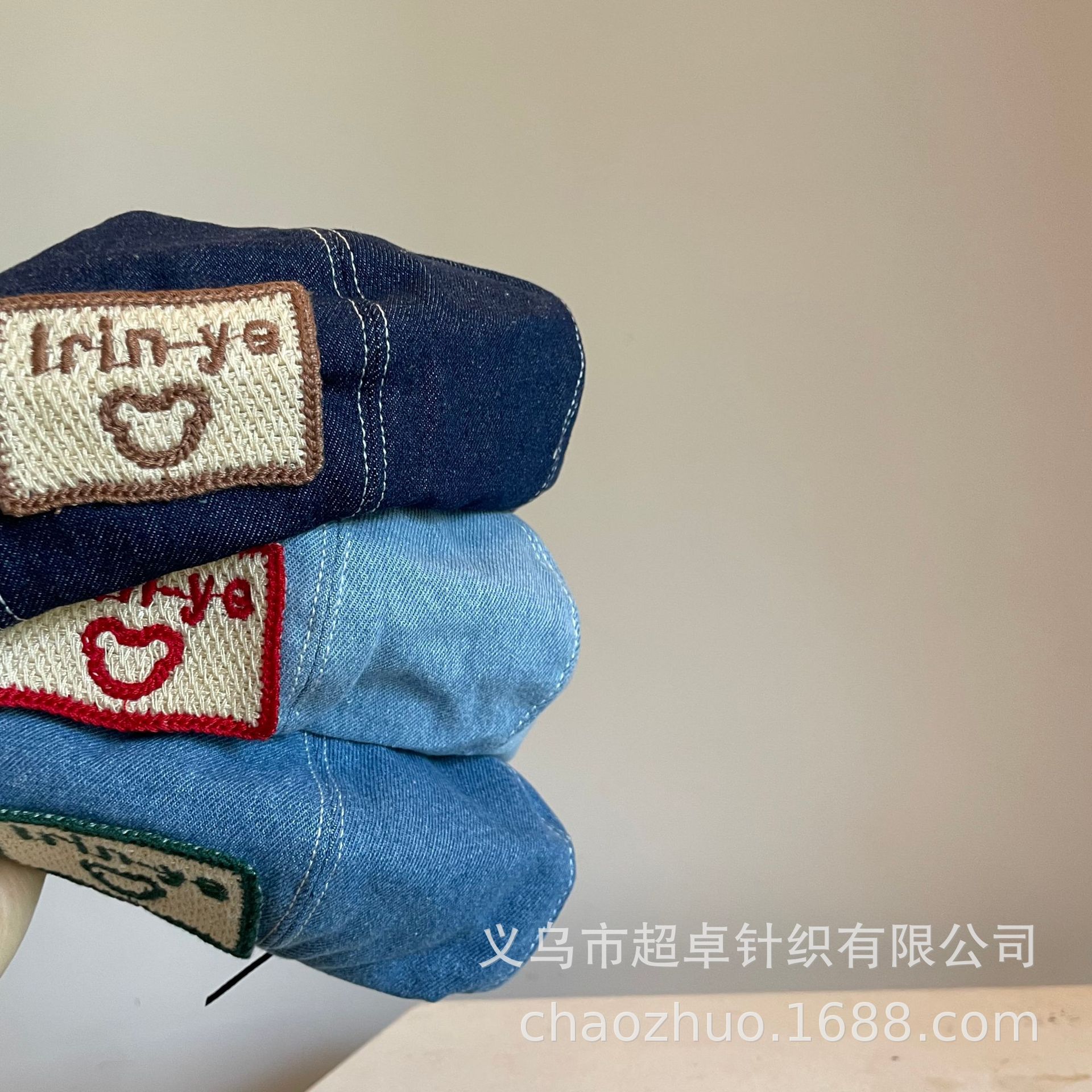 日系秋冬款儿童成人女士刺绣大方标贝雷帽牛仔帽子