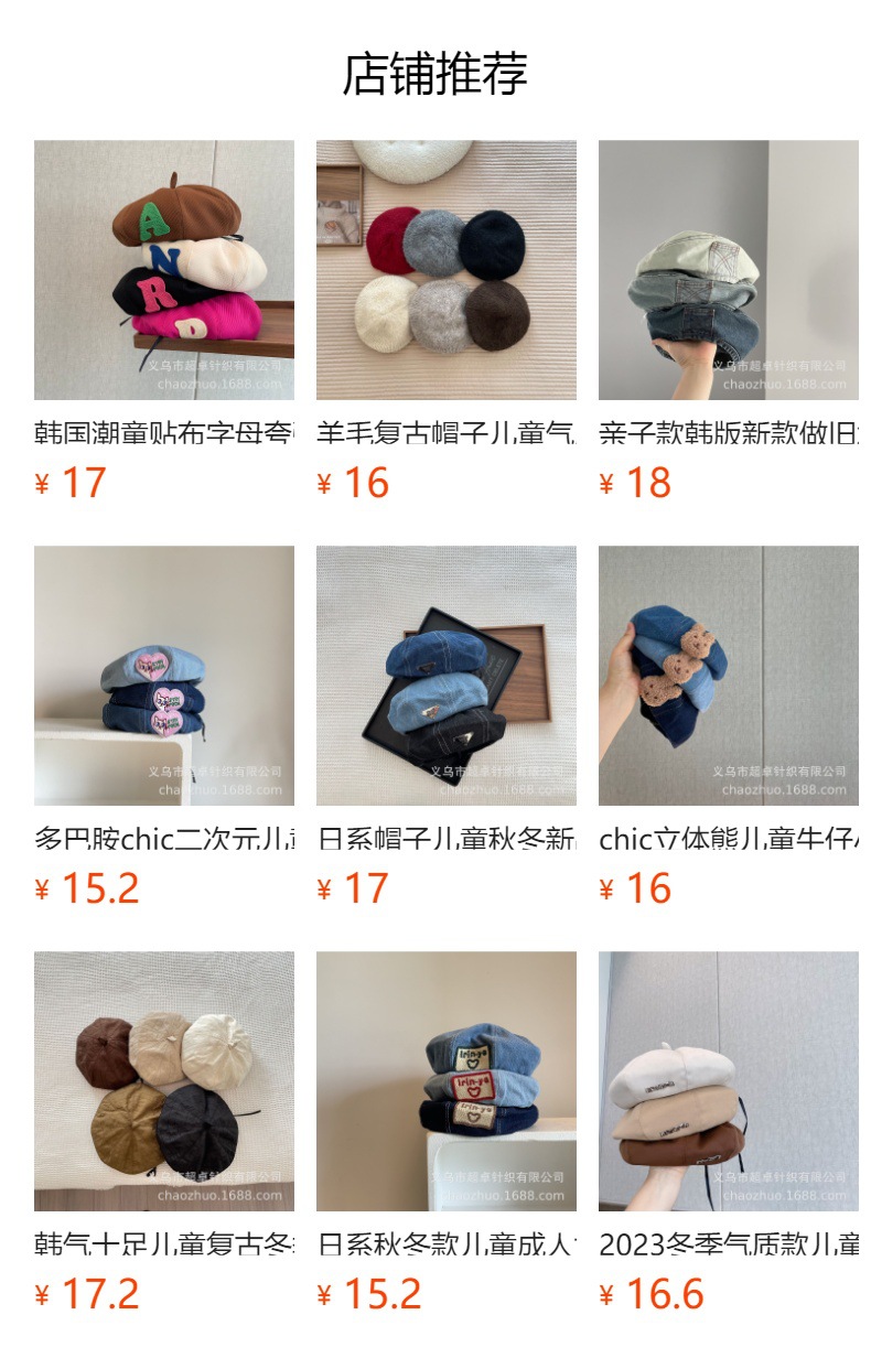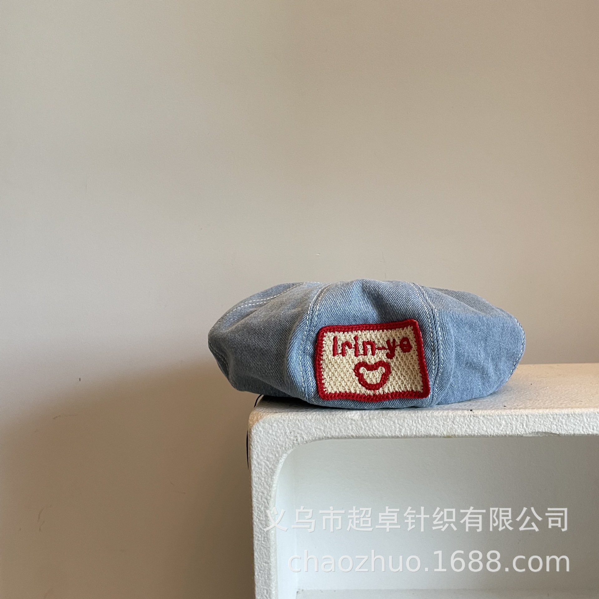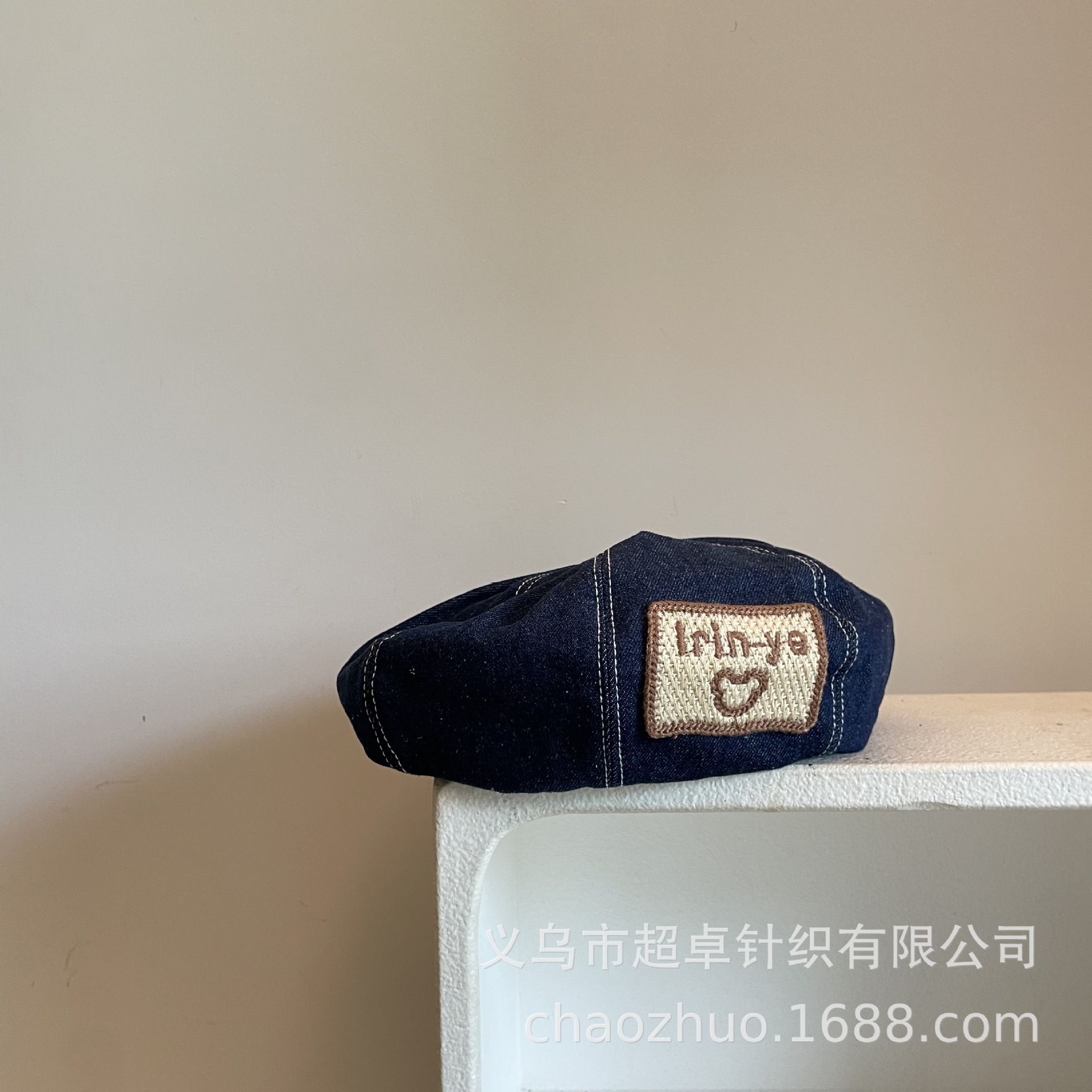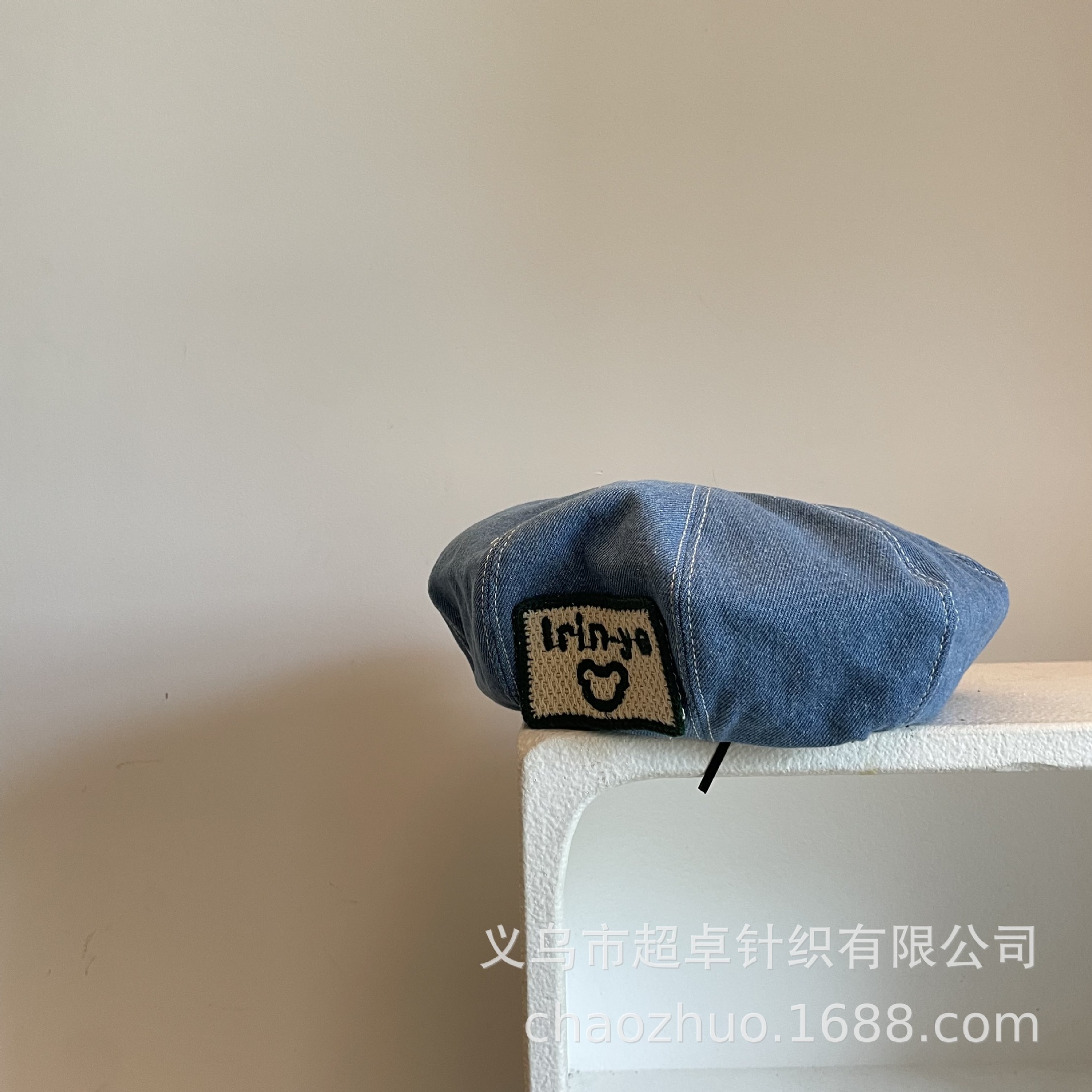 日系秋冬款儿童成人女士刺绣大方标贝雷帽牛仔帽子