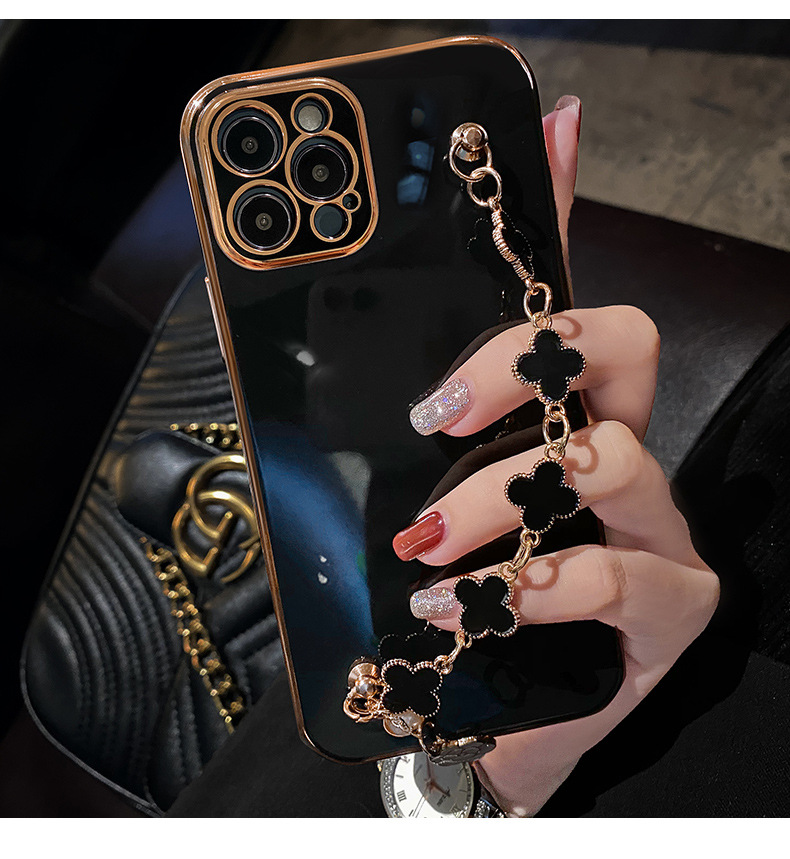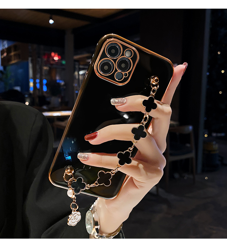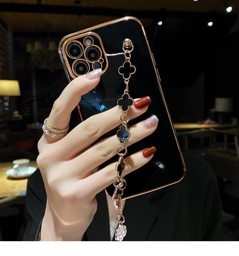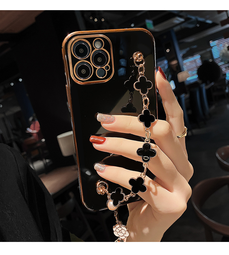 适用iphone14Promax手机壳时尚四叶草手链13苹果14保护套12XS创意