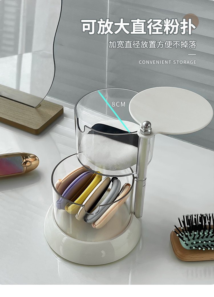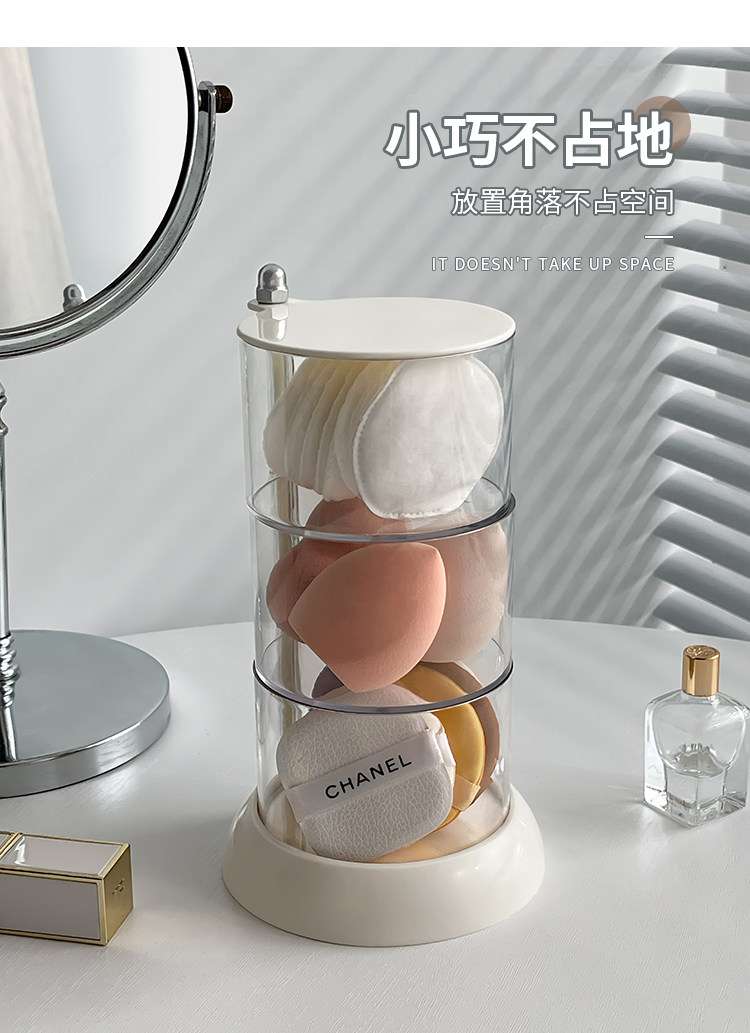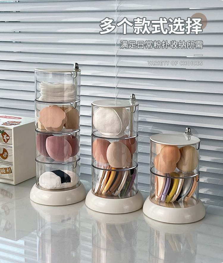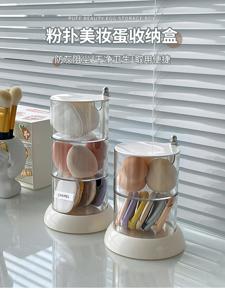 粉扑收纳盒旋转防尘散粉扑蜜尔木萄桌面化妆棉美妆蛋置物架子透明