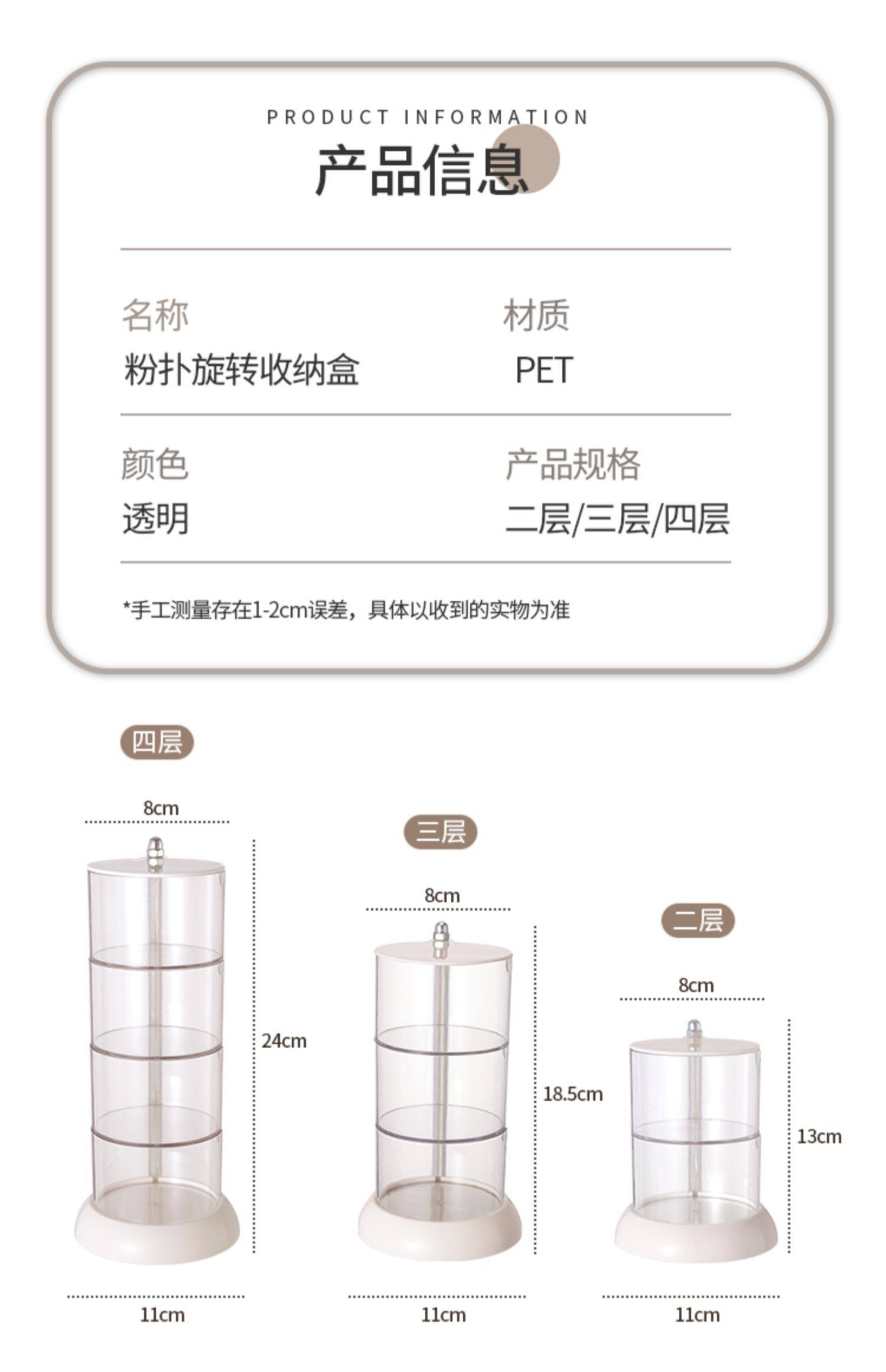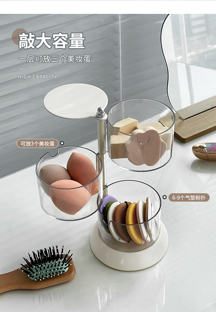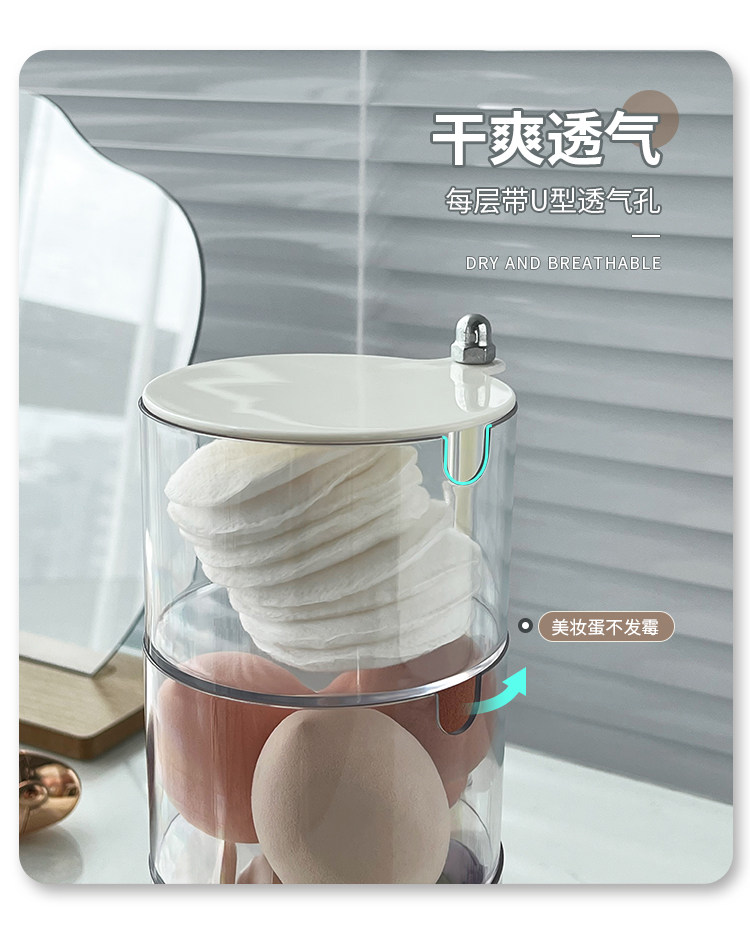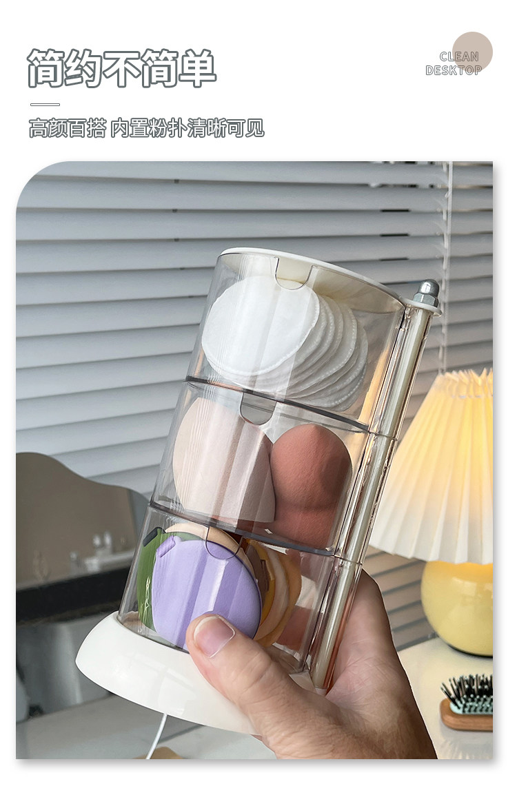 粉扑收纳盒旋转防尘散粉扑蜜尔木萄桌面化妆棉美妆蛋置物架子透明