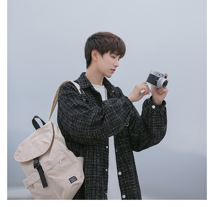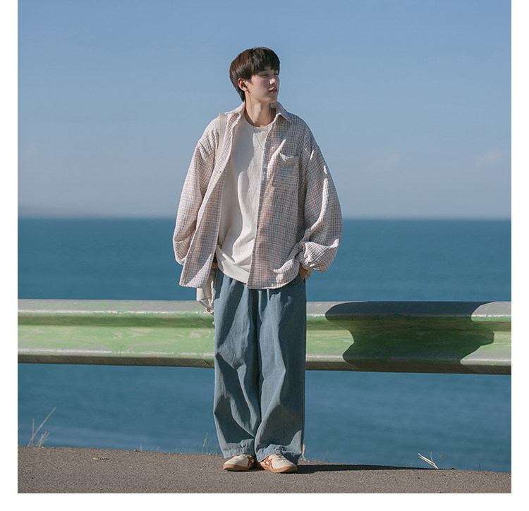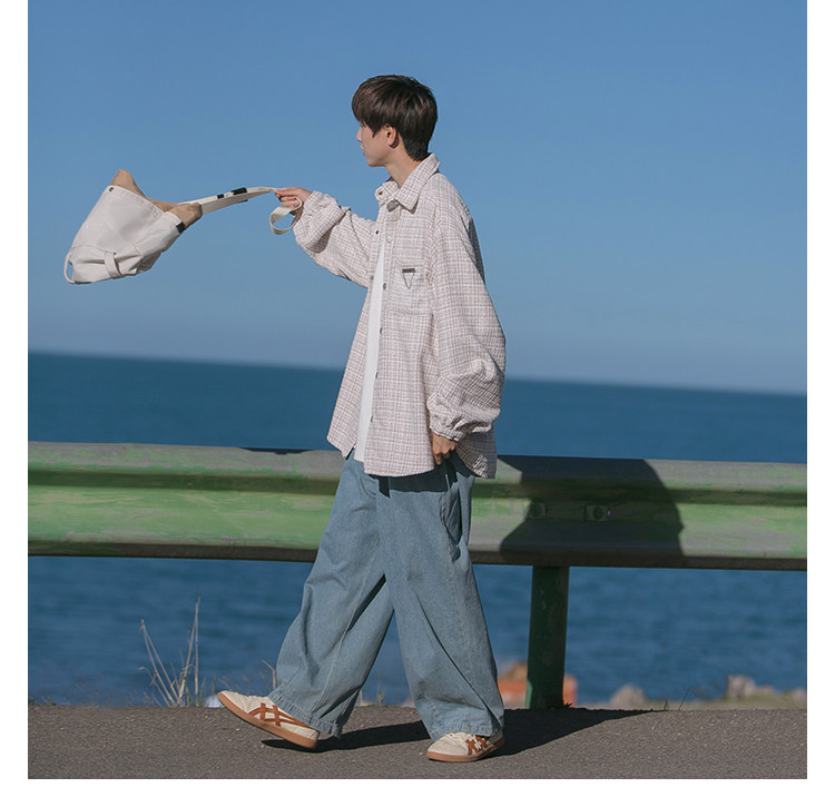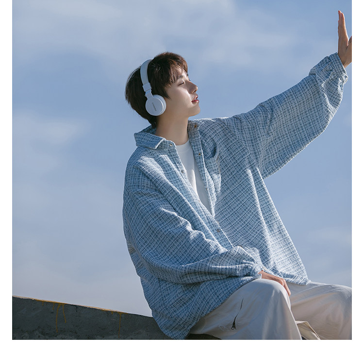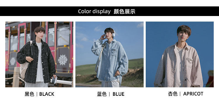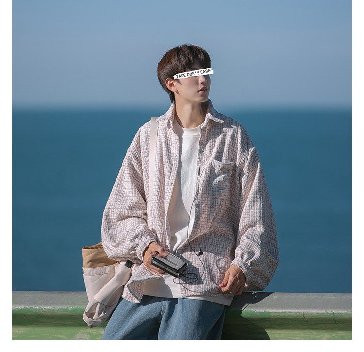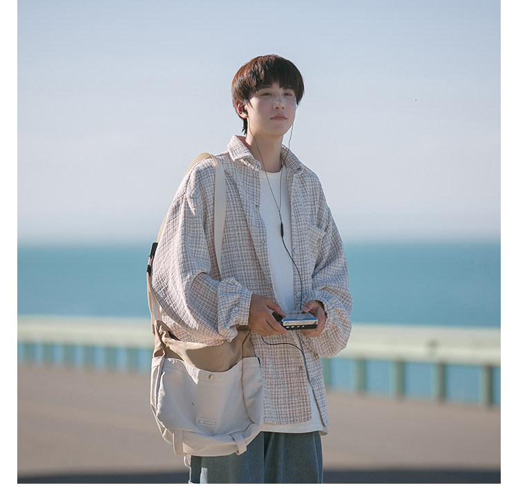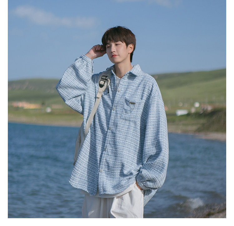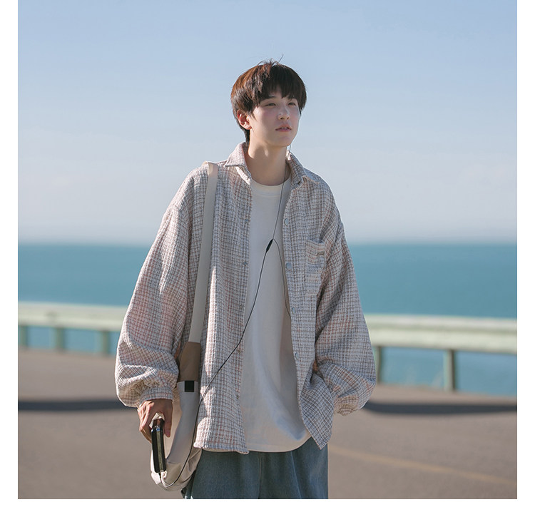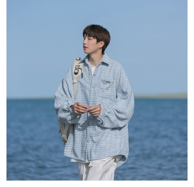 高级小香风衬衫男士春秋潮牌宽松青少年长袖衬衣美式复古痞帅外套