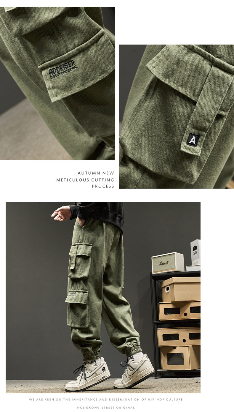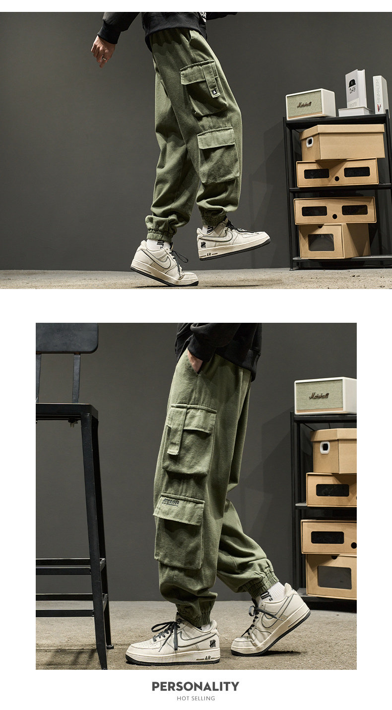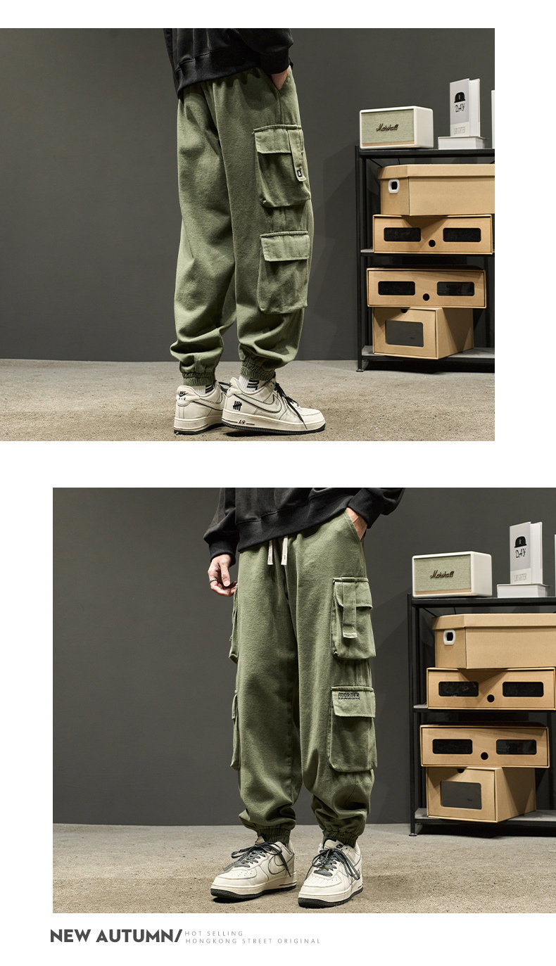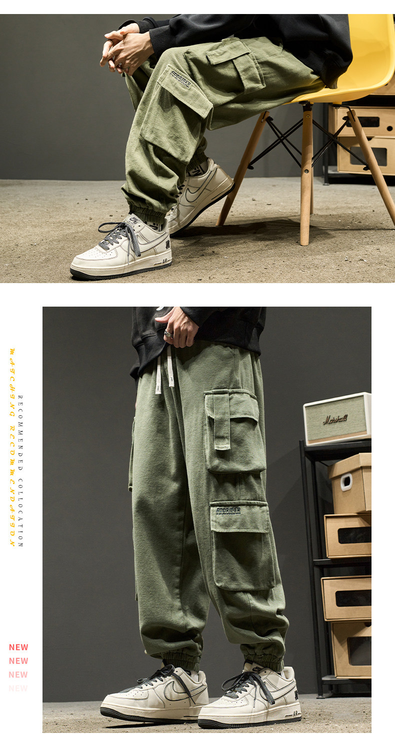 工装裤男美式潮牌宽松痞帅多口袋军绿色束脚裤秋季潮流复古伞兵裤