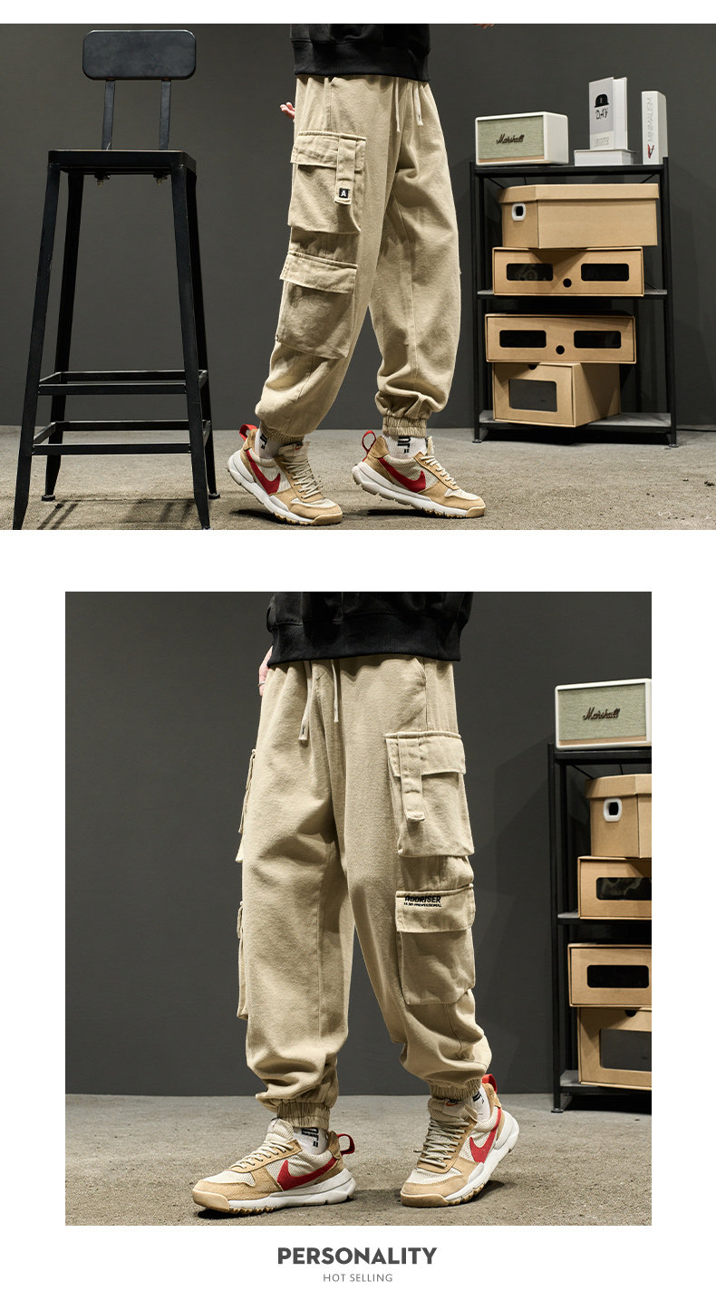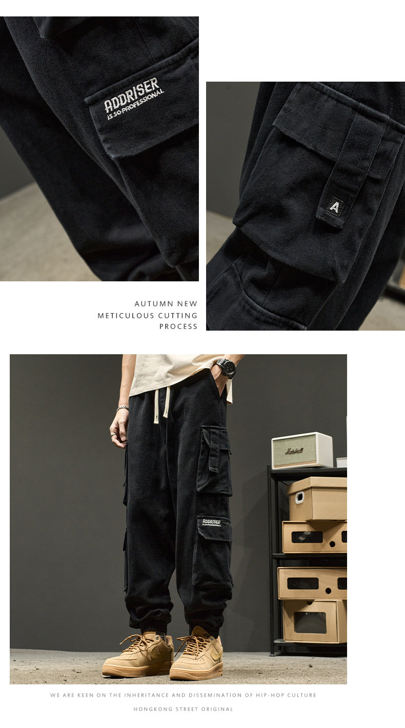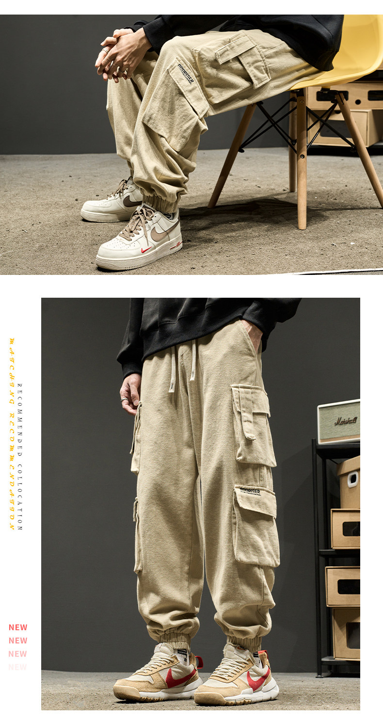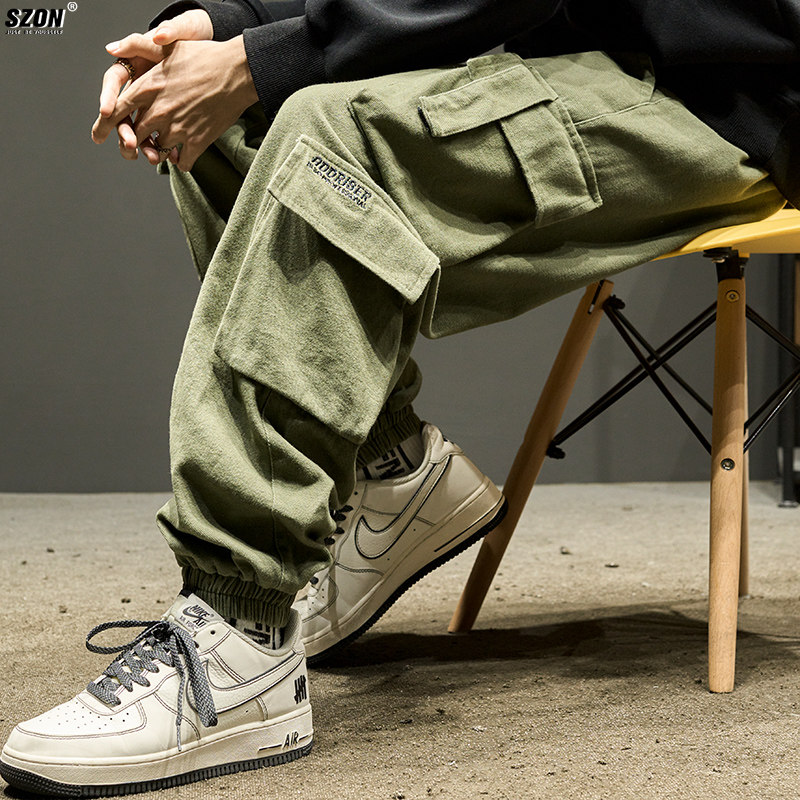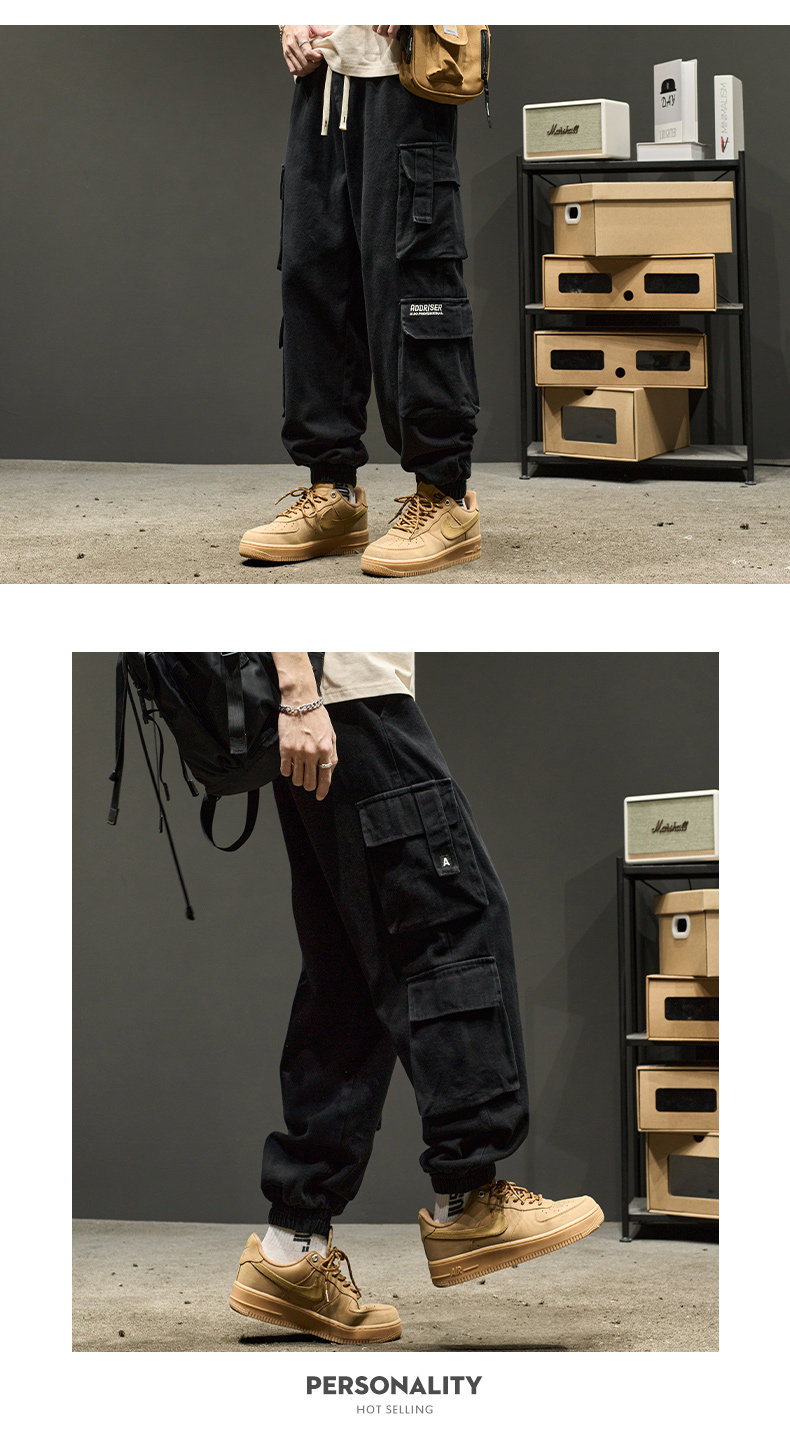 工装裤男美式潮牌宽松痞帅多口袋军绿色束脚裤秋季潮流复古伞兵裤