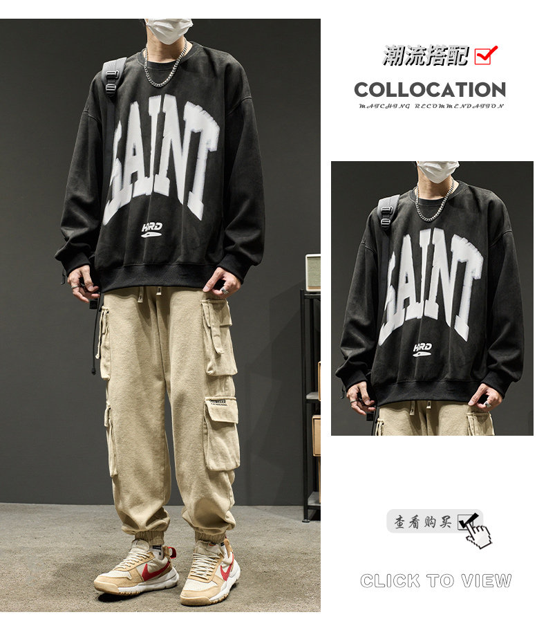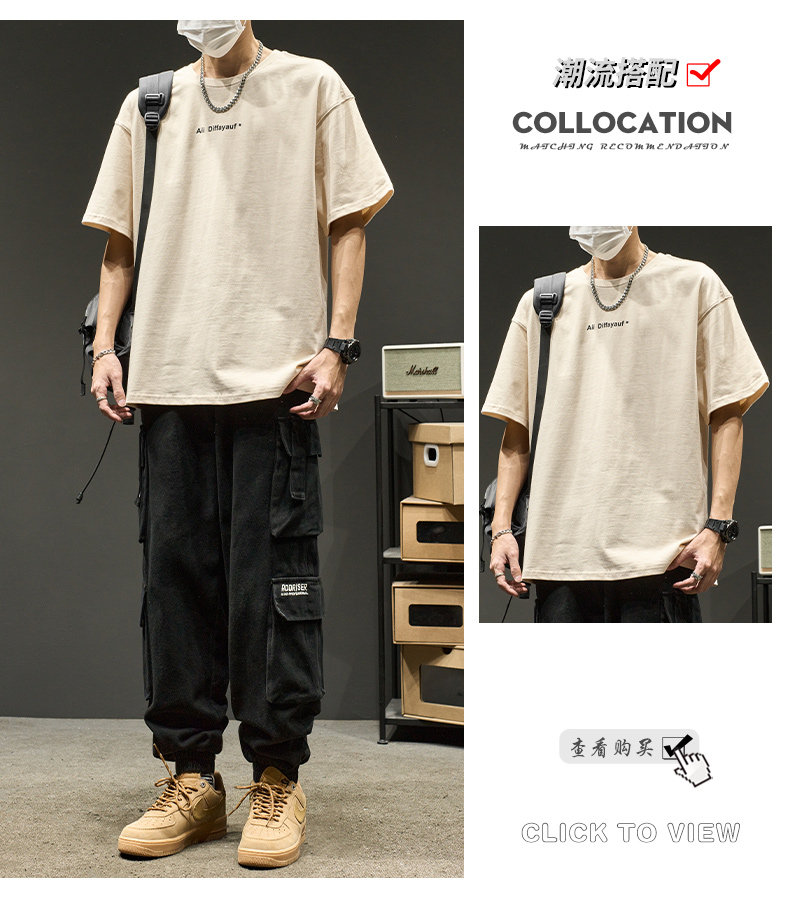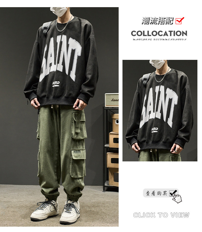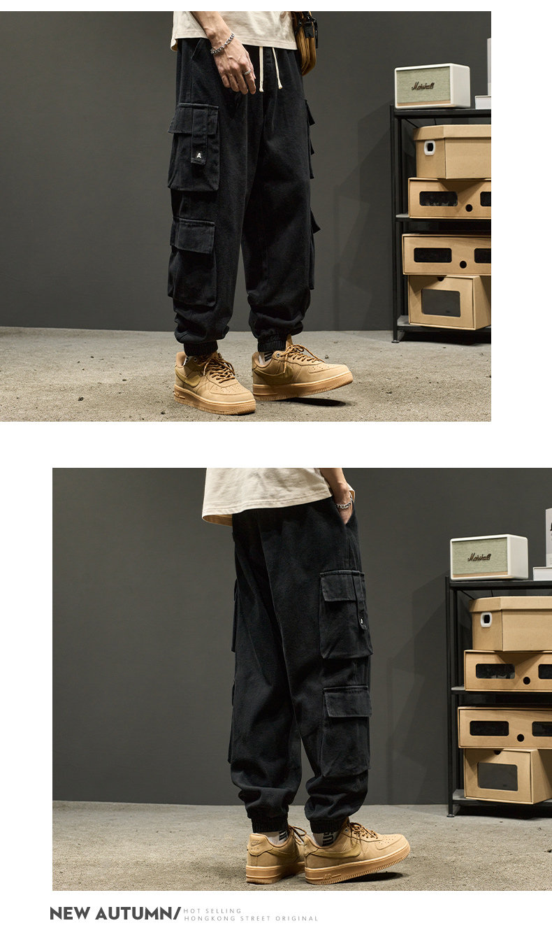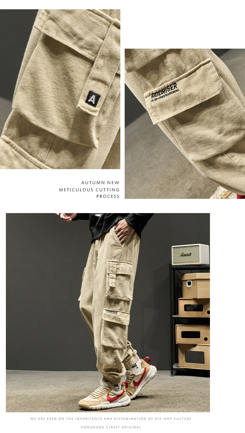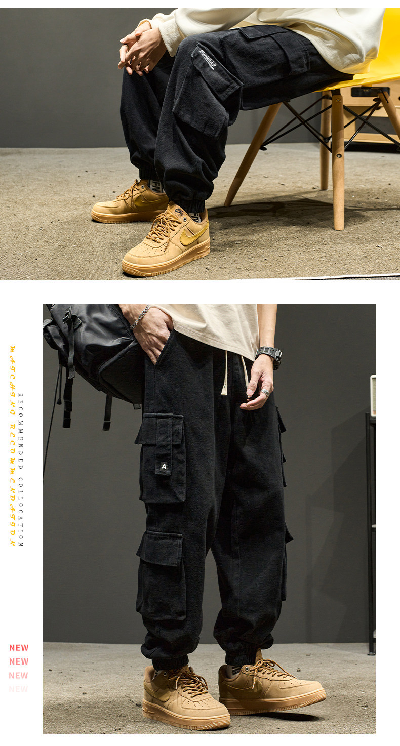 工装裤男美式潮牌宽松痞帅多口袋军绿色束脚裤秋季潮流复古伞兵裤