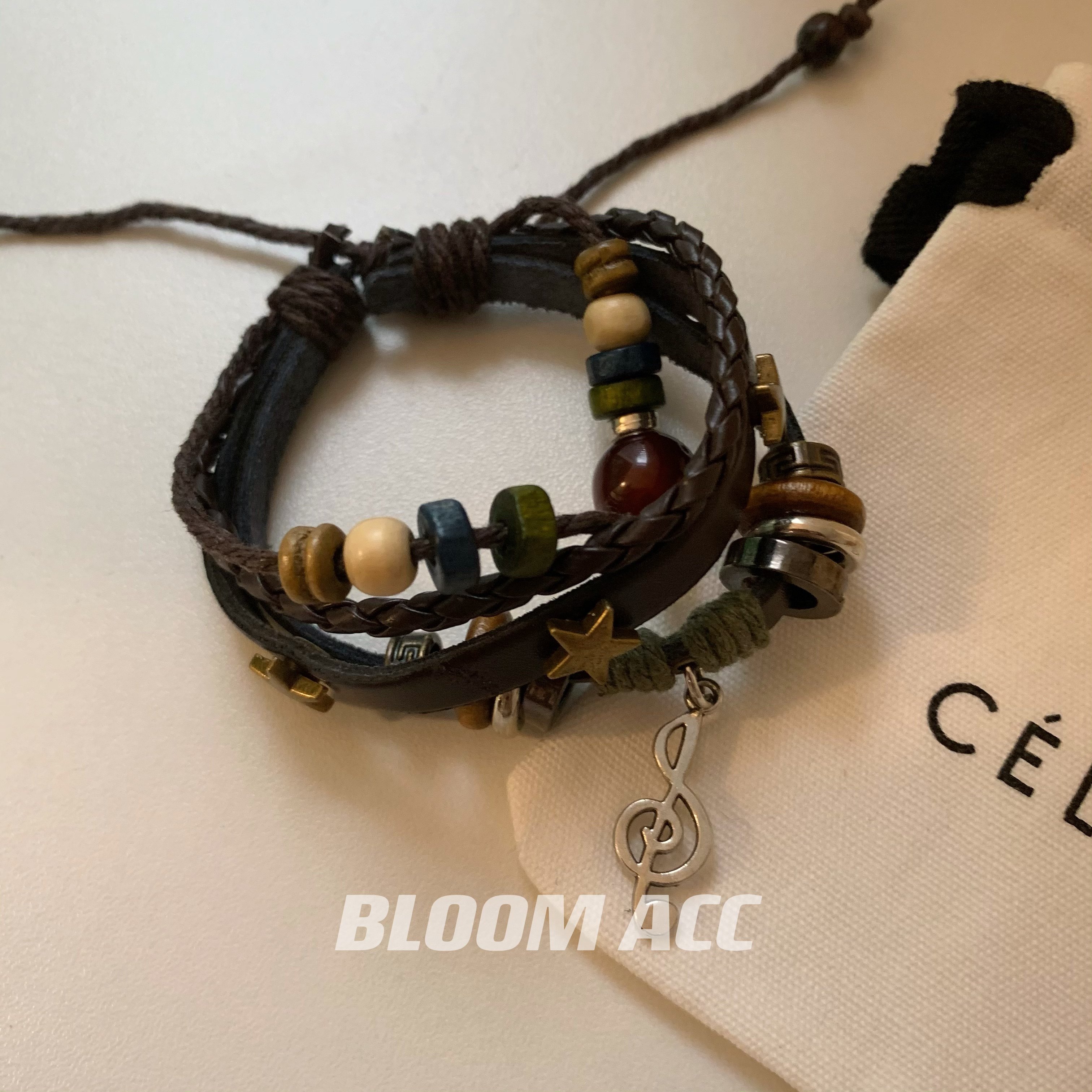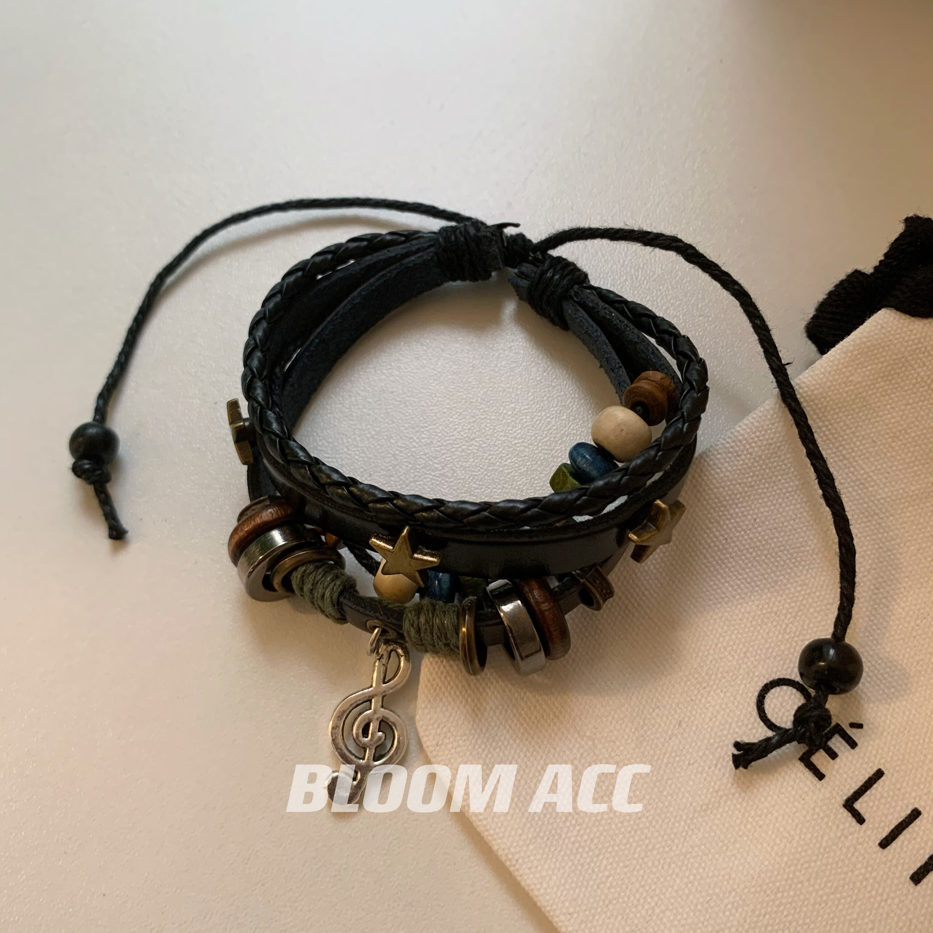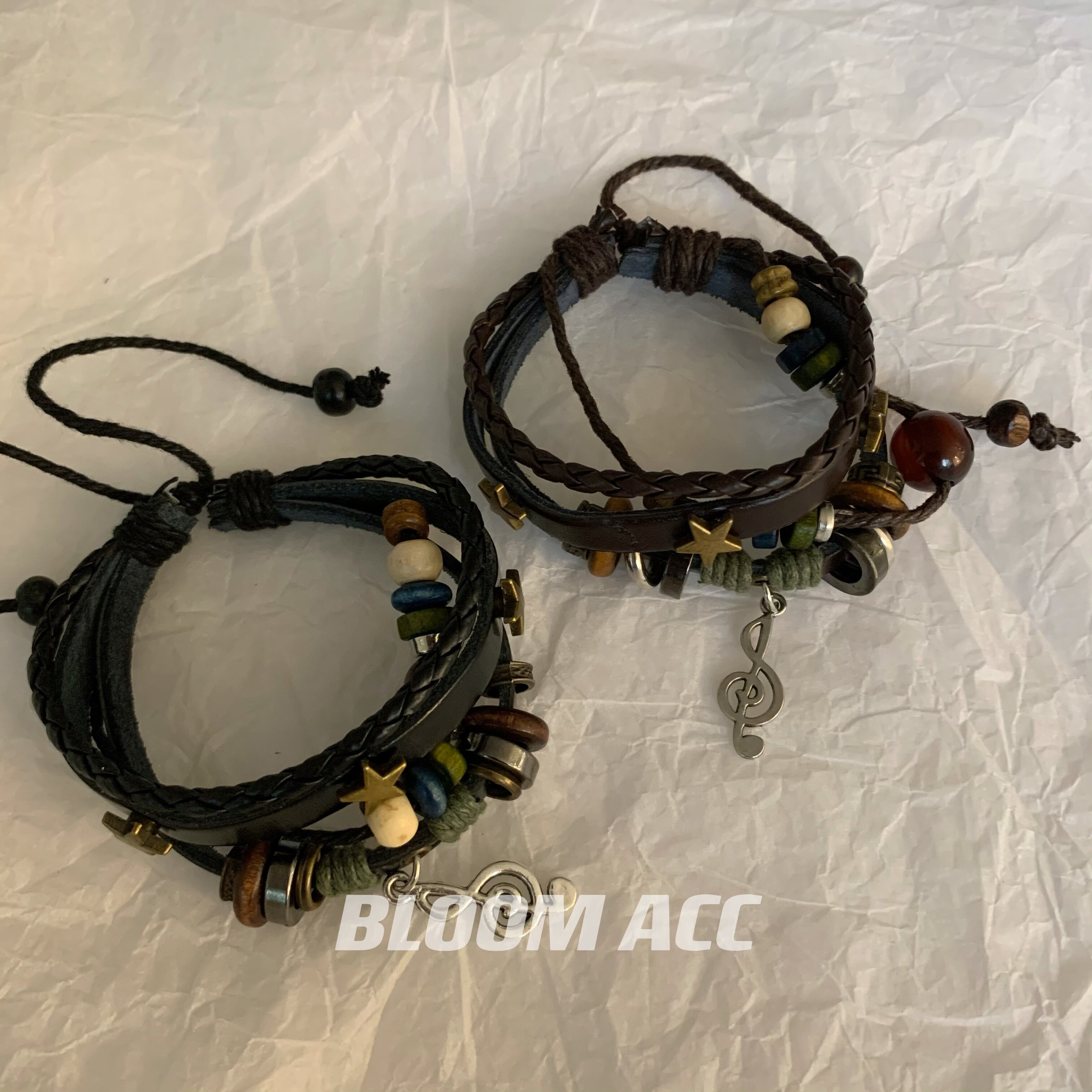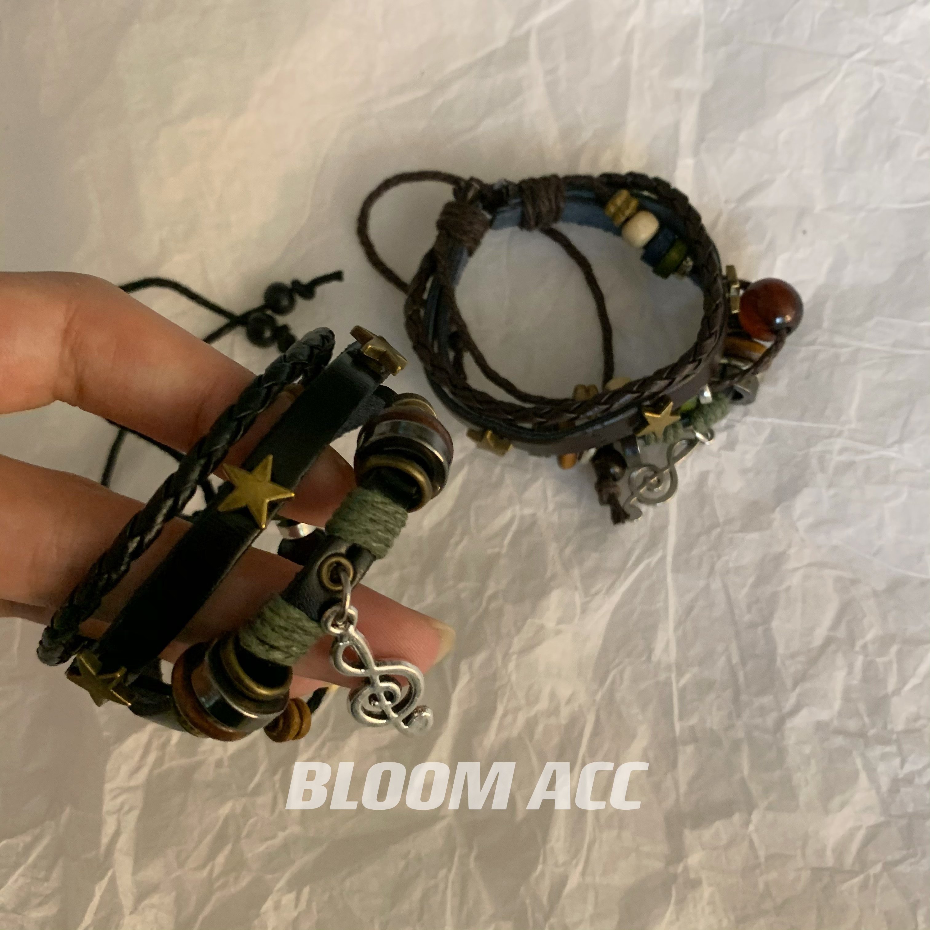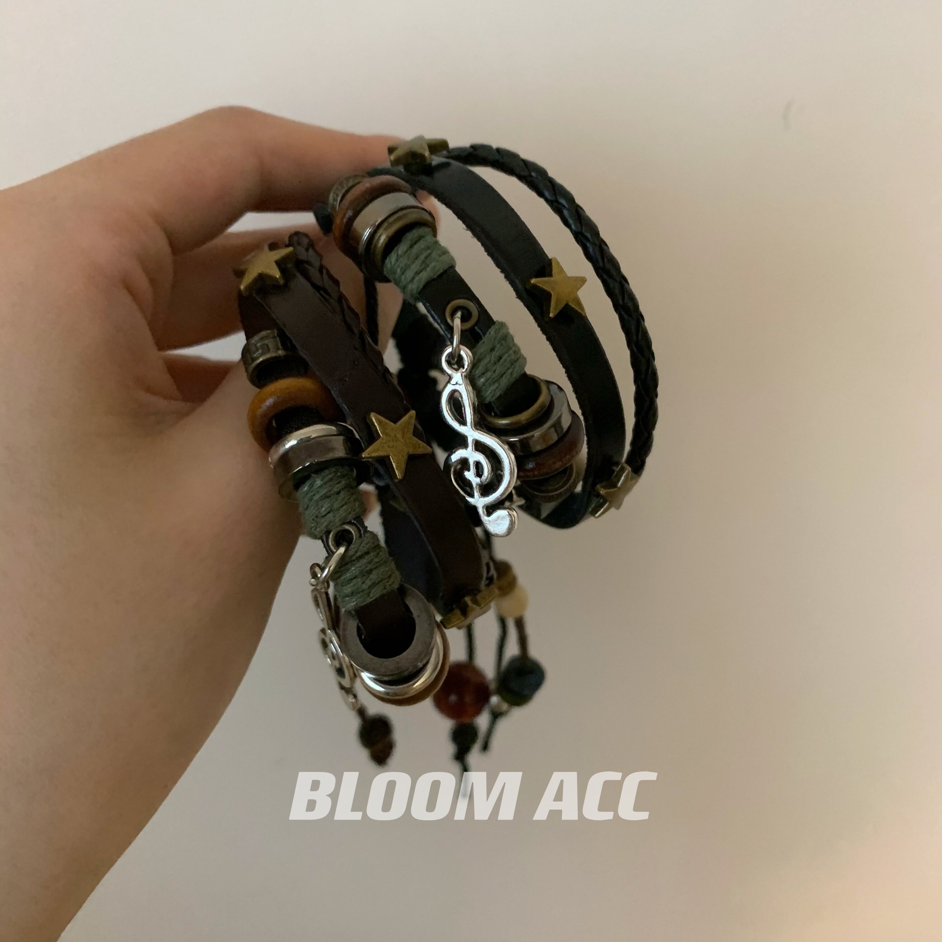 高街女孩复古民族风多层手链串珠真皮辣妹音乐符号五角星编织手绳