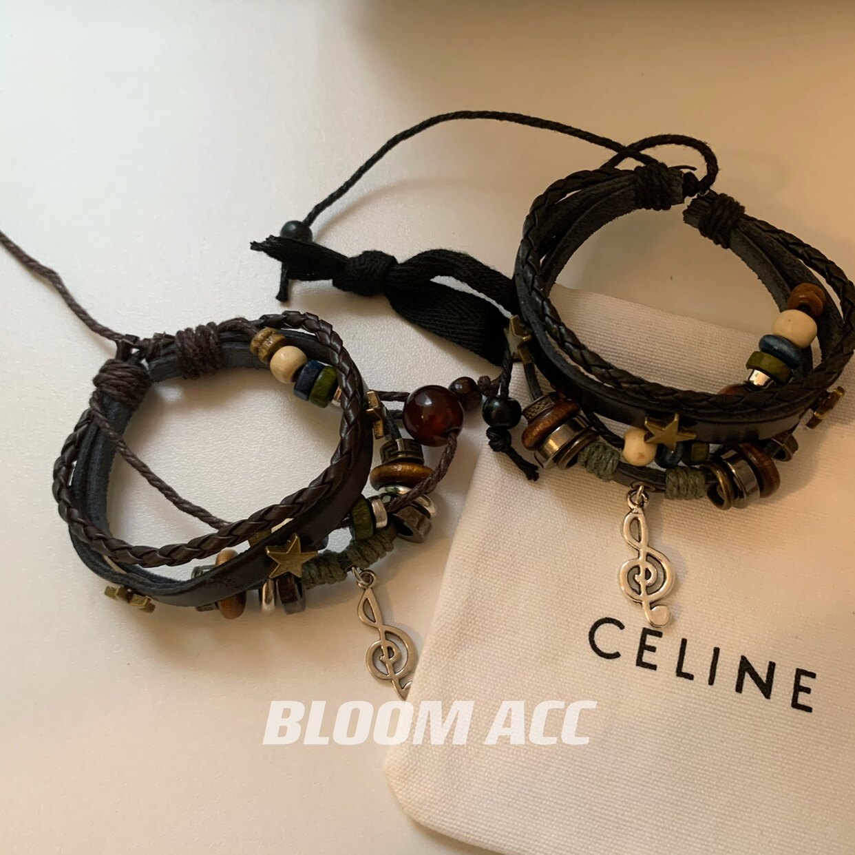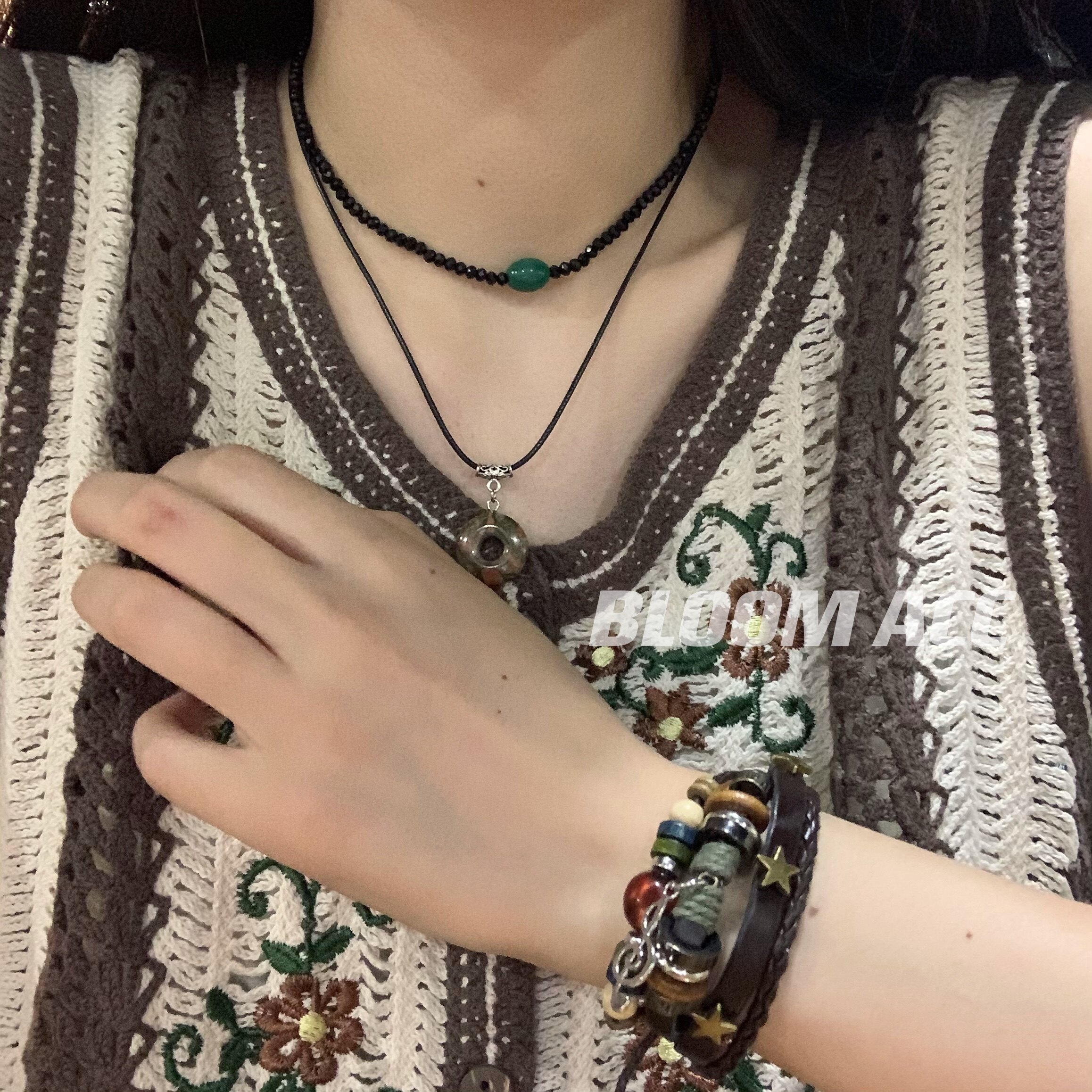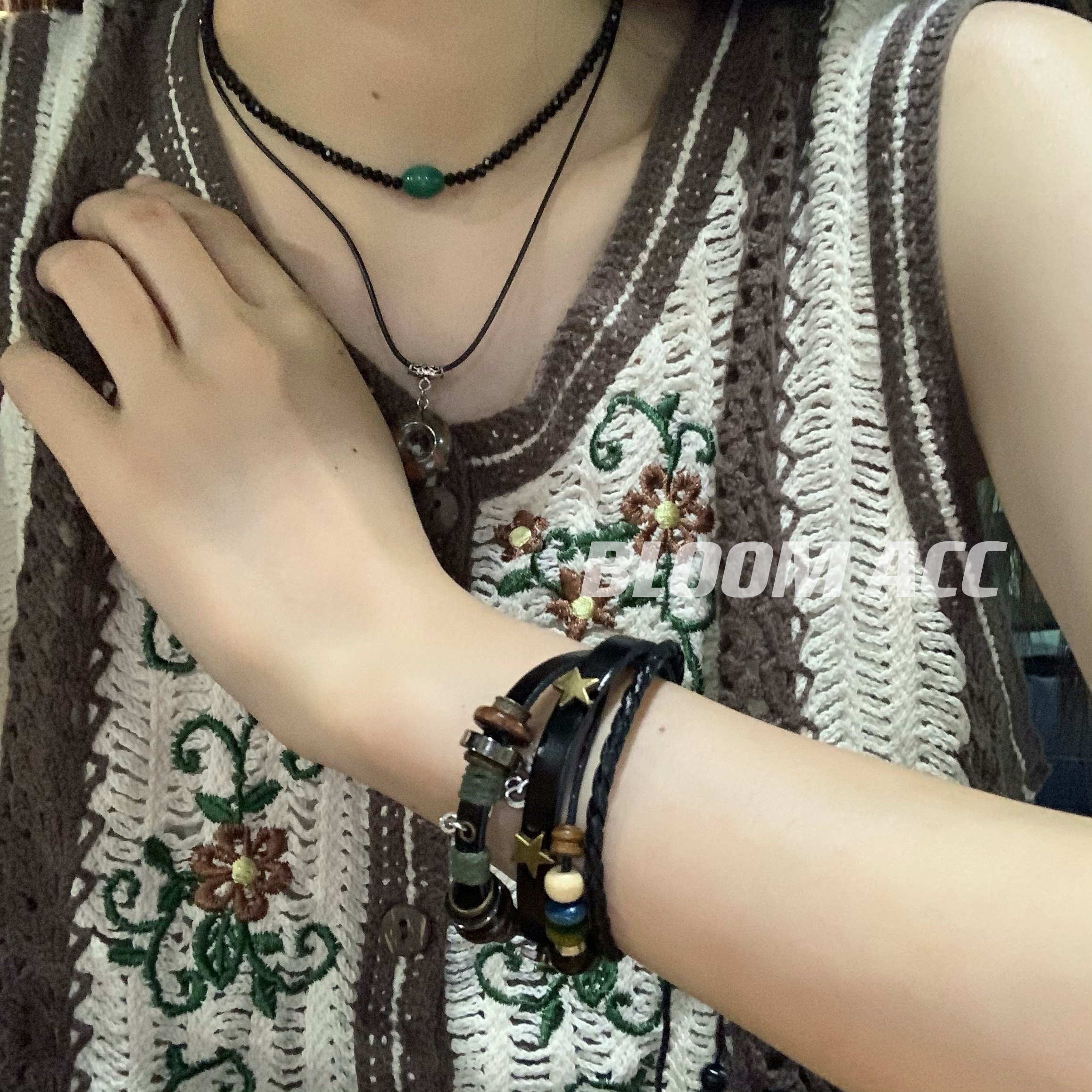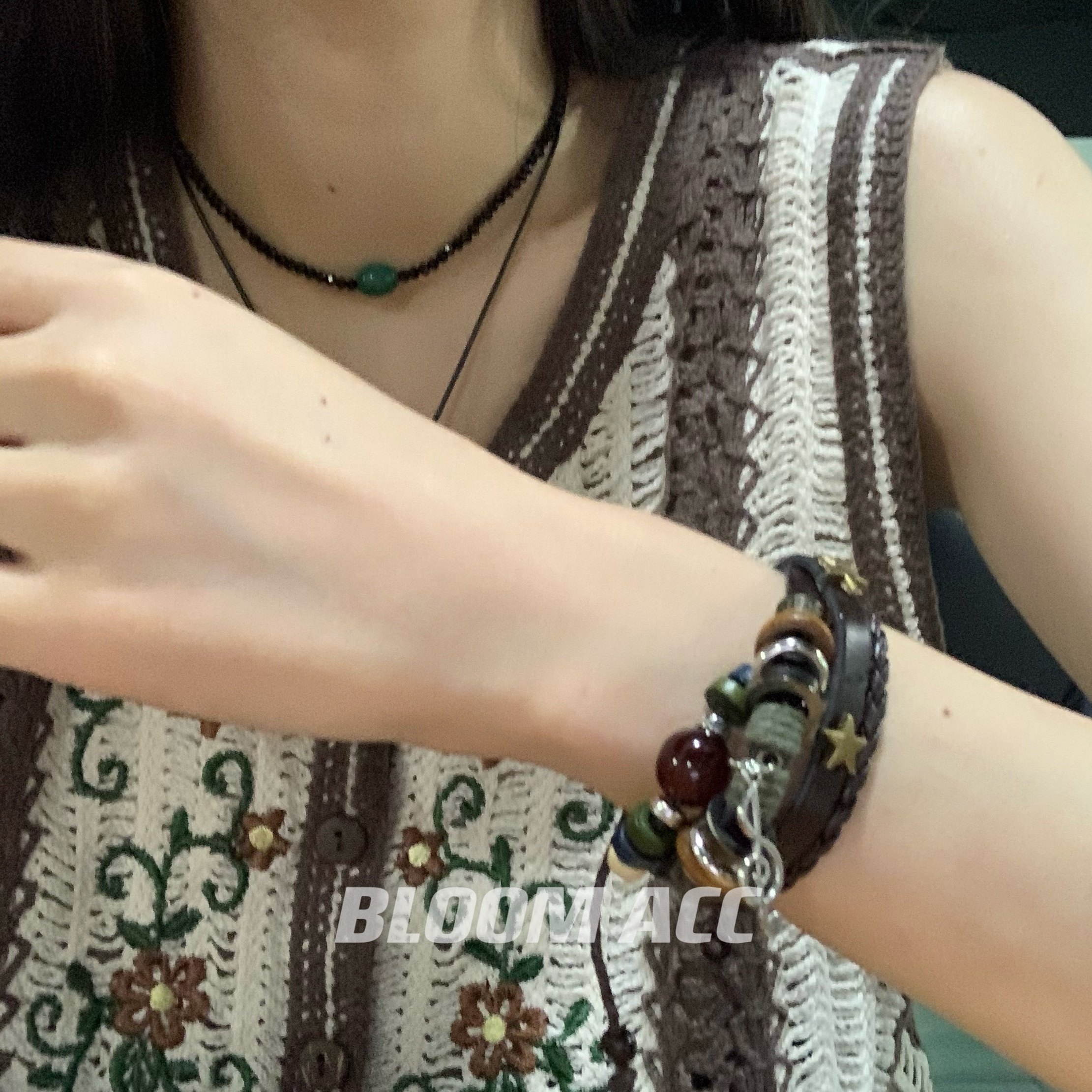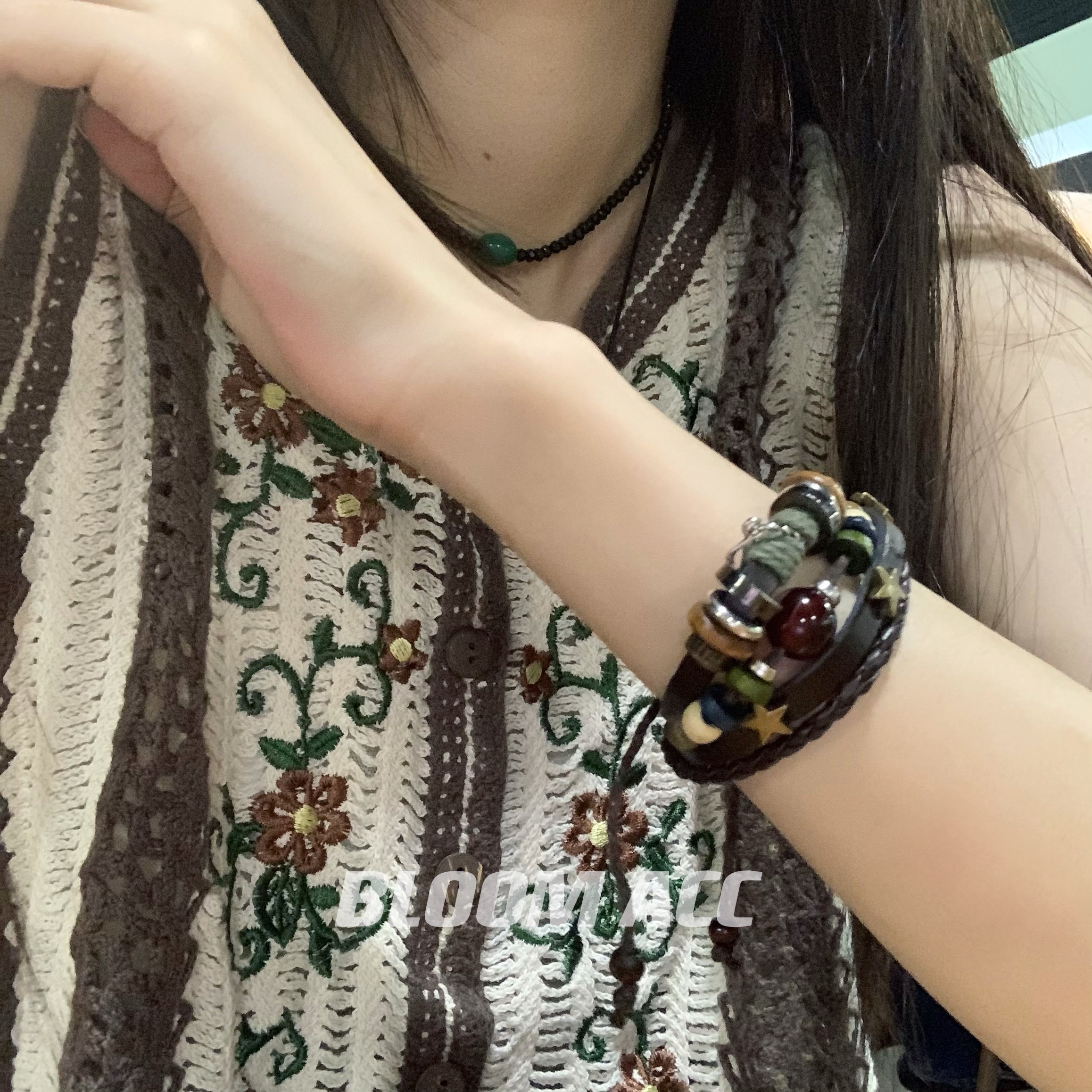 高街女孩复古民族风多层手链串珠真皮辣妹音乐符号五角星编织手绳