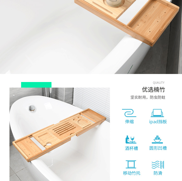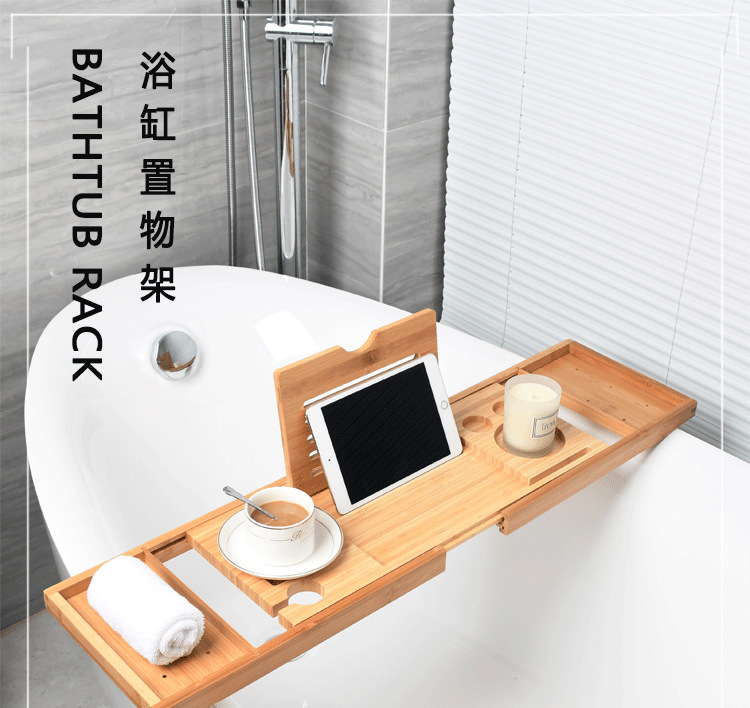 浴缸置物架置物板浴缸伸缩架防滑竹欧式家用泡澡支架浴缸架泡澡架