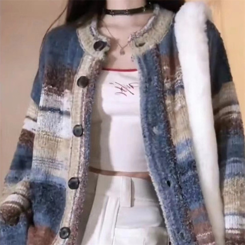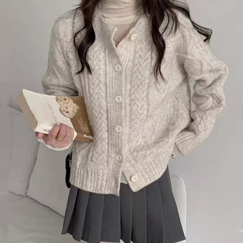 프렌치 빈티지 꽈배기 라운드 니트 카디건