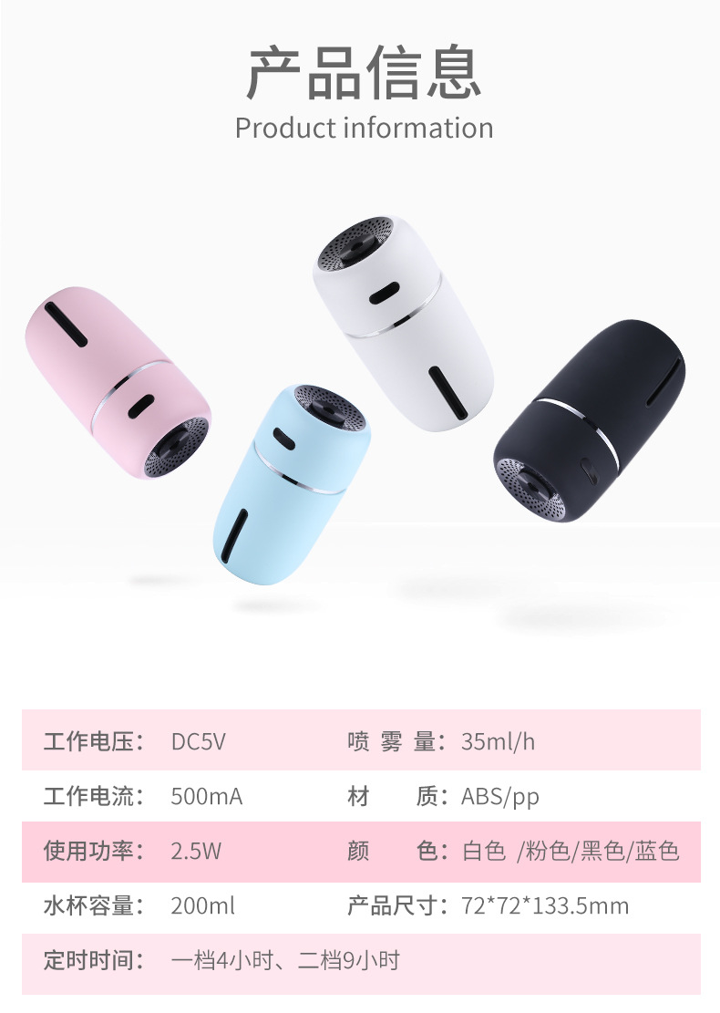 跨境创意车载加湿器 小I办公补水喷雾车载家用迷你静音雾化加湿器