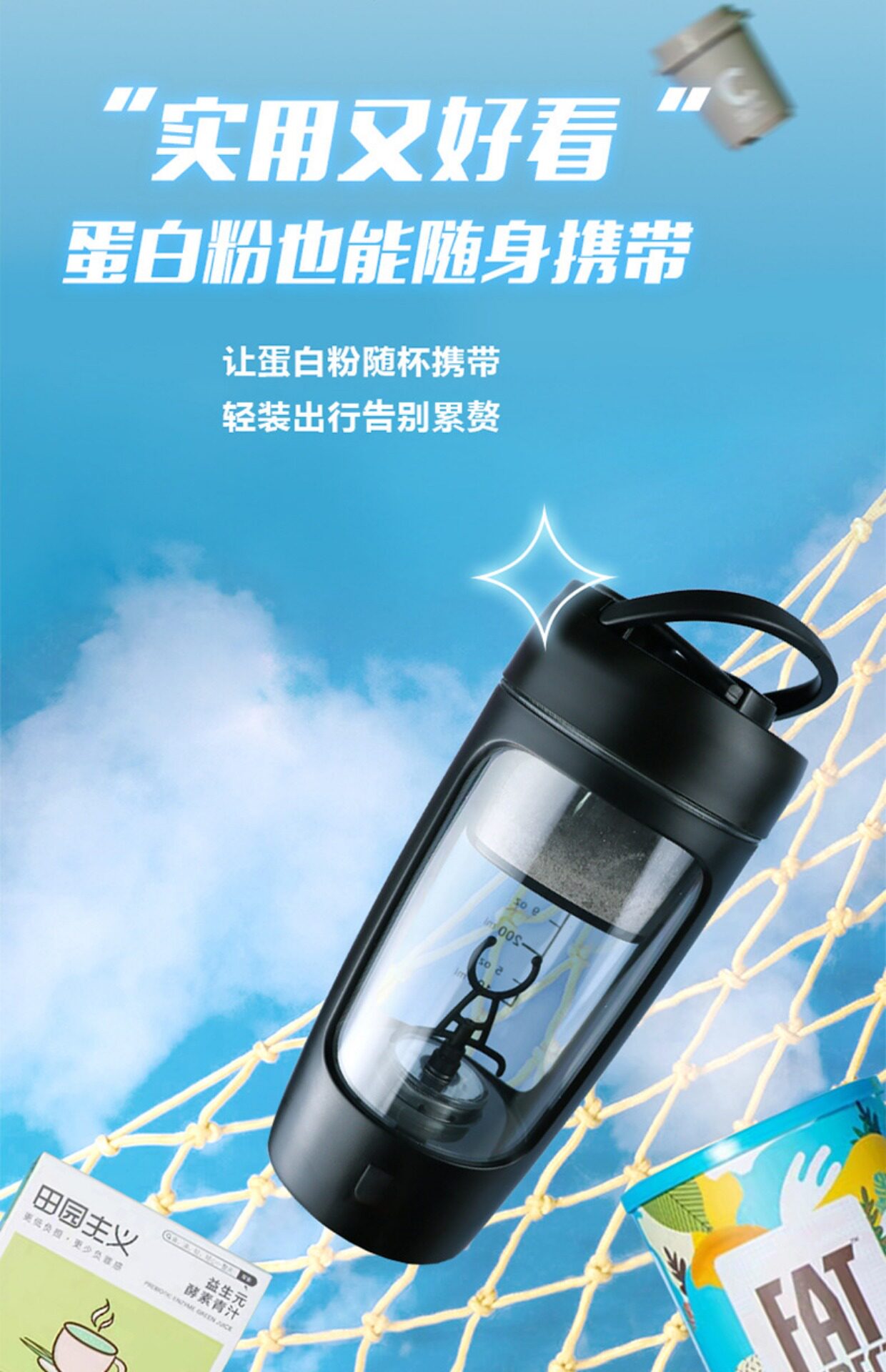 全自动搅拌杯简约高颜值便携式水杯运动健身蛋白粉奶昔电动摇摇杯