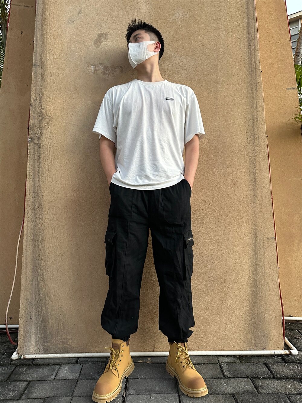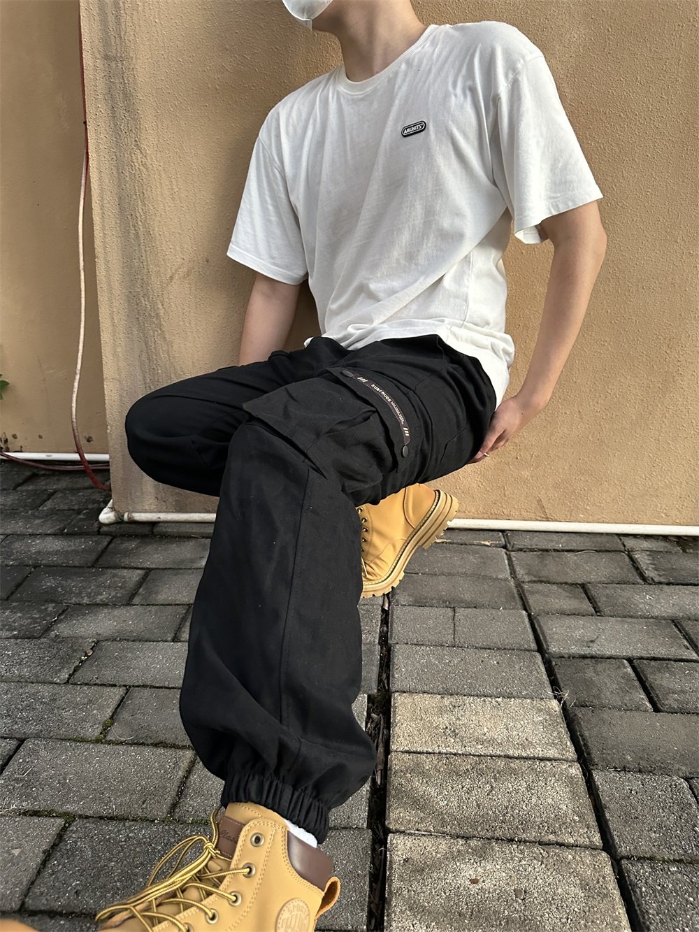 美式复古机能工装裤男2023秋款夏季潮牌痞帅直筒宽松束脚休闲裤子