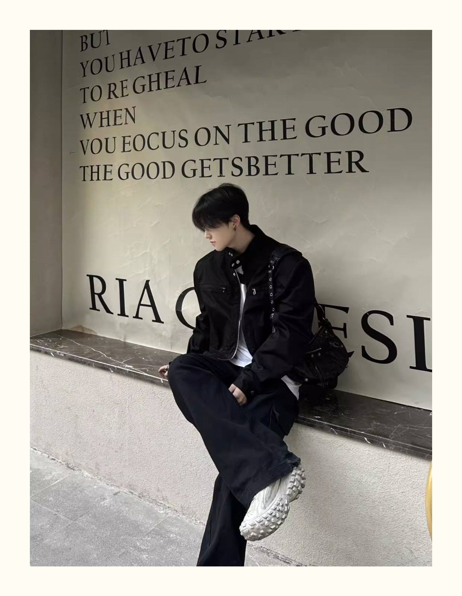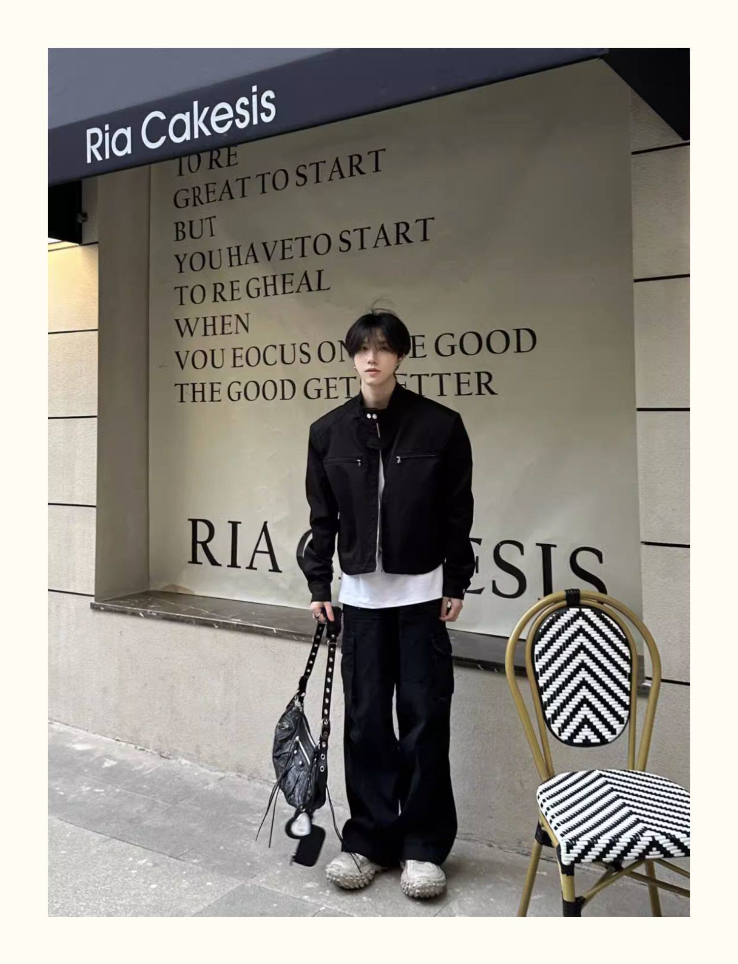 高级感垫肩短款机能外套男春秋款小众美式高街潮牌vibe风机车夹克