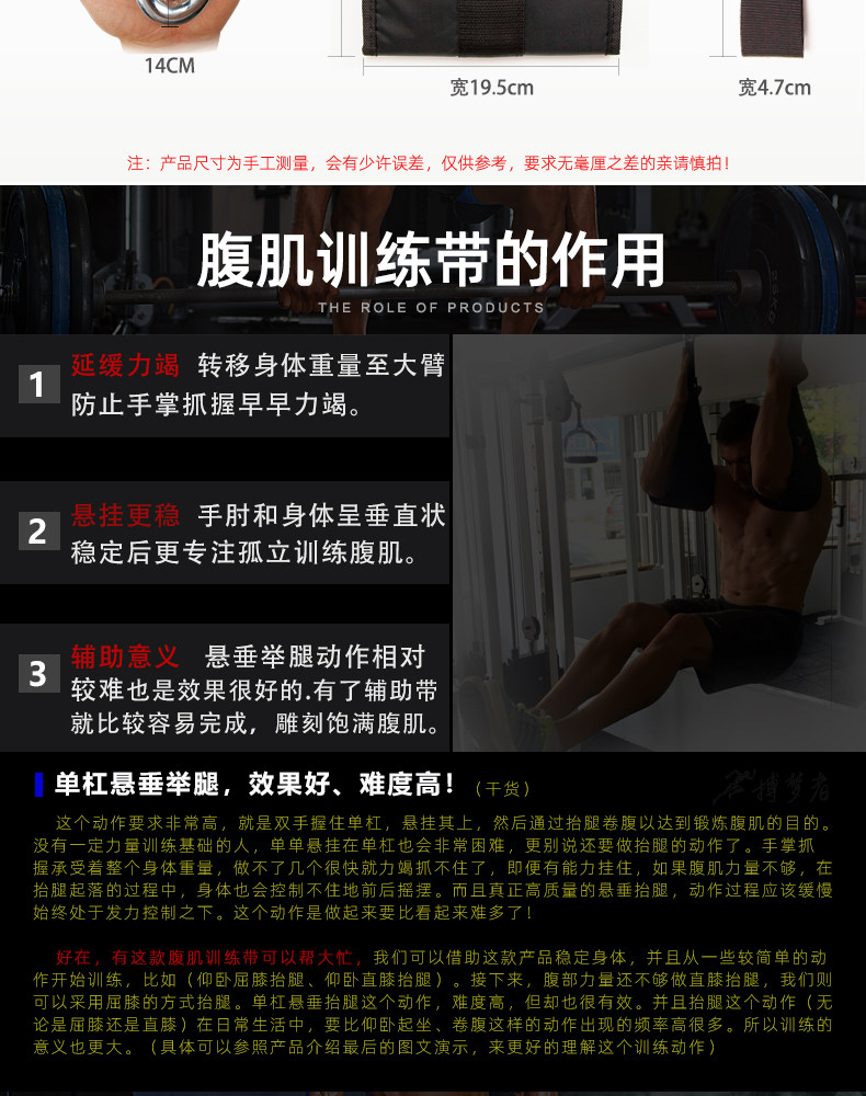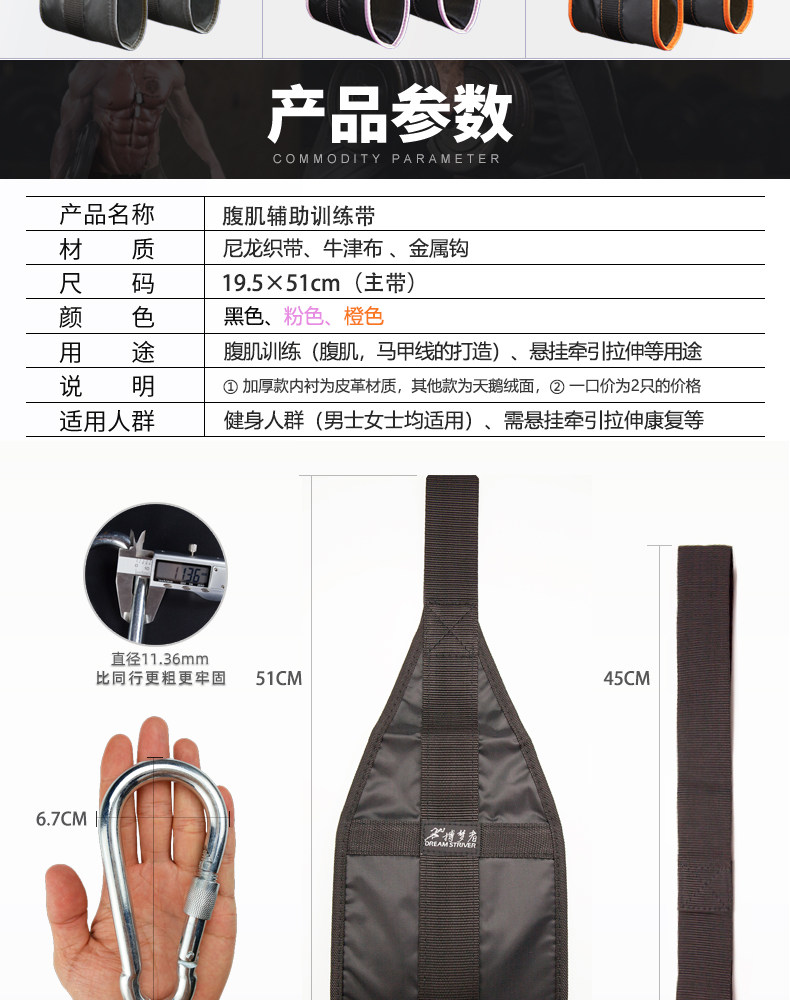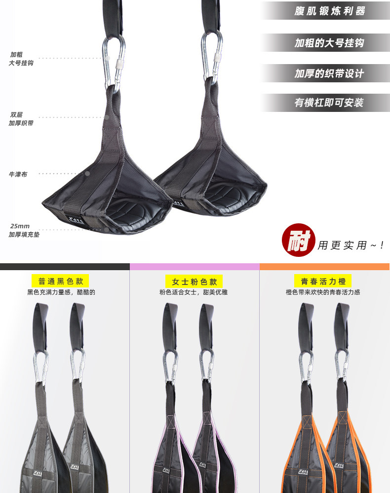 腹肌悬臂带悬垂举腿吊带挂钩单杠悬挂抬助力带收腰腹训练器卷腹带
