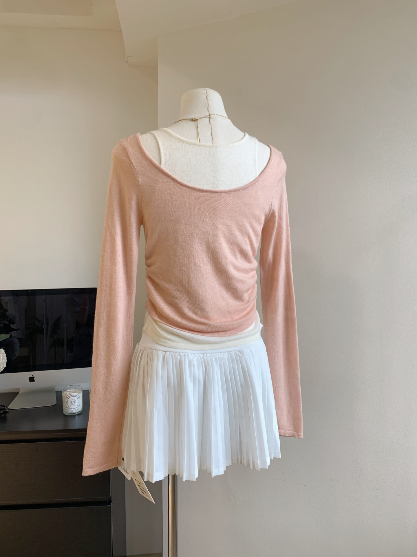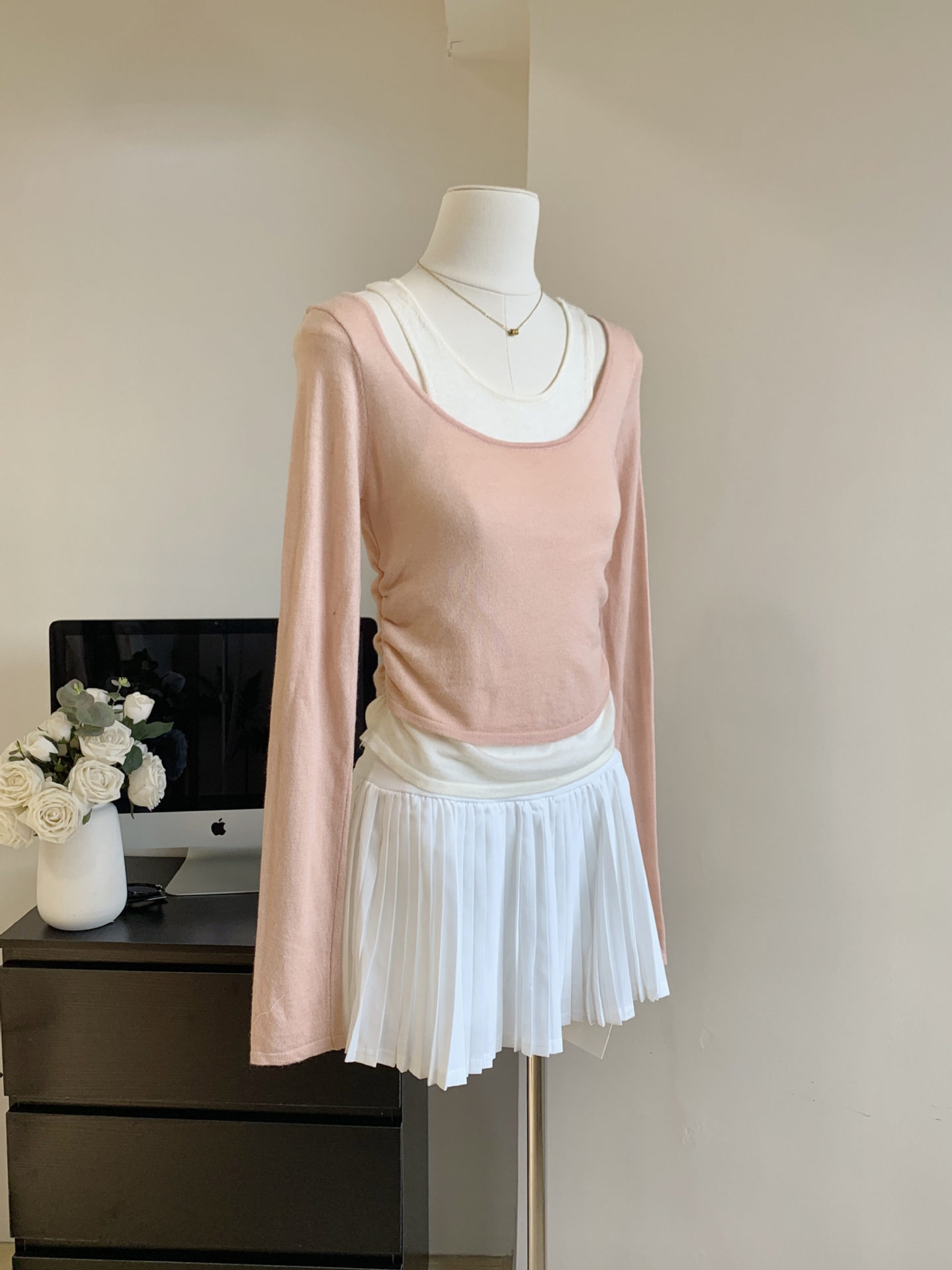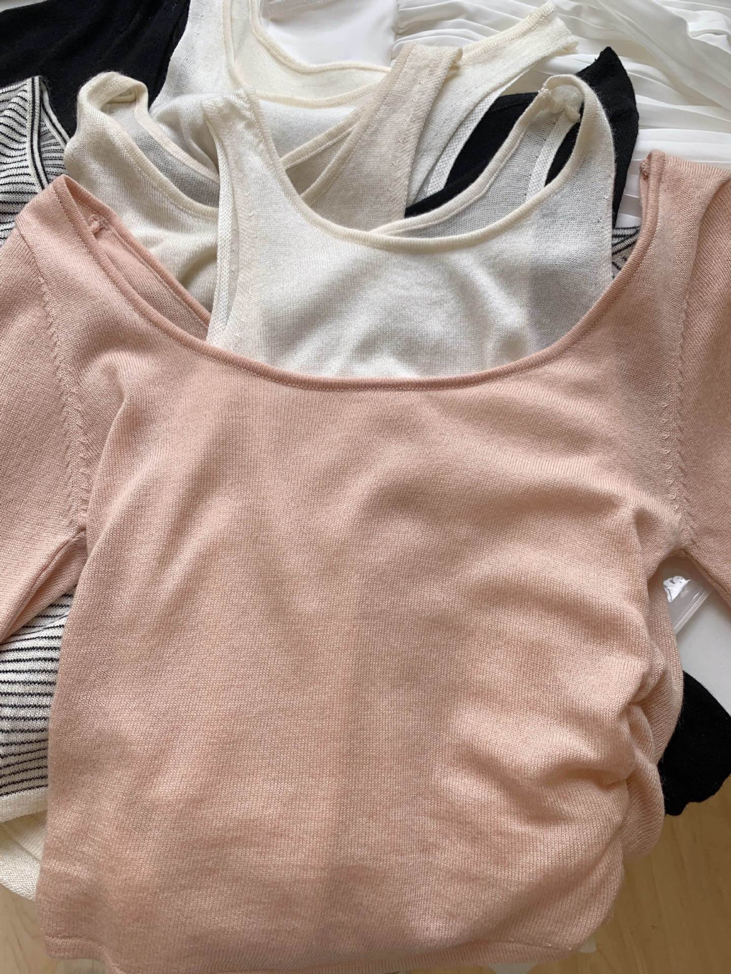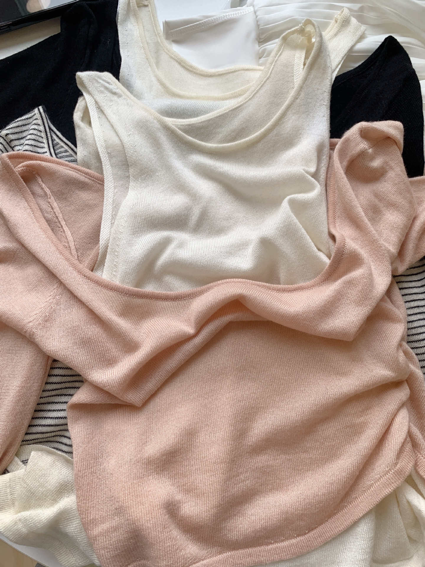 2023秋季新款假两件纯欲露肩针织衫长袖设计感温柔打底衫掐腰上衣