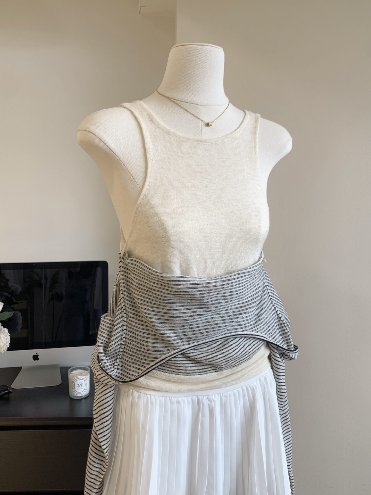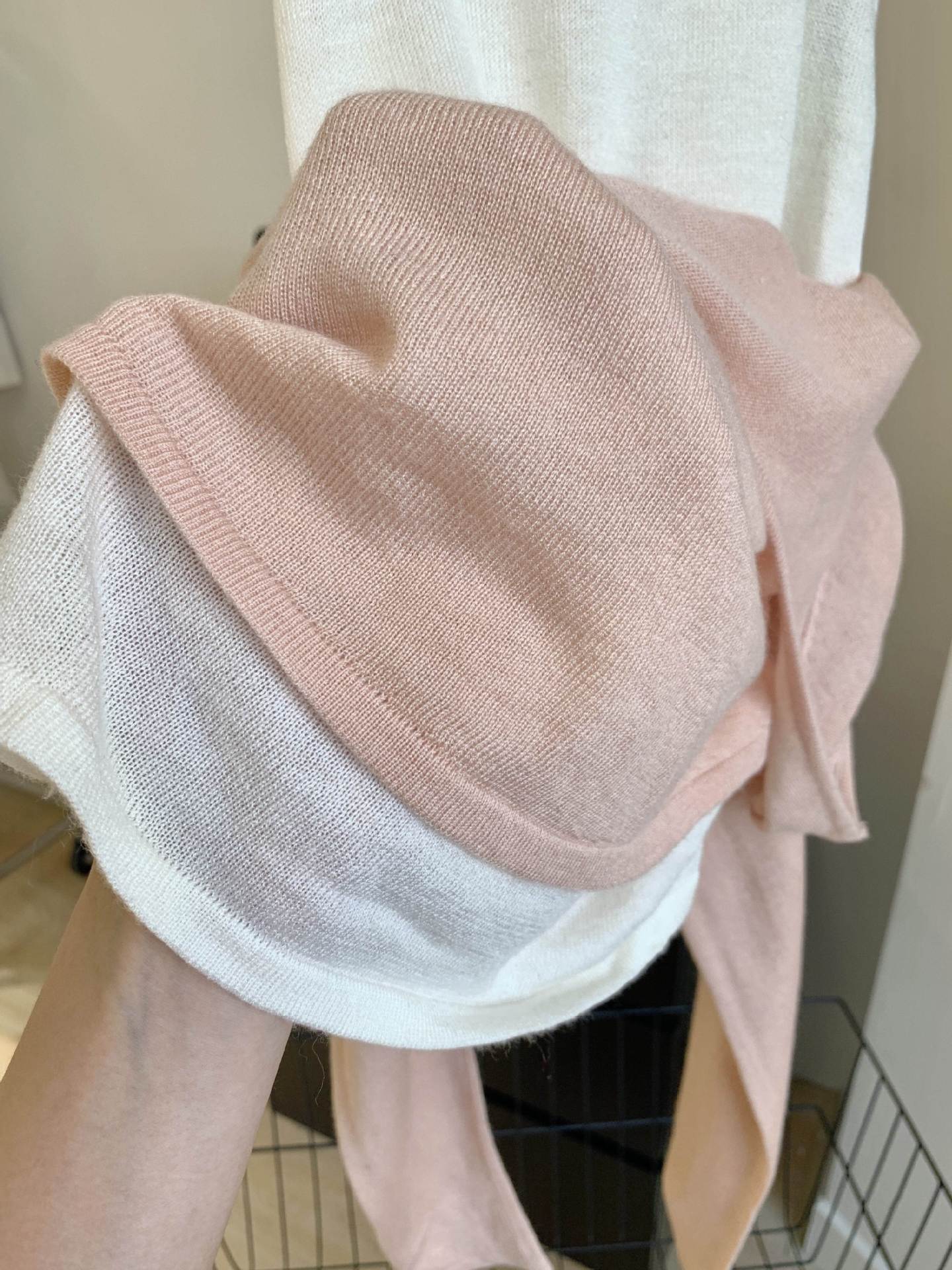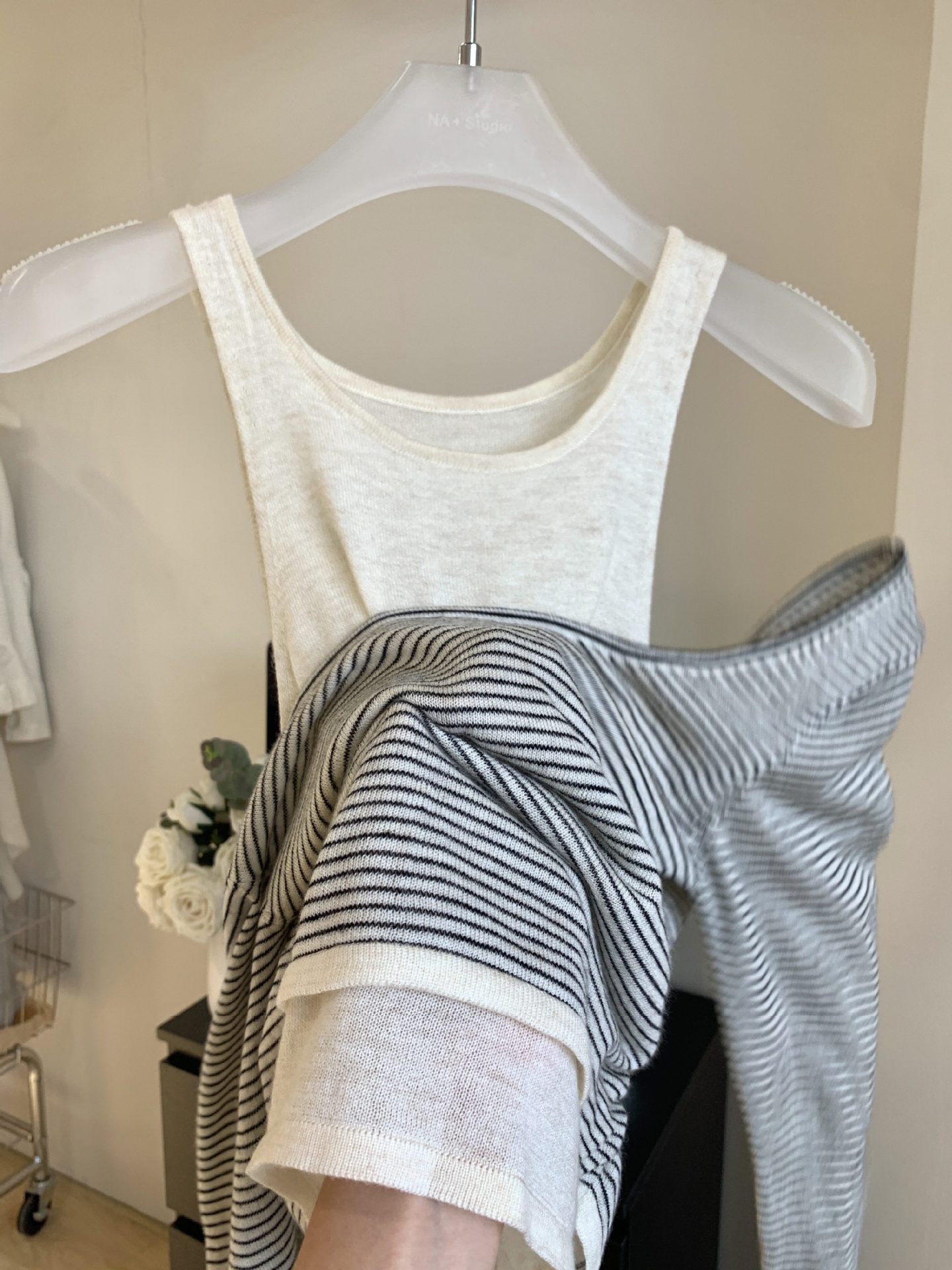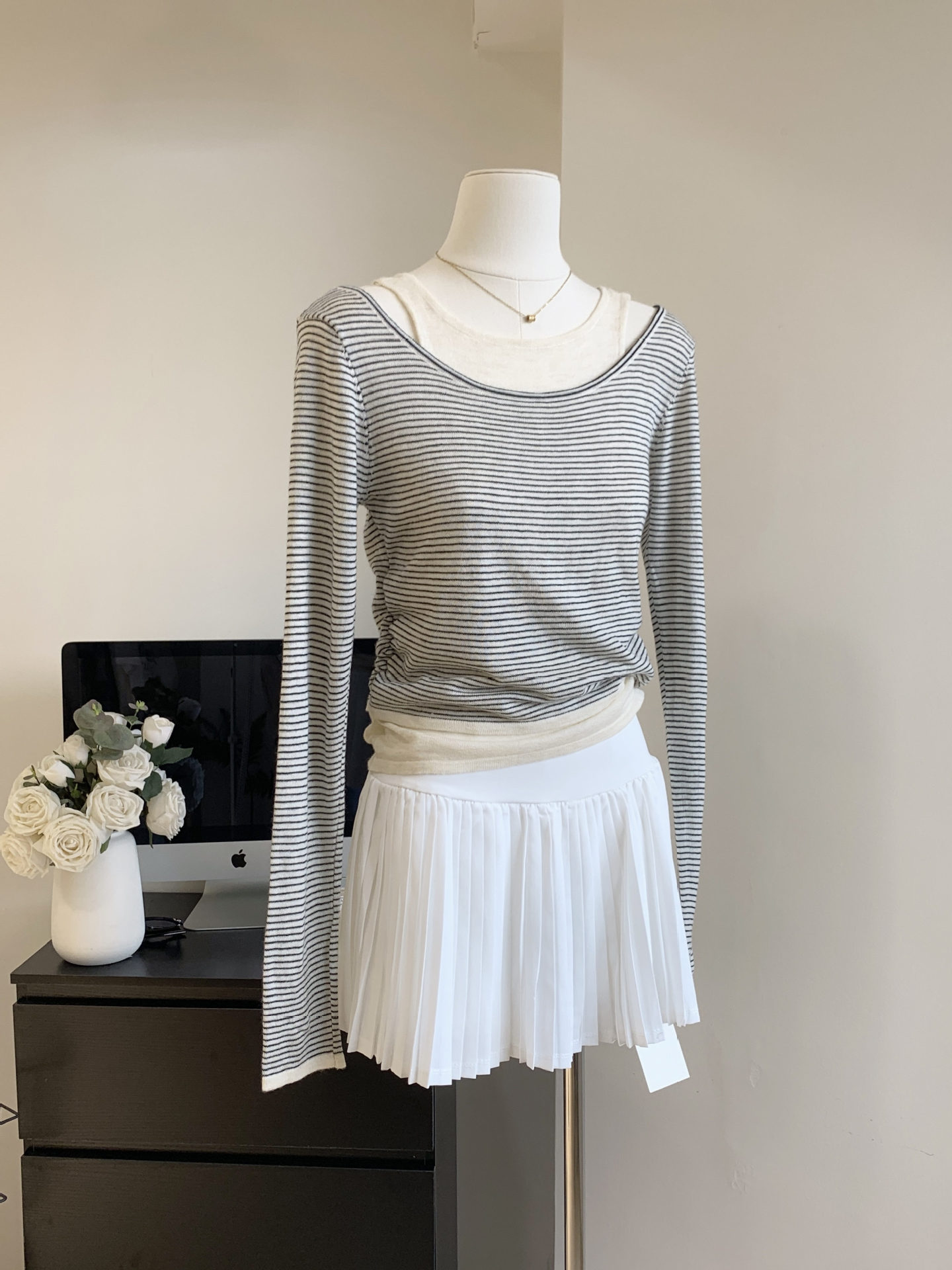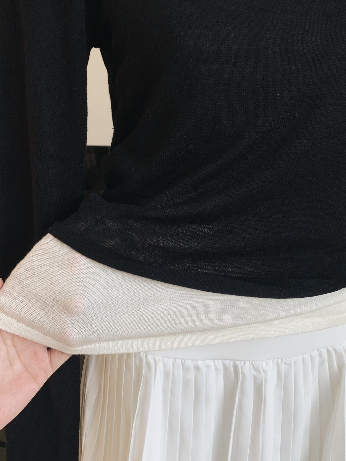 2023秋季新款假两件纯欲露肩针织衫长袖设计感温柔打底衫掐腰上衣